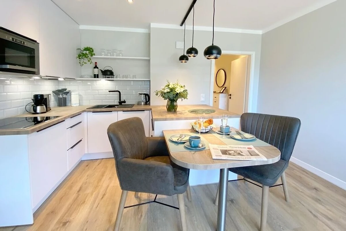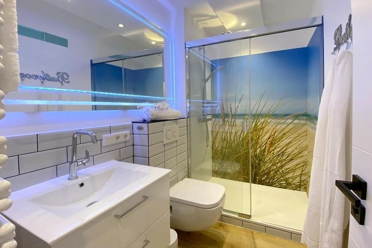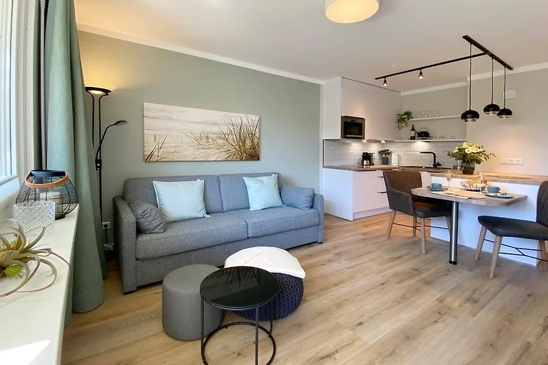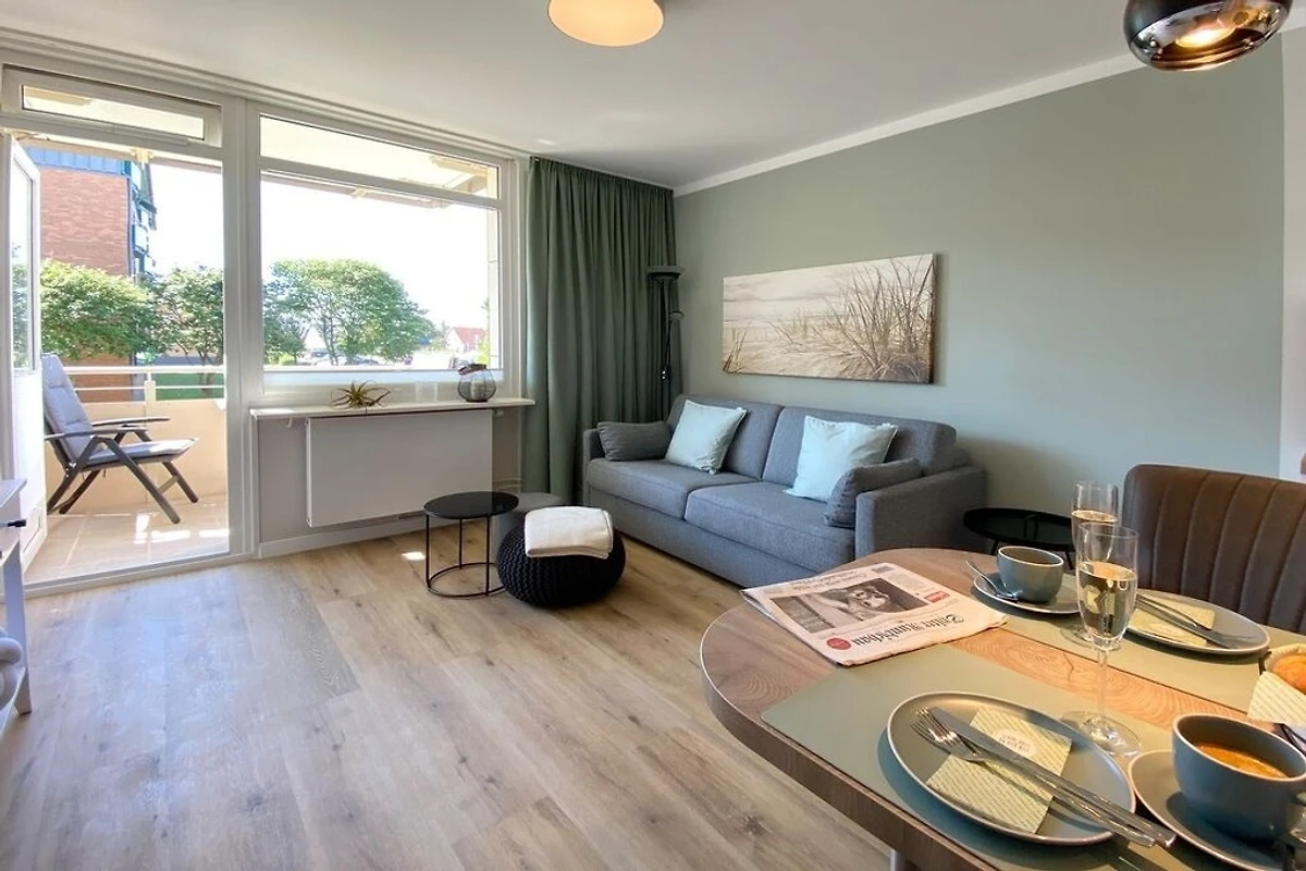Im Frühjahr 2020 wurde diese Ferienwohnung für 2 Personen komplett saniert und neu eingerichtet. Wohnbereich mit integrierter Küche, Couch zum Relaxen, Smart-TV und Zugang zum Süd-Balkon in bester Lage beim Süd-Wäldchen und kurzen Wegen zum Strand. Modernes Badezimmer mit grosszügiger Erlebnisdusche, Waschbecken, Handtuchwärmer und WC.