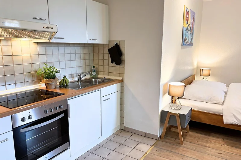 Jutta vom Kutter lädt zu Inselträumen ein. Das 1-Raum-Apartment mit Küchenzeile und Duschbad ist der perfekte Ort für eine Auszeit zu zweit. Jutta vom Kutter befindet sich in unserem schönen Bauernhaus und hat Gartenblick.