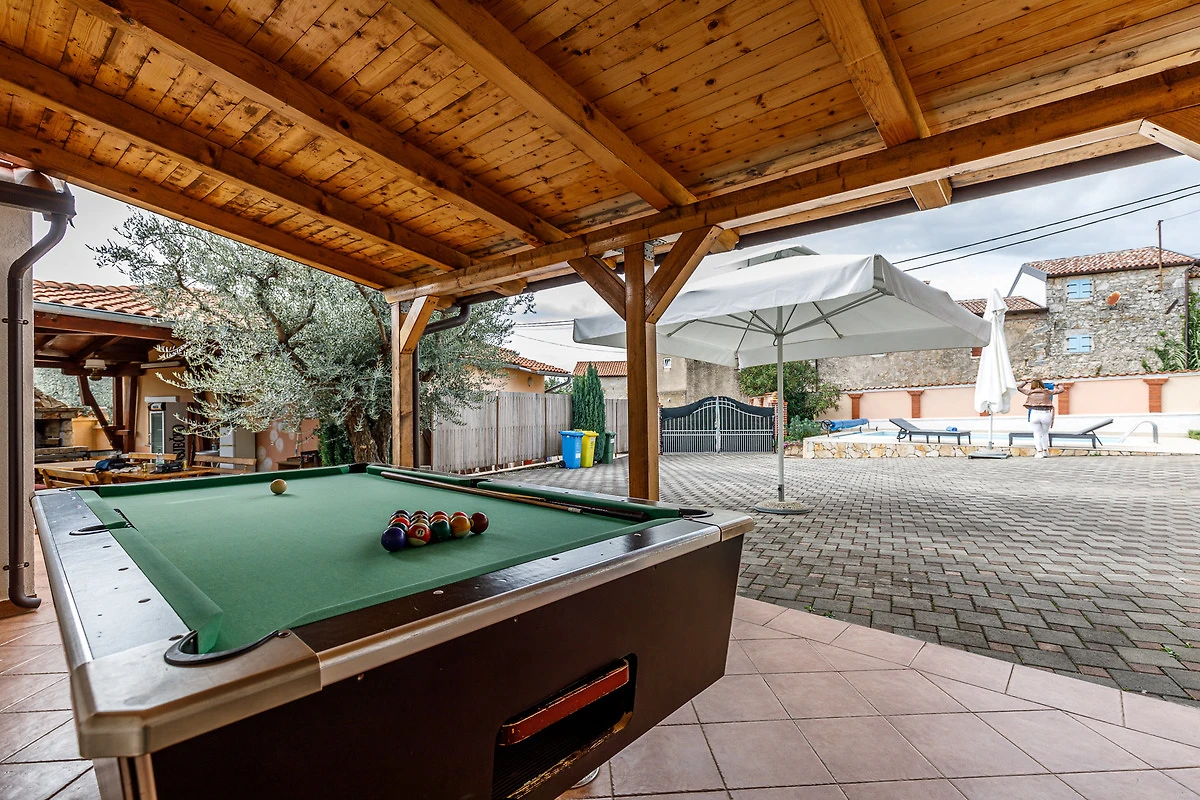 Abgerundet wird das Ferienhaus durch eine überdachte Konoba mit Sitzgelegenheiten, ausreichend Grillmöglichkeiten sowie einer Billardecke und zusätzlichem Gäste-WC.