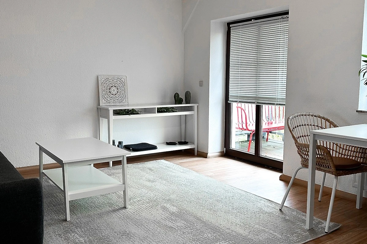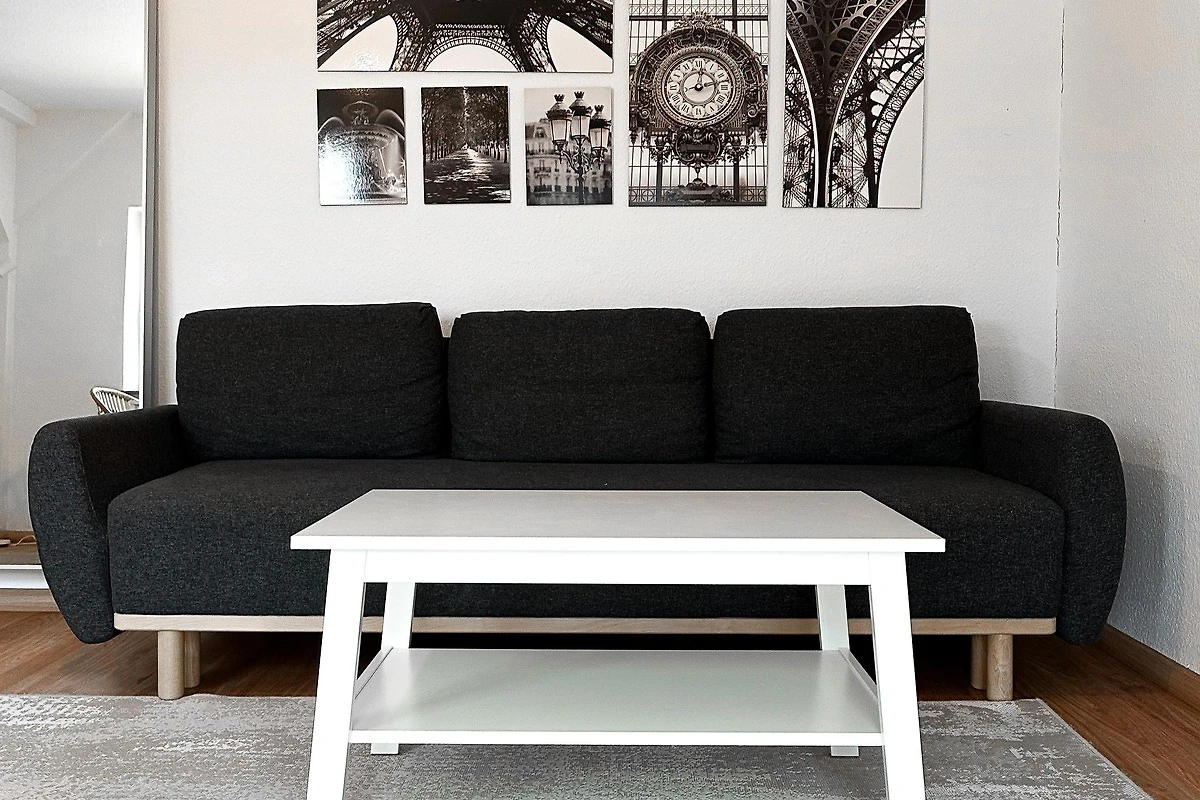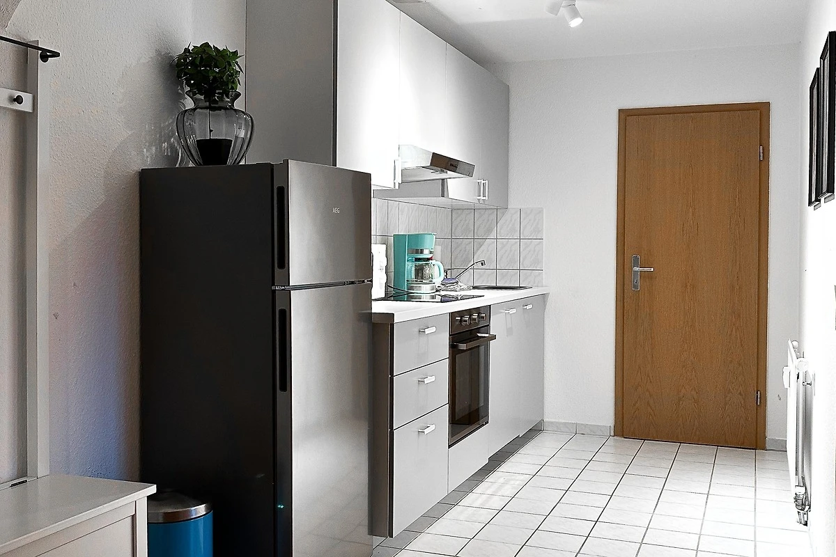 Die Ausstattung des Apartments umfasst ein gemütlichen Wohnzimmer, dieses ist mit einen Flachbild-TV, sowie einen Internetzugang via WLAN ausgestattet. Die Küche ist mit einer Kaffeemaschine (Filter), eine Toaster, Wasserkocher, einer Microwelle und einer Spülmaschine ausgestattet. Für längere Aufenthalte befinden sich auch ein Trockner und eine Waschmaschine in der Ferienunterkunft. Auch ideal für Geschäftsreisende.