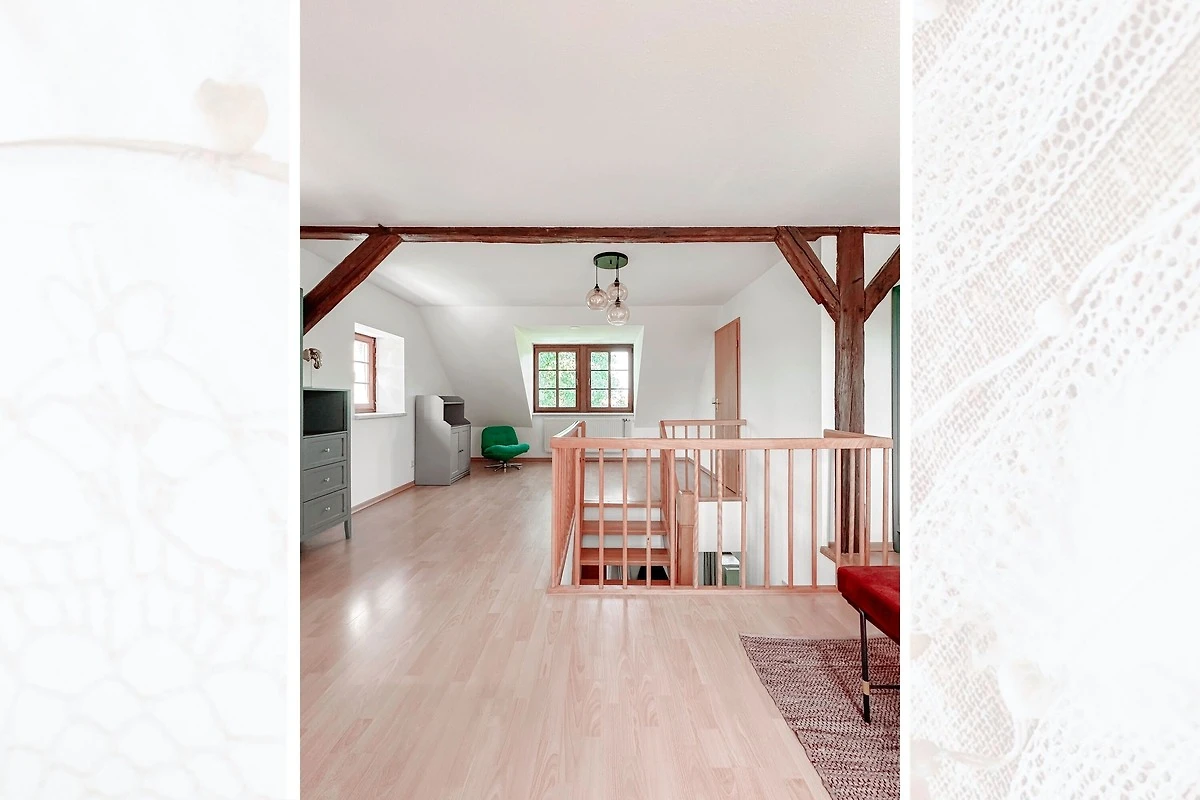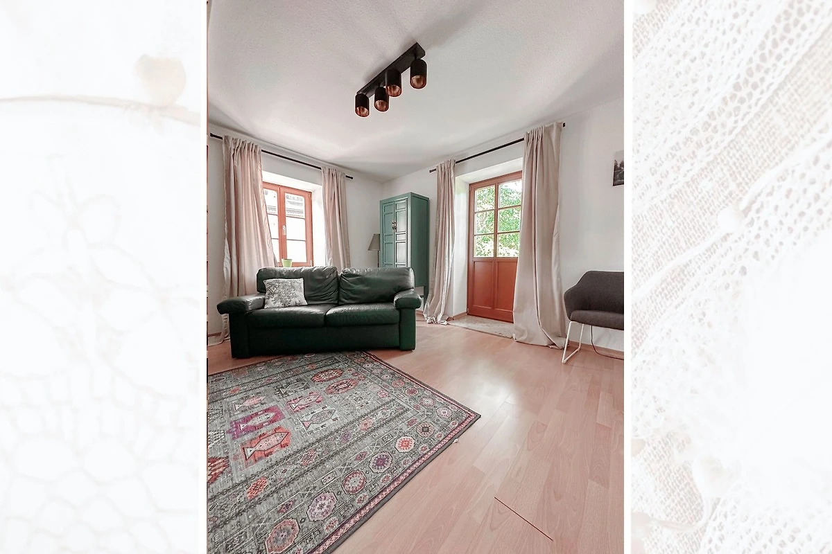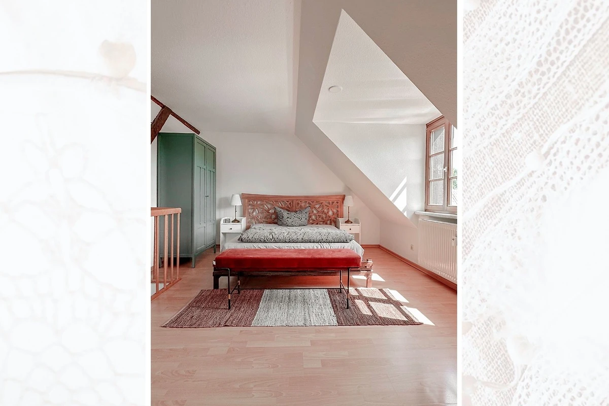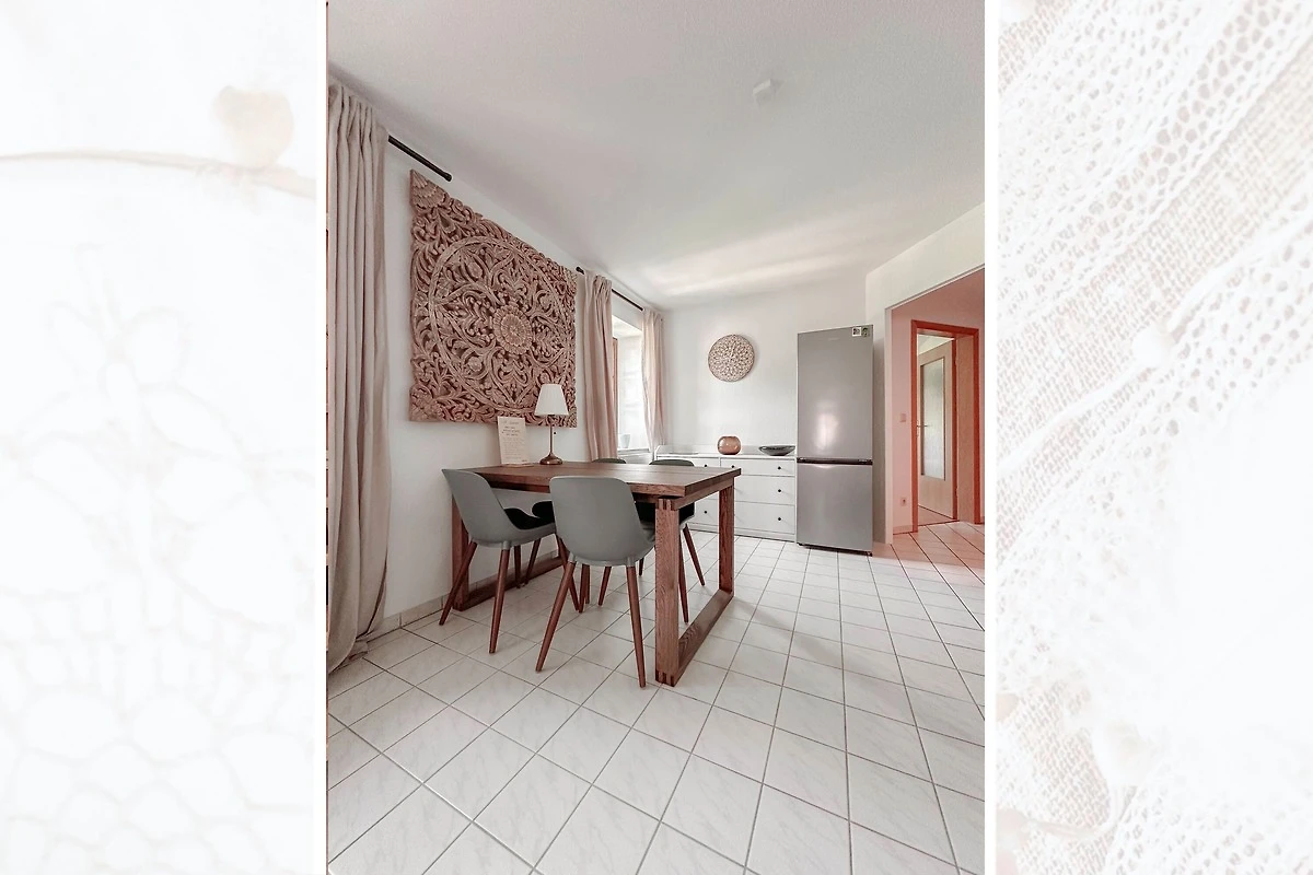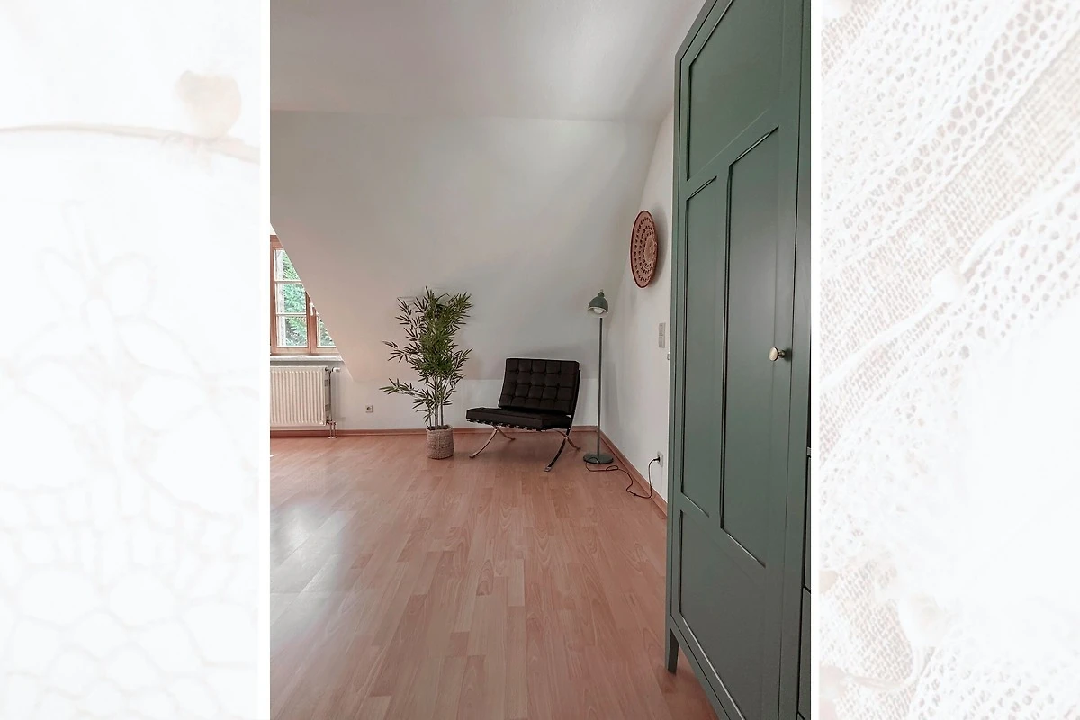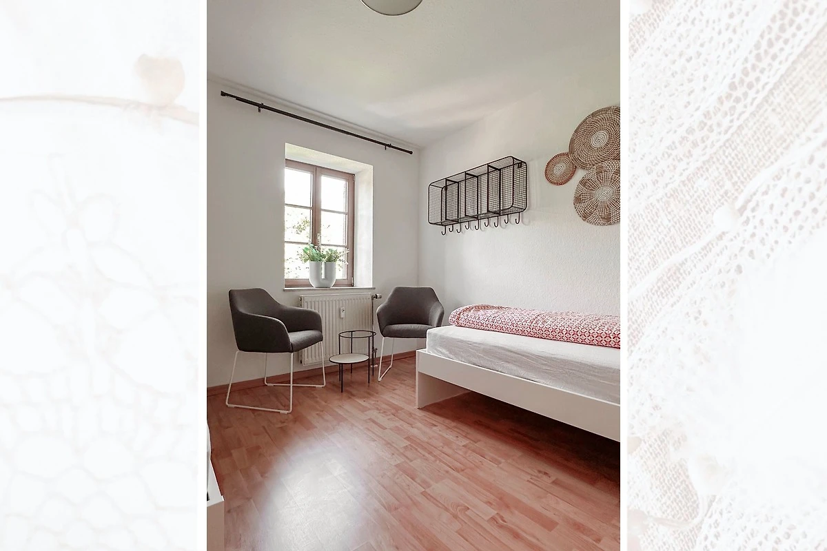 Willkommen in Ihrer stilvollen 2-Raum-Maisonettewohnung im grünen Herzen von von in Dresden! Diese charmante Unterkunft bietet Platz für bis zu 3 Personen und ist perfekt für Paare oder kleine Familien, die eine ruhige und idyllische Umgebung schätzen. Die Wohnung verfügt über zwei lichtdurchflutete Schlafzimmer, die mit eleganten Möbeln und liebevollen Details eingerichtet sind, um Ihnen einen erholsamen Aufenthalt zu garantieren. Der offene Wohnbereich ist modern gestaltet und lädt mit einer gemütlichen Sitzgruppe zum Entspannen und Verweilen ein. Ein besonderes Highlight ist der romantische Innenhof, in dem Sie die frische Luft geniessen können – ideal für ein Frühstück im Grünen oder einen entspannten Abend bei einem Glas Wein. Die Lage bietet eine ruhige Atmosphäre, während die nahegelegenen Gassen und Naherholungsgebiete in Dresden für eine angenehme Umgebung sorgen.
