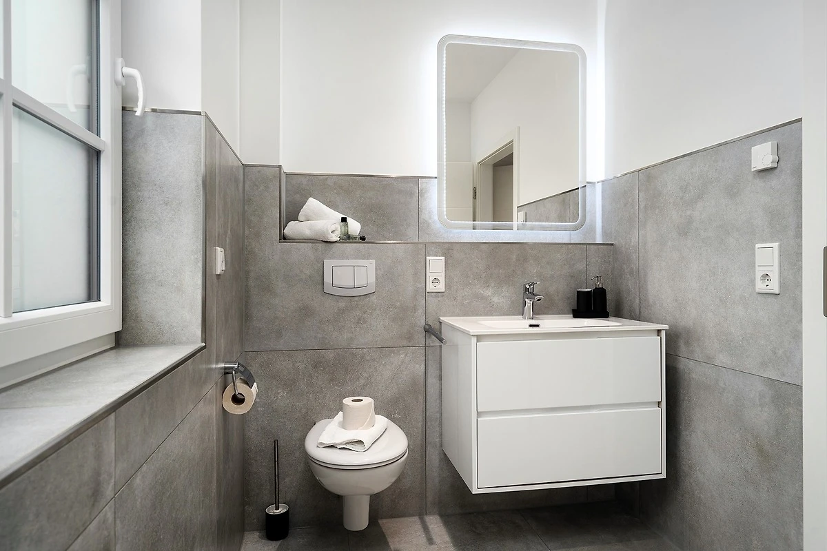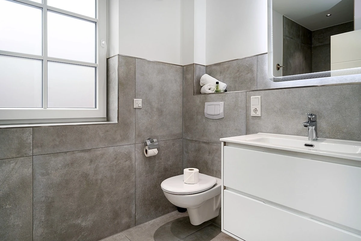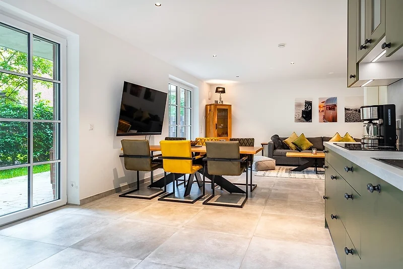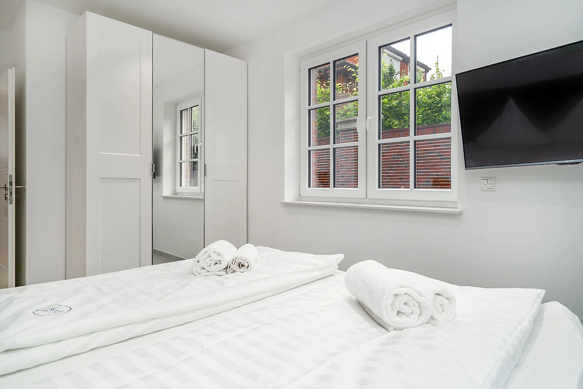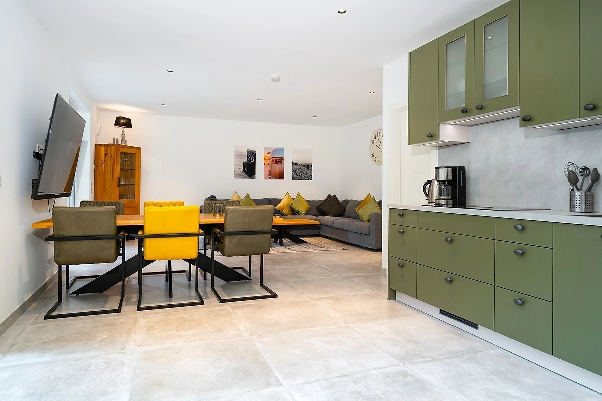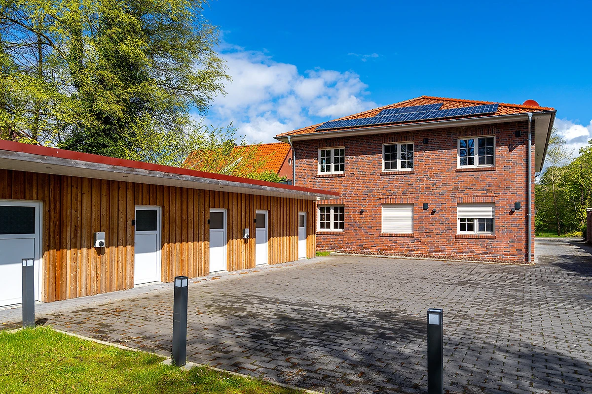 In unserer Wohnung "Mühlenblick 1" in Hage finden Sie auf etwa 90qm einen hellen und gemütlichen Wohn-Ess-Bereich mit einer voll ausgestatteten Küche und ausreichend Sitzmöglichkeiten für den gemeinsamen Urlaub mit Freunden und Familie. Ausserdem verfügt sie über zwei Schlafzimmern mit bequemen und hochwertigen Boxspringbetten mit Ablagefläche sowie ein Tageslichtbad mit ebenerdiger Dusche. Auch ein zusätzliches Gäste-WC macht die Wohnung sehr komfortabel. Den Garten mit Terrasse erreichen Sie durch den Wohnbereich, den auch Ihr Vierbeiner sicher zu schätzen weiss. Ein weiteres Highlight im Hausflur ist die gemeinschaftlich nutzbare Bibliothek mit Lese- und Spielmaterial. Durch die zentrale und gute Lage erreichen Sie alles gut zu Fuss. Die Hager Mühle, das Schloss Nordeck und die Burg Berum sind nur ein Katzensprung entfernt. Selbstverständlich steht Ihnen ein eigener Parkplatz am Haus, sowie ein Abstellraum für Fahrräder zur Verfügung.