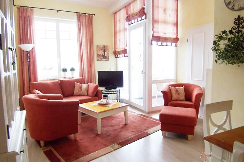 Die Wohnung ist für 2 bis 4 Personen ausgelegt. ( In Ausnahmen bis 5 Personen) Die grosszügige Wohnung hat ein Schlafzimmer mit Ankleide und Doppelbett, ein kleines Gästezimmer mit 140 cm Bett und eine komfortable 140 cm Schlafcouch im Wohnzimmer. Eine Landhausküche mit 4 Plattenherd und Backofen, sowie Spülmaschine und wunderschöne weisse Landhausmöbel laden zu gemütlichen Stunden ein. Im Wohnraum findet man Couch, Sessel und Rattanlehnsessel. Sowohl Fernseher Smart-TV (100 cm LCD) als auch DVD-Player und Stereoanlage fehlen nicht! Da kann man seinen Urlaub geniessen. Die Wohnung liegt im Hochparterre. Die Fenster sind mit abschliessbaren Griffen geschützt. Dusche, WC und zusätzlich Gäste WC!