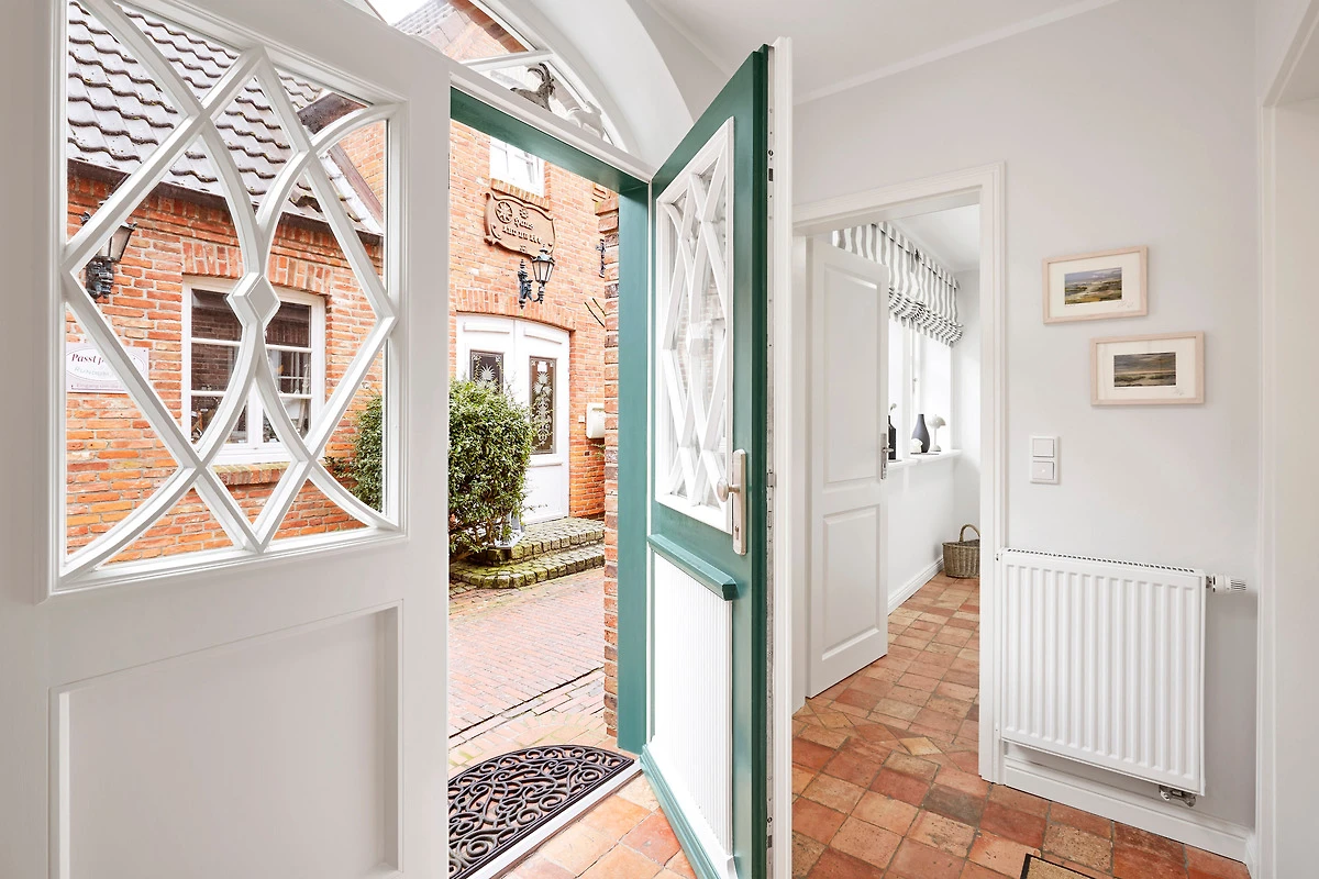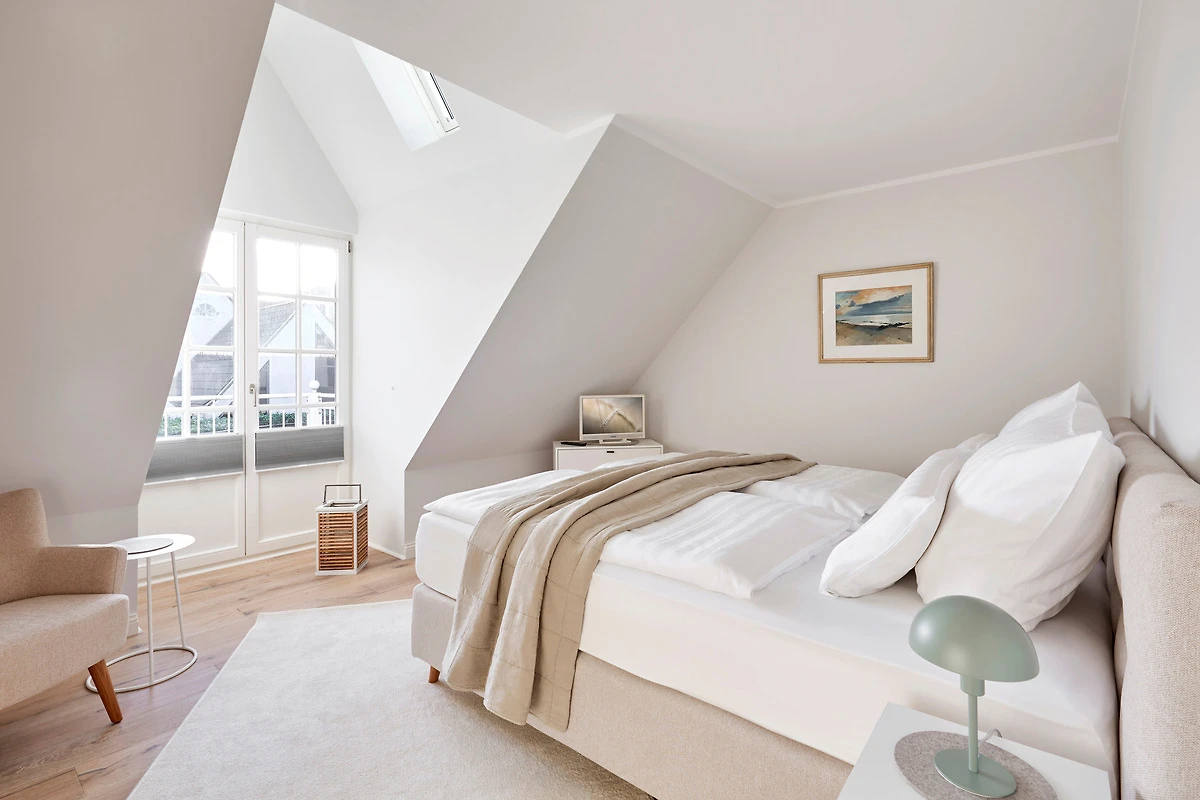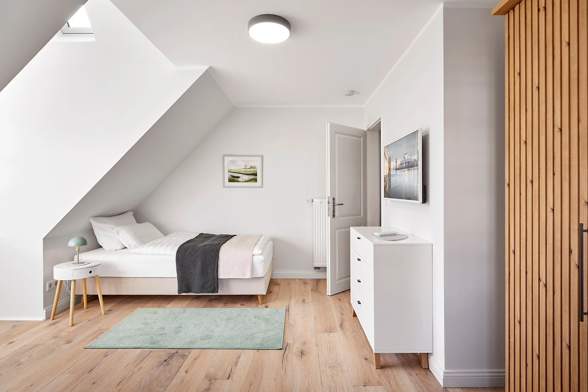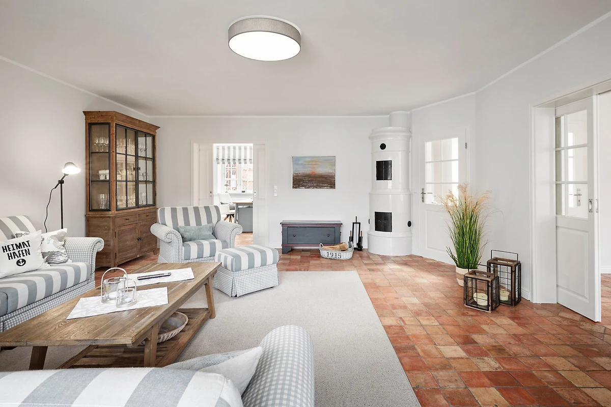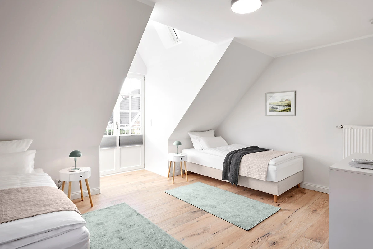 Dieses elegante Ferienhaus auf zwei Ebenen vereint Grosszügigkeit, stilvolles Design und höchsten Komfort inmitten der charmanten Gassen von Wyk. Das Erdgeschoss besticht durch einen lichtdurchfluteten Wohn- und Essbereich, eine moderne Küche, einen Hauswirtschaftsraum sowie ein vielseitig nutzbares Arbeits- oder Lesezimmer. Ergänzt wird das Raumangebot durch ein geschmackvolles Duschbad mit WC.