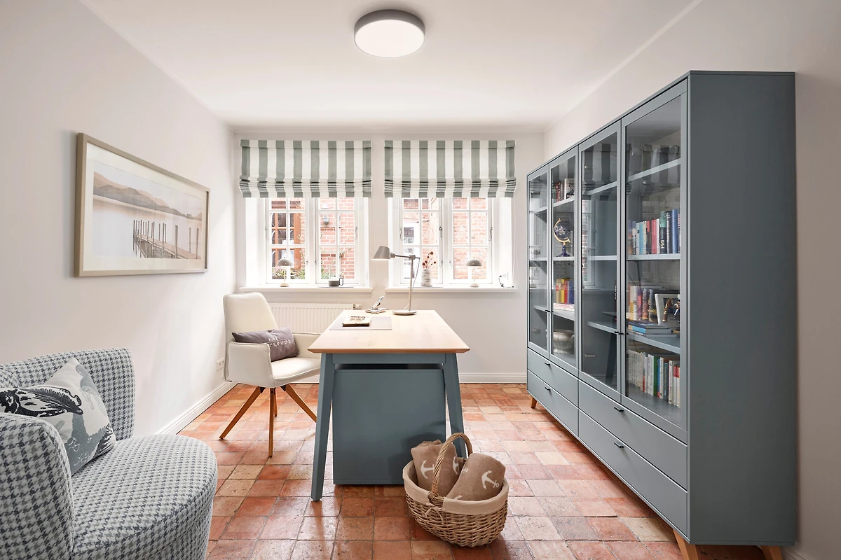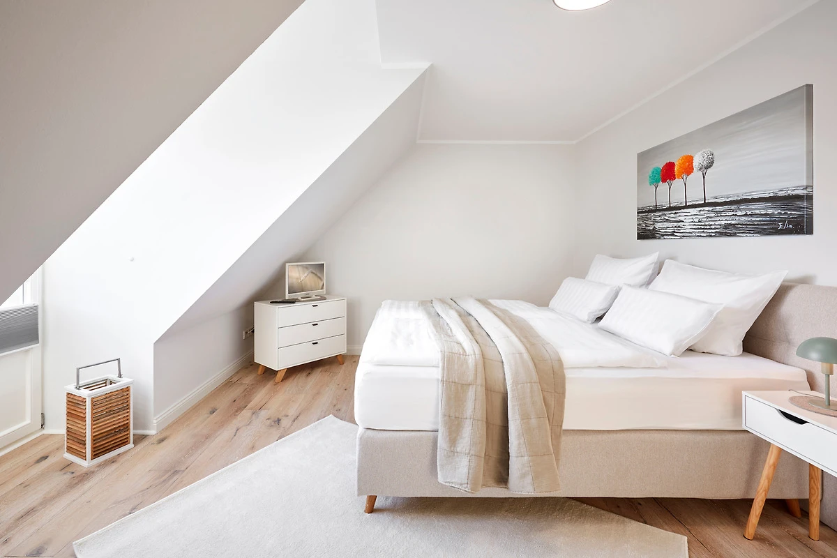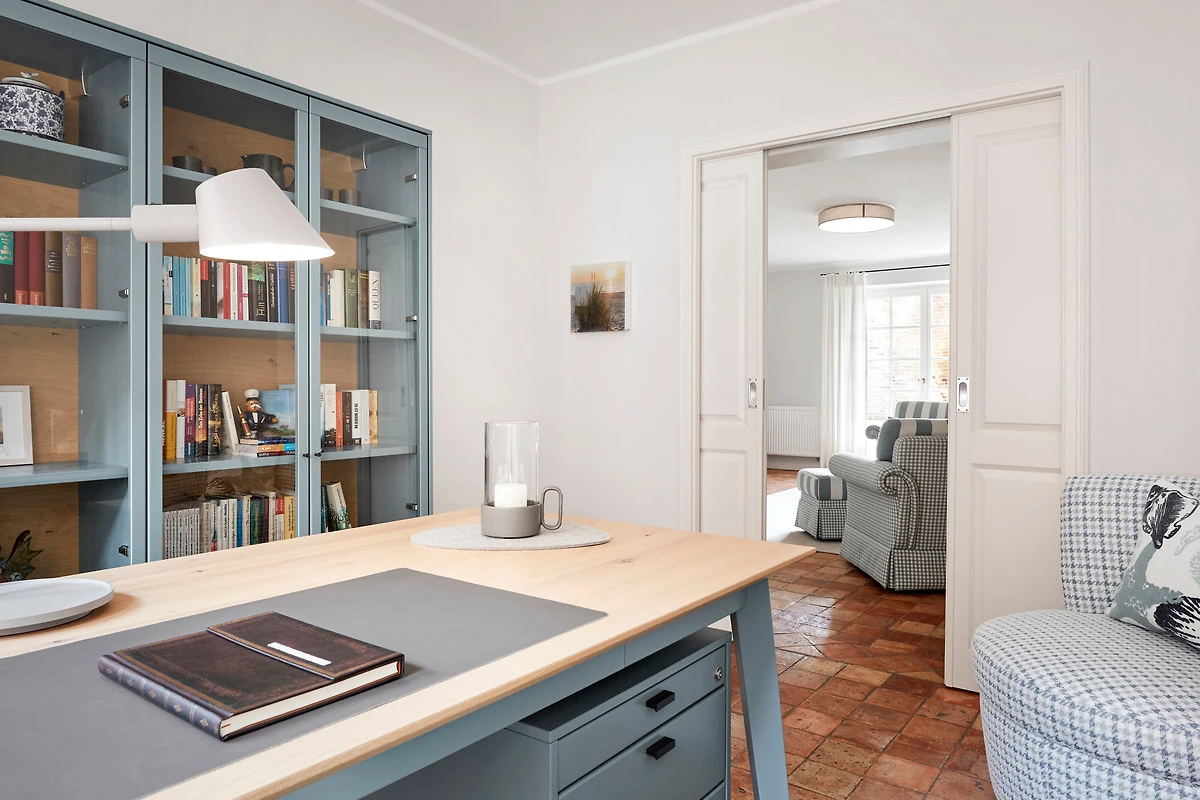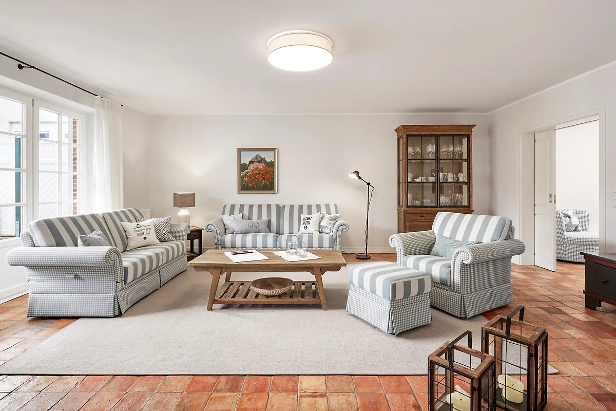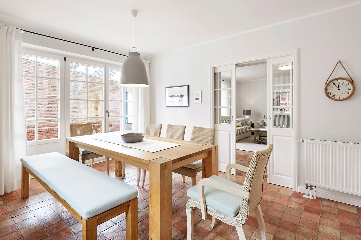 Dieses elegante Ferienhaus auf zwei Ebenen vereint Grosszügigkeit, stilvolles Design und höchsten Komfort inmitten der charmanten Gassen von Wyk. Das Erdgeschoss besticht durch einen lichtdurchfluteten Wohn- und Essbereich, eine moderne Küche, einen Hauswirtschaftsraum sowie ein vielseitig nutzbares Arbeits- oder Lesezimmer. Ergänzt wird das Raumangebot durch ein geschmackvolles Duschbad mit WC.