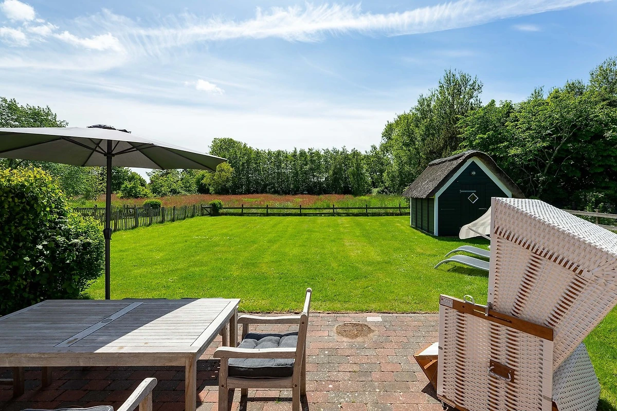Herzlich willkommen in unserem neuem Feriendomizil in ländlicher Idylle von Oldsum. Das Friesenhaus ist mit viel Liebe im traditionellen inseltypischen Baustil direkt am gewachsenen Ortskern entstanden. Ein typischer Friesenwall, Linden und Obstbäume rahmen das Kleinod ein und lassen jede Hektik und Stress vergessen. Auch im Haus zeigt sich die alte friesische Bauweise mit Balkendecken, schönen Holzarbeiten und traditionellen Details, jedoch mit neuester Technik wie Fussbodenheizung und grosszügiger, exklusiver Ausstattung. Geniessen Sie den Aufenthalt in der 130 qm grossen Fischer-Kate ebenerdig und unter dem gemütlichen Dach des Hauses mit bis zu 5 Personen. Nutzen Sie den grossen, eingezäunten Sommergarten mit Blick in die herrliche Natur und auf das Reet gedeckte Friesendorf.