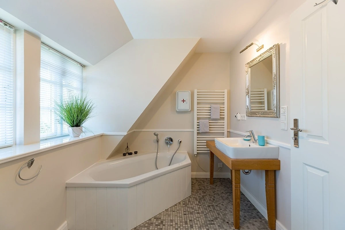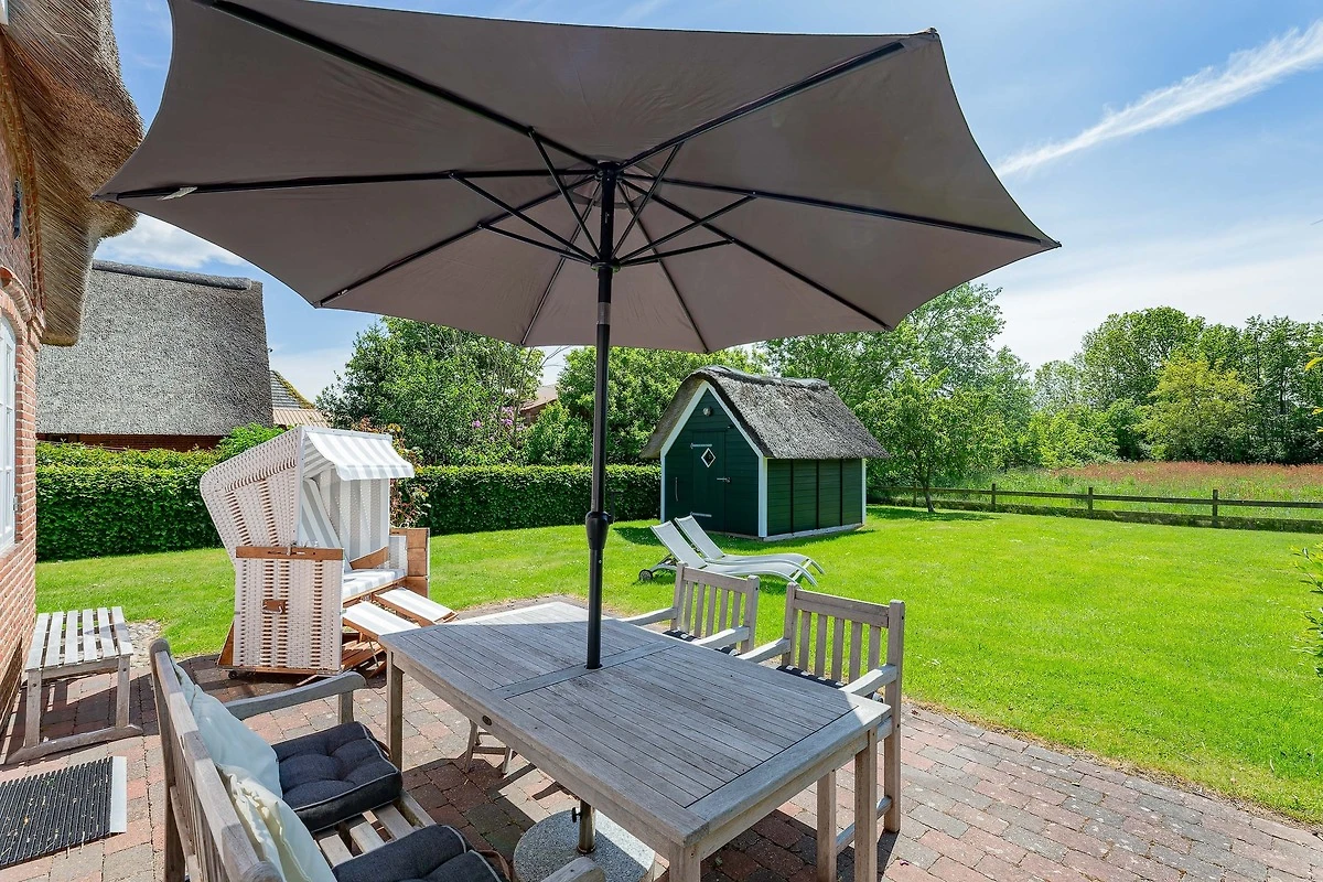Herzlich willkommen in unserem neuem Feriendomizil in ländlicher Idylle von Oldsum. Das Friesenhaus ist mit viel Liebe im traditionellen inseltypischen Baustil direkt am gewachsenen Ortskern entstanden. Ein typischer Friesenwall, Linden und Obstbäume rahmen das Kleinod ein und lassen jede Hektik und Stress vergessen. Auch im Haus zeigt sich die alte friesische Bauweise mit Balkendecken, schönen Holzarbeiten und traditionellen Details, jedoch mit neuester Technik wie Fussbodenheizung und grosszügiger, exklusiver Ausstattung. Geniessen Sie den Aufenthalt in der 130 qm grossen Friesen-Kate ebenerdig und unter dem gemütlichen Dach des Hauses mit bis zu 5 Personen. Nutzen Sie den grossen, eingezäunten Sommergarten mit Blick in die herrliche Natur und auf das Reet gedeckte Friesendorf.