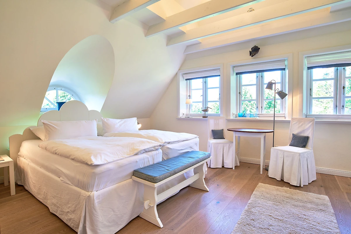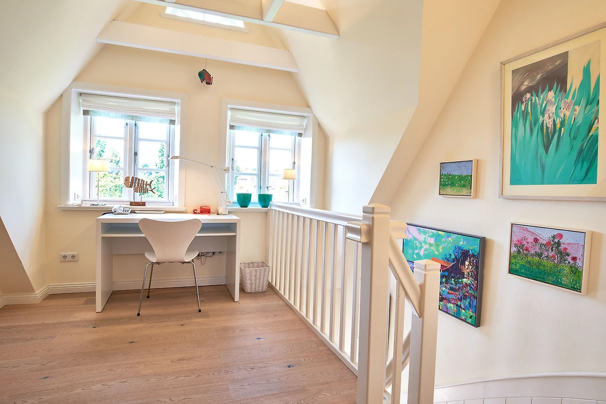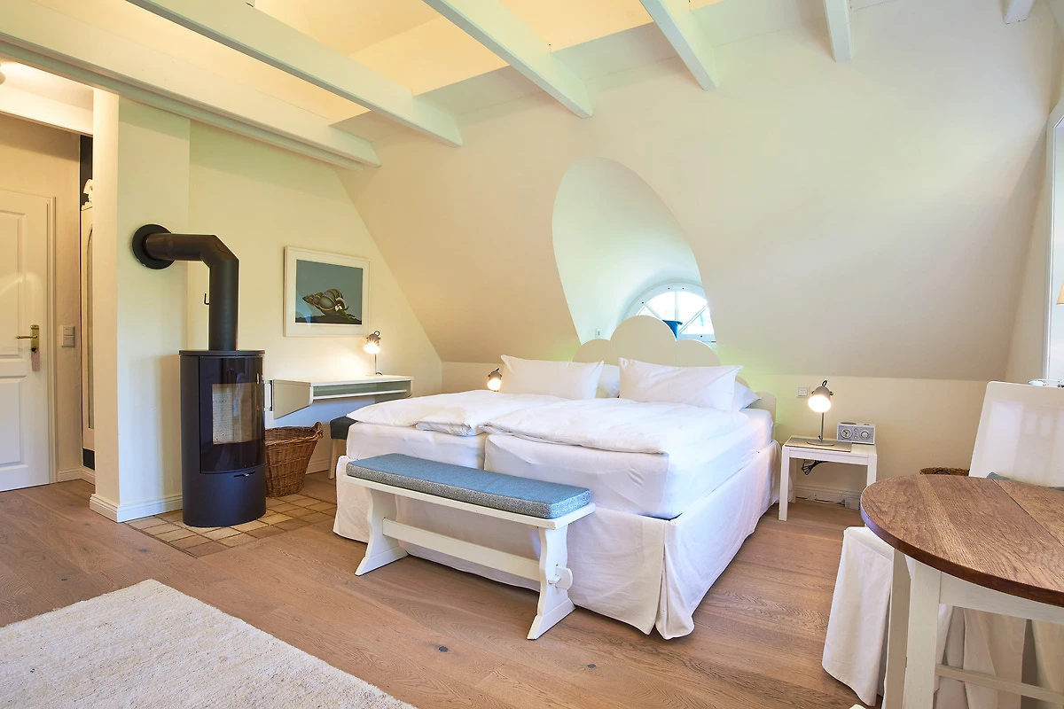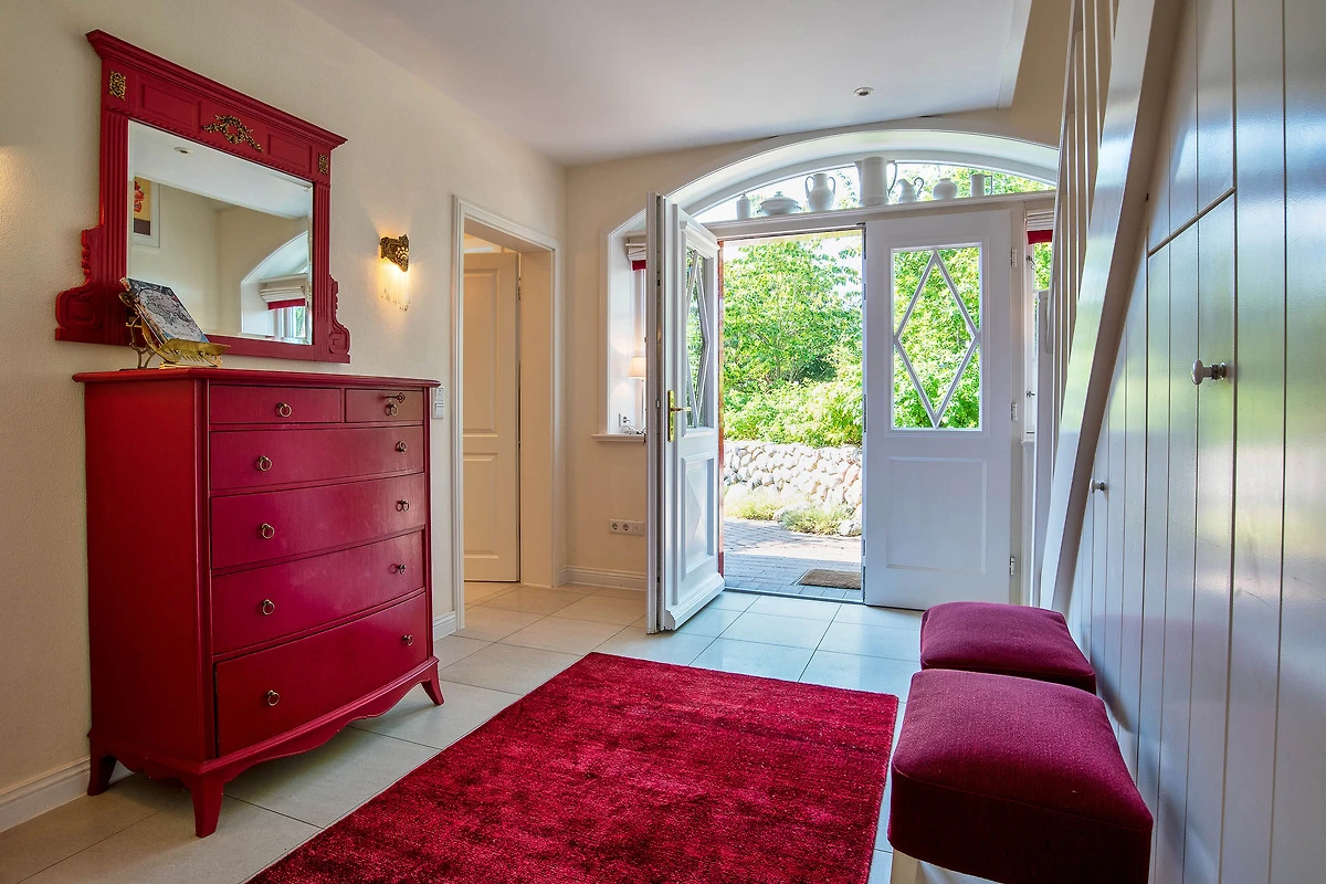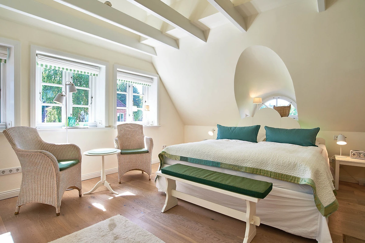 Entdecken Sie das versteckte, märchenhaft im Herzen von Wyk gelegene Einzelhaus unter Reet, das idyllisch und sehr ruhig in zweiter Reihe nur von Gärten umsäumt auf einem ca. 1.000 m2 grossen, eingewachsenen Grundstück liegt. Der wunderschön angelegte Garten bietet durch innere Friesenwälle viel Privatsphäre und durch Illumination am Abend eine aussergewöhnliche Atmosphäre. Die stilvolle Einrichtung der Villa ist ein stimmiger Mix aus modernen Möbeln und antiken Einzelstücken. Geniessen Sie die exklusiven Bäder und den Besuch in der geräumigen Gartensauna. Sie werden sich sicher gern an die gemütlichen Abende vor dem historischen Kachelofen im Wohnzimmer erinnern. Auch zwei der geräumigen Schlafräume sind mit je einem Panoramaofen ausgestattet. Nur ein kurzer Fussweg führt Sie zu den Einkaufsmöglichkeiten und der Promenade mit Badestrand, Bars und Cafes.