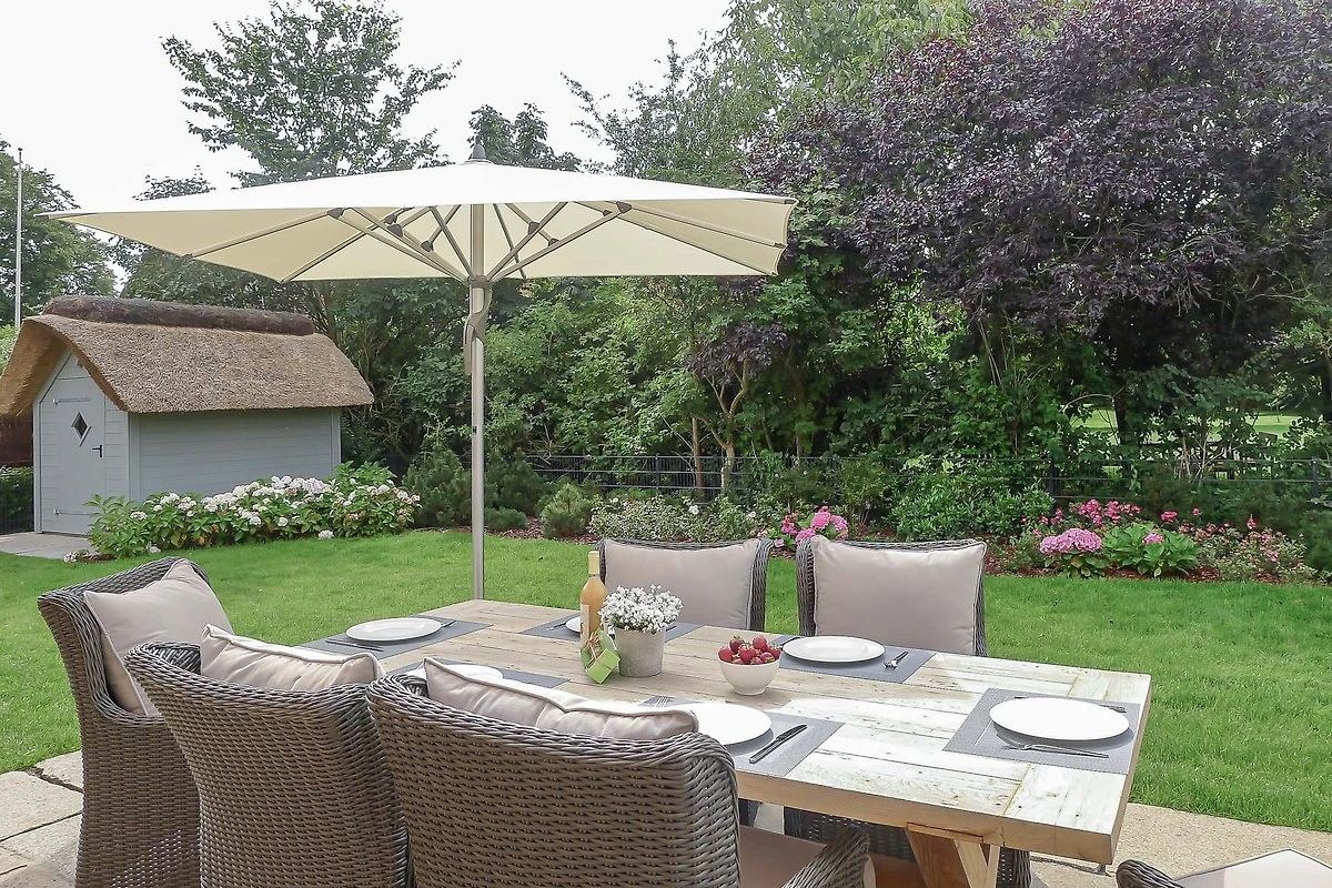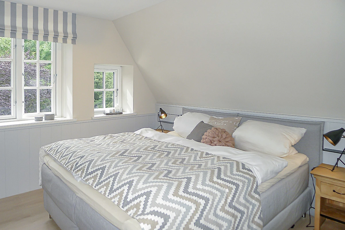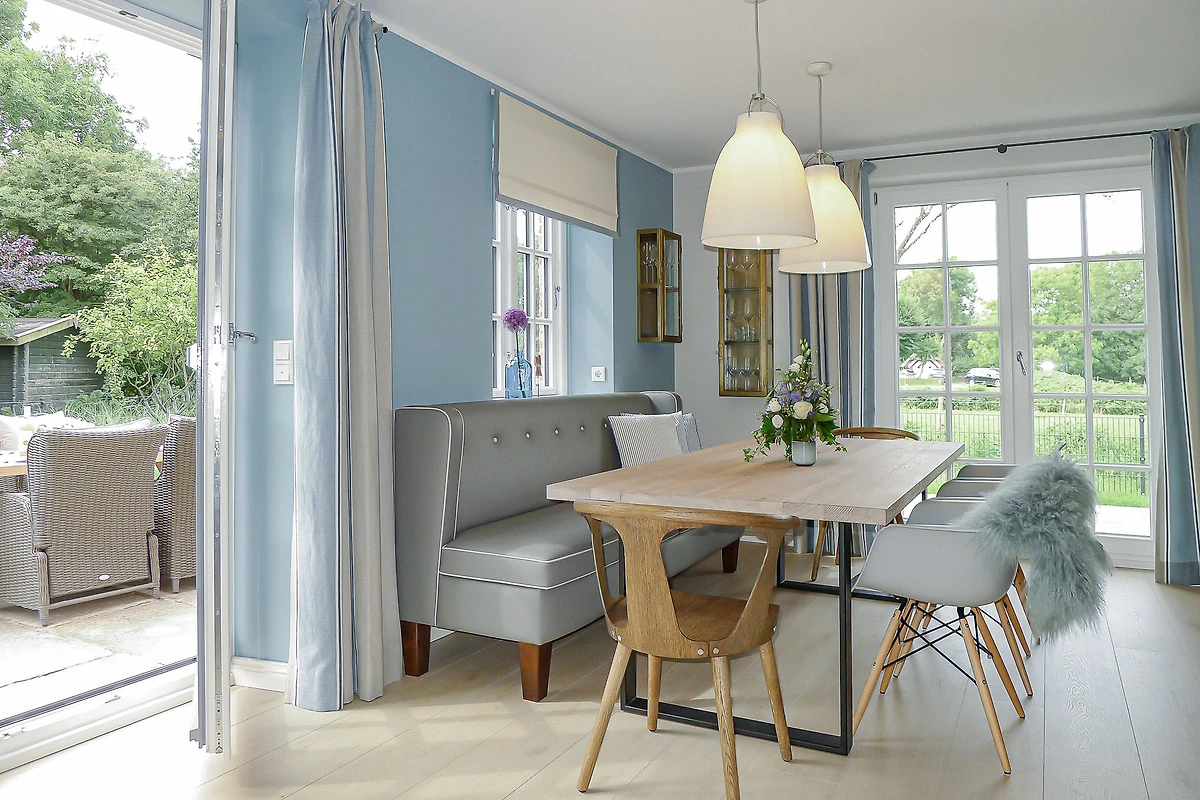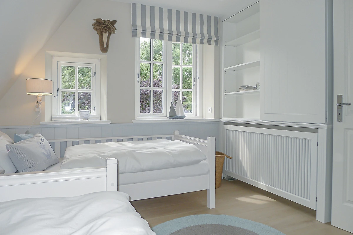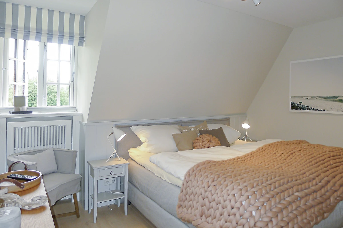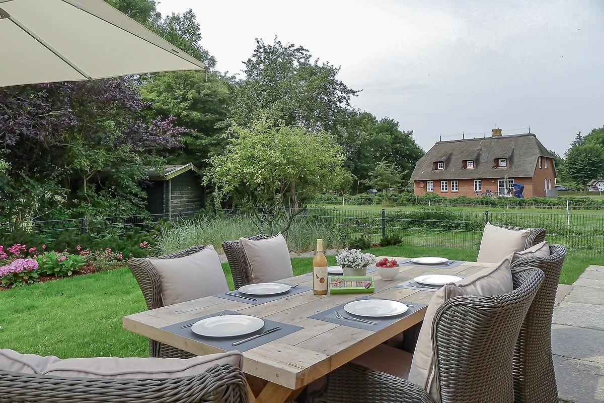 Lewe Daaling bedeutet „lebe heute“ auf friesisch. Verbringen Sie also die schönste Zeit des Jahres in dieser liebevoll eingerichteten Haushälfte unter Reet in Nieblum. Günstig gelegen befinden sich in 120 Meter Entfernung das Zentrum von Nieblum mit Restaurants, Bäcker und bezaubernden Läden zum Einkaufen. Nur fünf Minuten mit dem Rad entfernt liegt der feinsandige Nieblumer Strand mit Wassersportmöglichkeiten. Die moderne Doppelhaushälfte lässt keine Wünsche offen: edle Tischlereinbauten, Nolte Küche, Boxspringbetten, 4 LED-Fernseher, kindersichere Steckdosen, moderner Kamin, Sauna und eine grosszügige Terrasse mit historischen Natursteinplatten. Im liebevoll angelegten Garten können Sie die Sonne mit einem Kaffee begrüssen und sie den ganzen Tag geniessen. Dabei lassen Sie den Blick über die Wiesen schweifen und entspannen auf den Sonnenliegen oder im Strandkorb. Der Garten ist komplett eingezäunt. Entdecken Sie die schönen Gassen, Bauerngärten und historischen Kapitänshäuser. Nieblum, als eines der schönsten Dörfer in Nordfriesland, wird bestimmt auch ihr Herz erobern