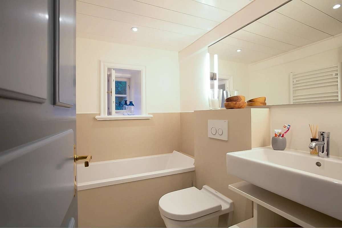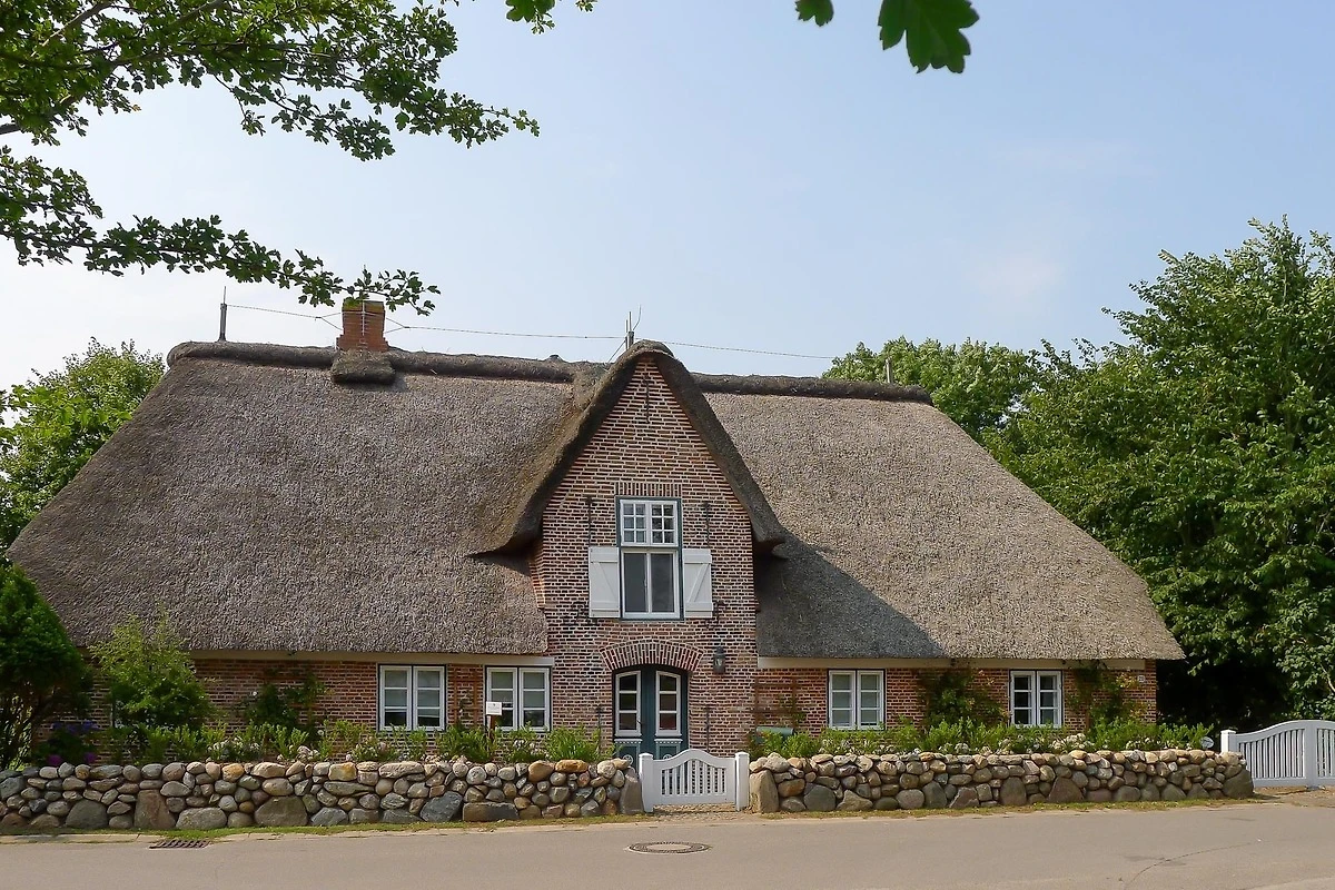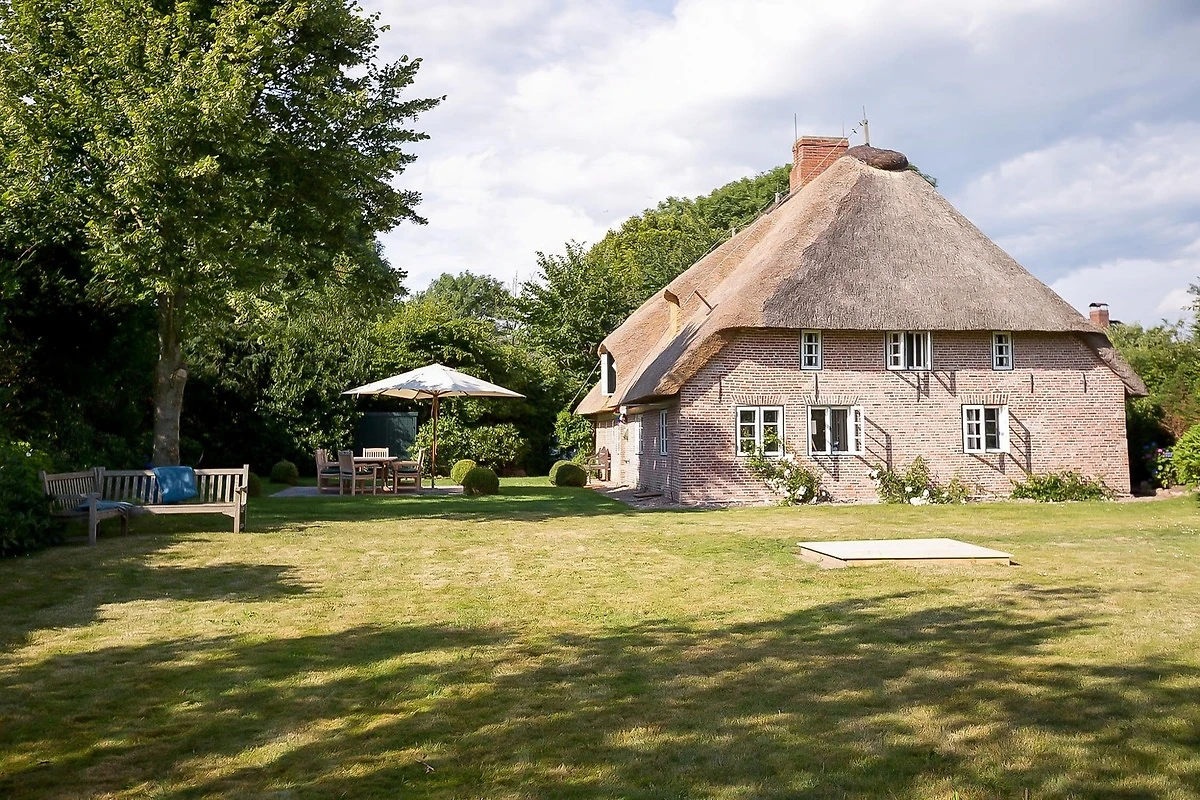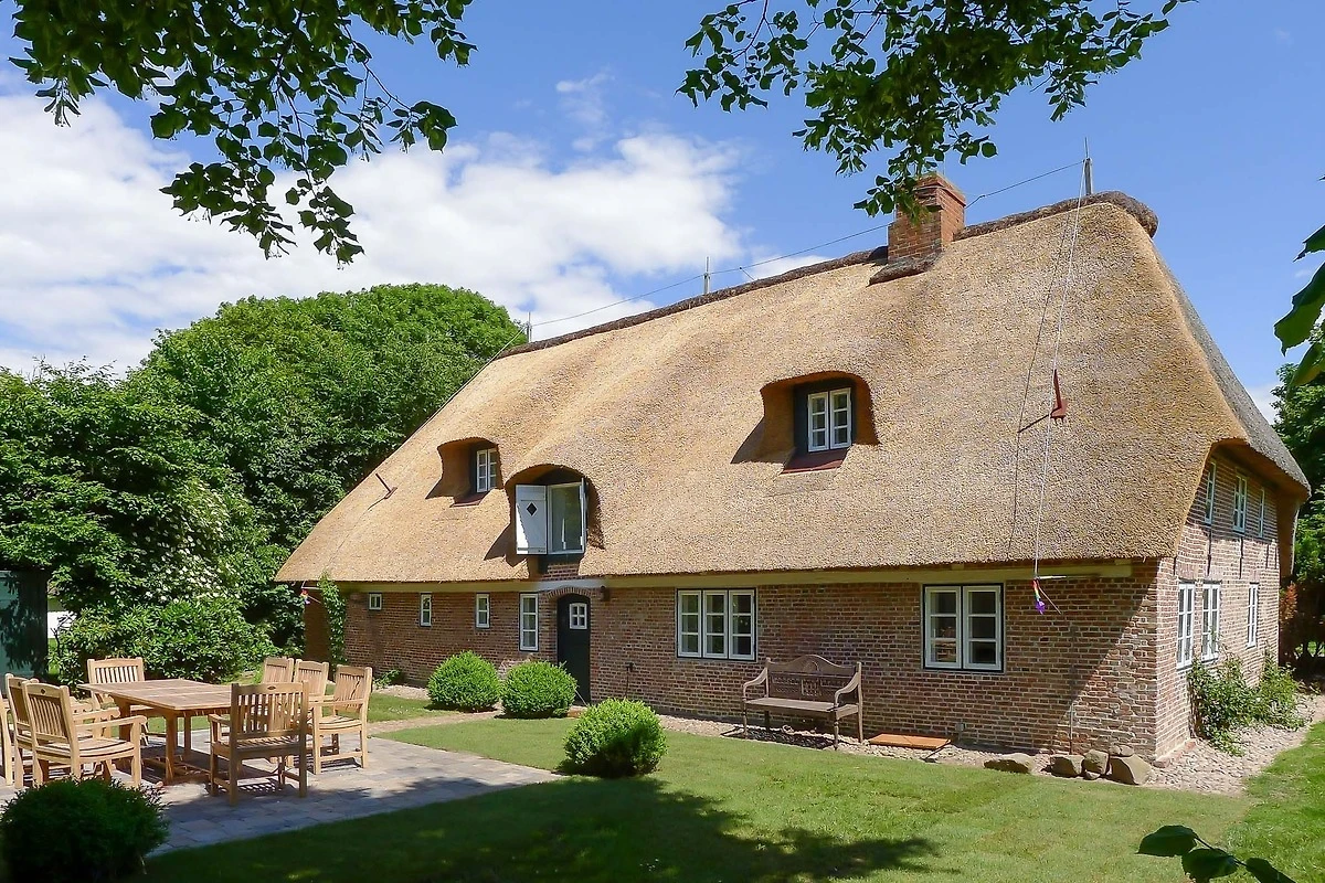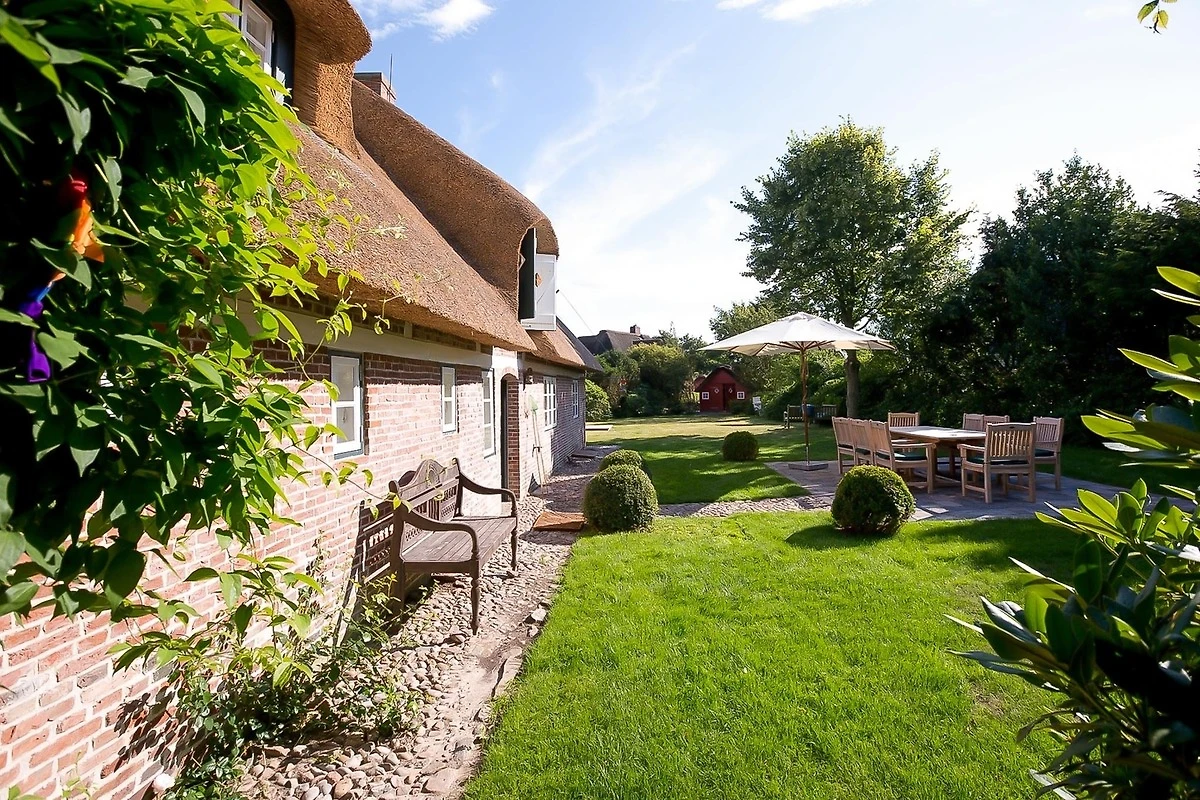 Herrlich gelegen, bietet der Reethof PUK das Refugium für Ihren Urlaub in jeder Jahreszeit. Das denkmalgeschützte Reetdachhaus steht auf einem eingewachsenen, über 1.000 qm grossen, sonnigen Grundstück. In fussläufiger Nähe befindet sich das Goting Kliff mit seinem schönen Strand, und nach Nieblum ist es auch nur ein kurzer Weg. Das Haus wurde geschmackvoll saniert und besticht nun durch die Kombination von alten friesischen Elementen und zeitgemässem, nordischen Wohngefühl. So wurden die Bäder hochwertig saniert, eine grosse Terrasse angelegt und ein Kamin eingerichtet. Die alten Delfter Kacheln, Dielen, Türen und Holzbalken wurden mit viel Liebe restauriert. Ob zu siebt oder zu zweit, mit Kindern oder Freunden - geniessen Sie sonnige Stunden im Garten oder das Feuer im Kamin. Ein Saunahaus mit Vordeck erhöht den Wellnessfaktor im Reethaus Puk und lädt zum puren Entspannen ein.