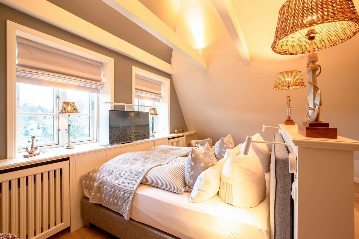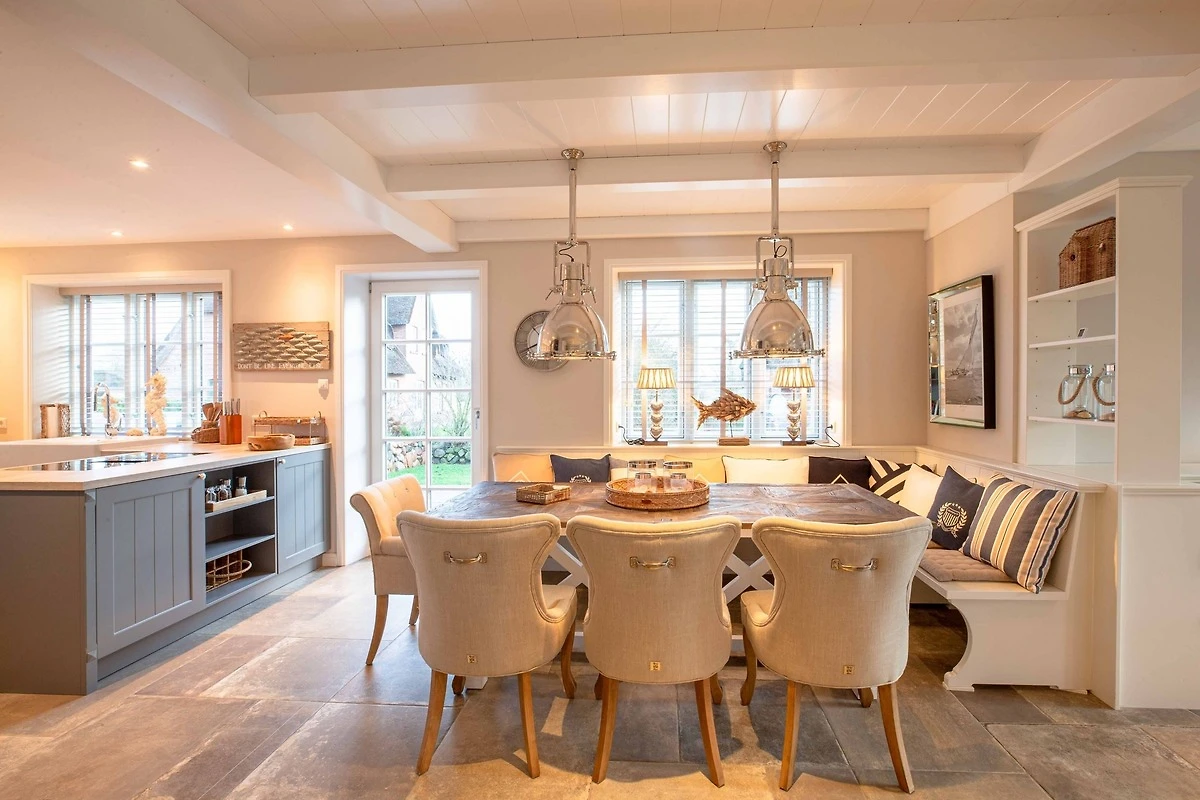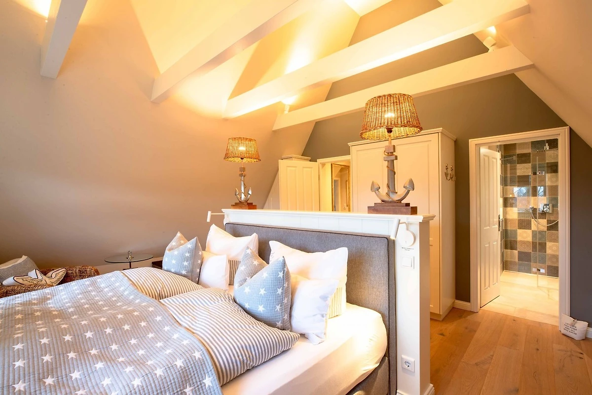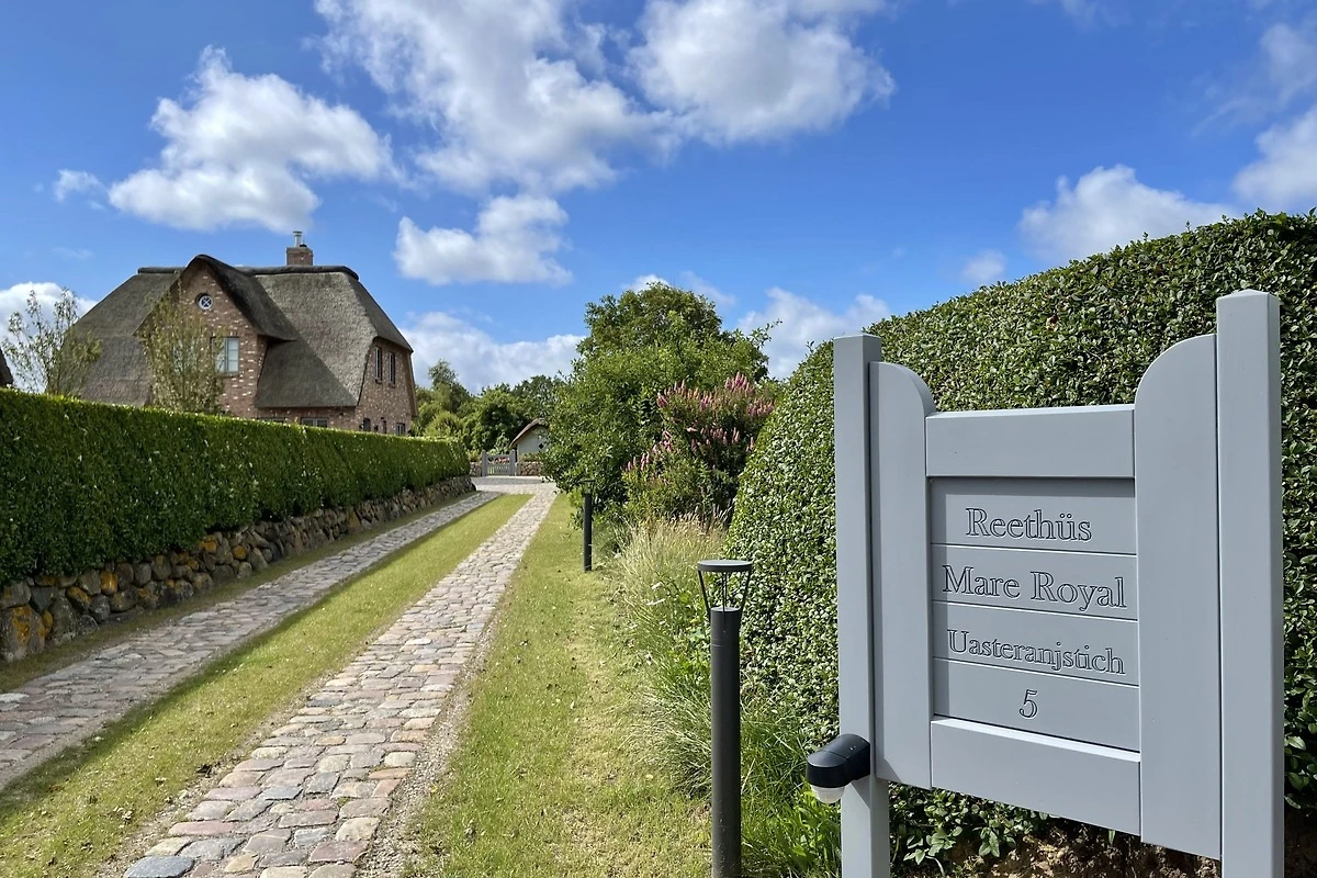 Herzlich willkommen im wunderschönen Reethüs Mare Royal. Sie werden vom Haus und von der Lage in Nieblum-Goting begeistert sein. Mit viel Liebe zum Detail und toller Architektur wurde das Haus gebaut und hergerichtet. Der lichtdurchflutete Wohn- Essbereich mit offener Küche, Mylin Kachelofen und gemütlicher Leseecke lässt keine Wünsche offen. Die Schlafräume befinden sich im Obergeschoss. Der Masterbedroom mit Bad en suite lässt Träume wahr werden. Ein weiterer Doppelbettschlafraum und ein maritimes Kinderzimmer mit Alkovenbetten teilen sich ein Bad im Obergeschoss. Ihren persönlichen Wellnessbereich mit Sauna und Relaxzone erreichen Sie über eine Treppe in das Dachgeschoss. Der wunderschöne Garten und die beiden Terrassen laden schon morgens dazu ein, den Tag draussen zu starten. Der Weg zum nahe gelegenen Gotinger Strand ist in 3 Minuten mit dem Fahrrad zu erreichen - zu Fuss in gut 10 Minuten. Wenn Sie das Besondere suchen und Gemütlichkeit mit Qualität auf ihrem Wunschzettel steht, ist das Mare Royal genau Ihr Urlaubsdomizil.