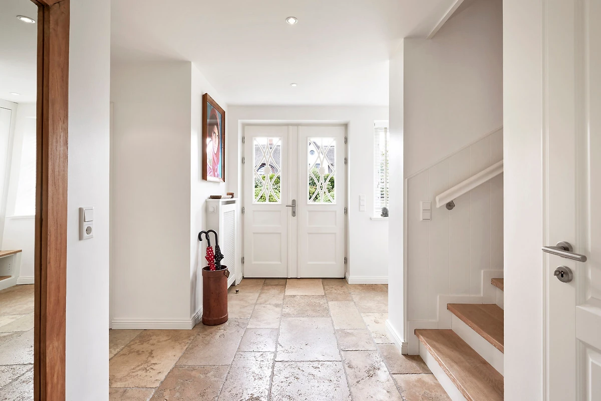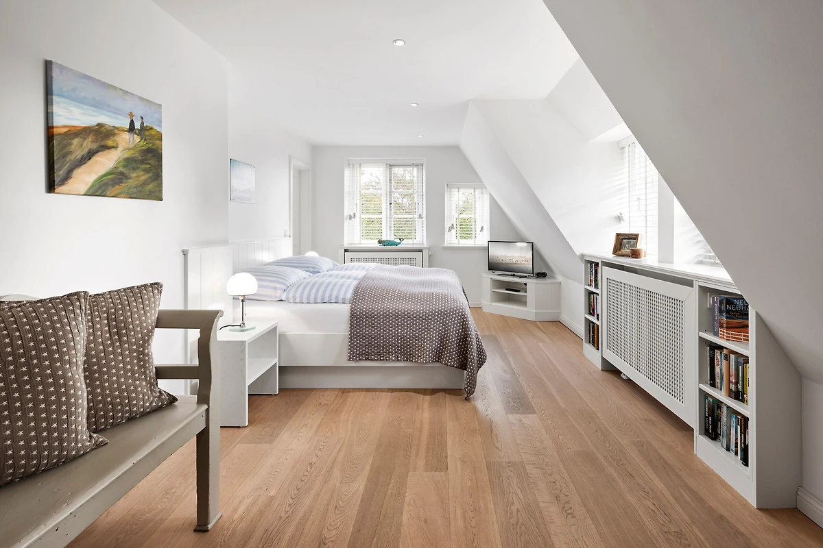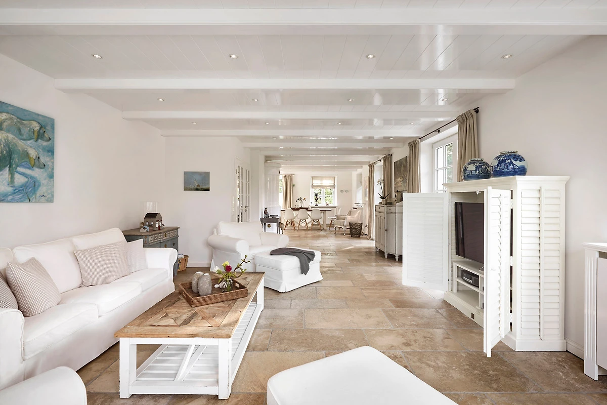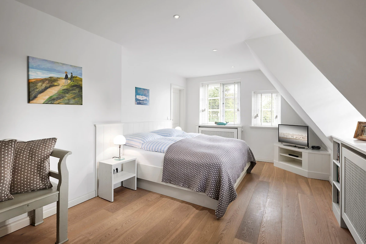 Wohnen Sie in diesem exklusiven Einzelhaus unter Reet im wunderschönen Friesendorf Nieblum. Hier finden Sie alte Kapitänshäuser, bunte Bauerngärten, Baumalleen und reetgedeckte Friesenhäuser - der perfekte Ausgangspunkt für einen erholsamen Urlaub. Das Haus ist sehr hochwertig ausgestattet und lässt keine Wünsche offen. Ein grosszügiger Wohnraum mit Kachelofen, daran angrenzend der Essbereich für 6 Personen und die offene Küche mit allem, was das Kochherz begehrt, machen das Erdgeschoss zum Blickfang. Im Obergeschoss befinden sich drei geräumige Schlafräume und zwei Badtempel. Auf der ca. 95qm grossen Terrasse und im schön angelegtem Garten werden Sie erholsame Urlaubstage verbringen.
