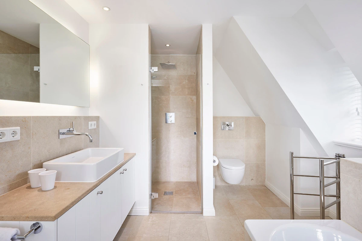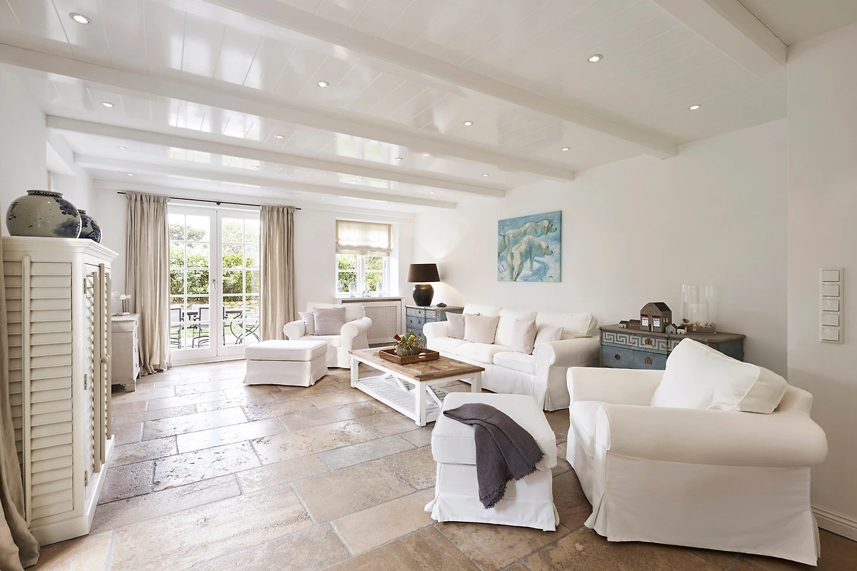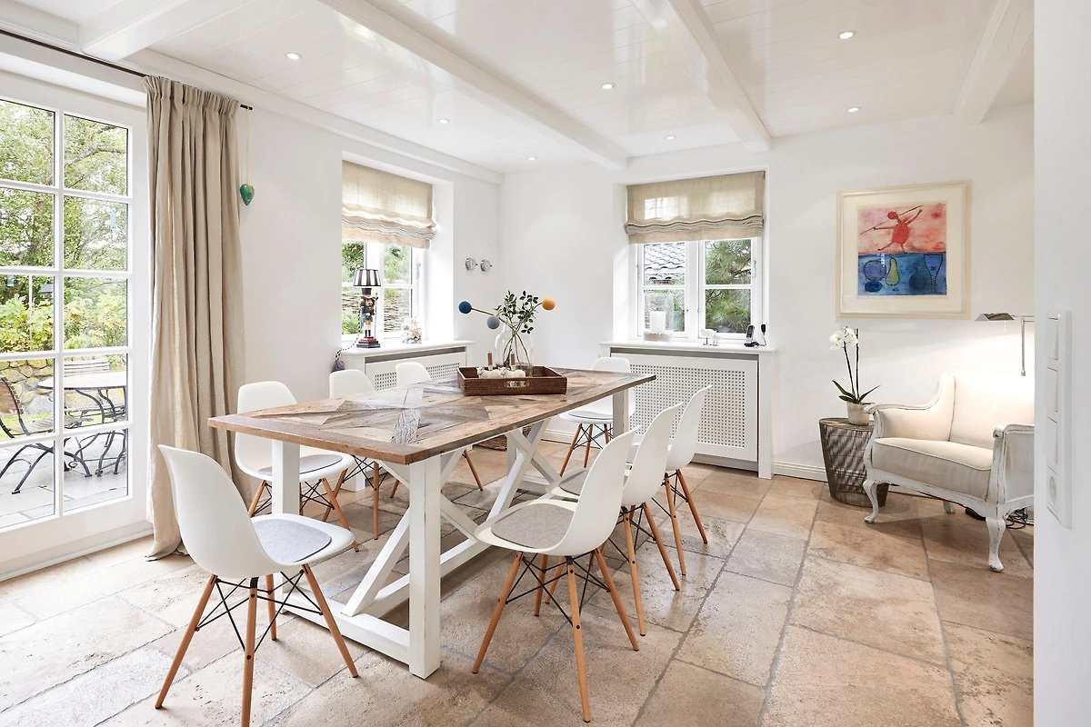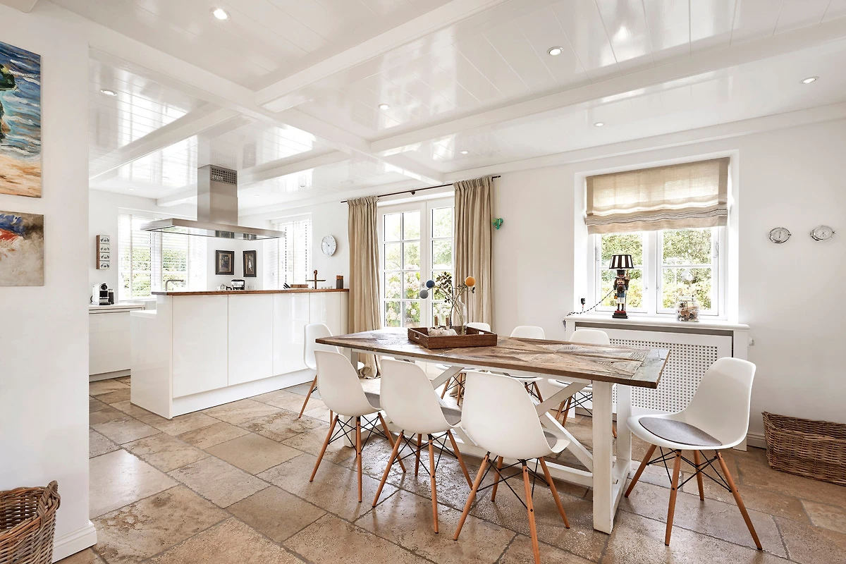 Wohnen Sie in diesem exklusiven Einzelhaus unter Reet im wunderschönen Friesendorf Nieblum. Hier finden Sie alte Kapitänshäuser, bunte Bauerngärten, Baumalleen und reetgedeckte Friesenhäuser - der perfekte Ausgangspunkt für einen erholsamen Urlaub. Das Haus ist sehr hochwertig ausgestattet und lässt keine Wünsche offen. Ein grosszügiger Wohnraum mit Kachelofen, daran angrenzend der Essbereich für 6 Personen und die offene Küche mit allem, was das Kochherz begehrt, machen das Erdgeschoss zum Blickfang. Im Obergeschoss befinden sich drei geräumige Schlafräume und zwei Badtempel. Auf der ca. 95qm grossen Terrasse und im schön angelegtem Garten werden Sie erholsame Urlaubstage verbringen.