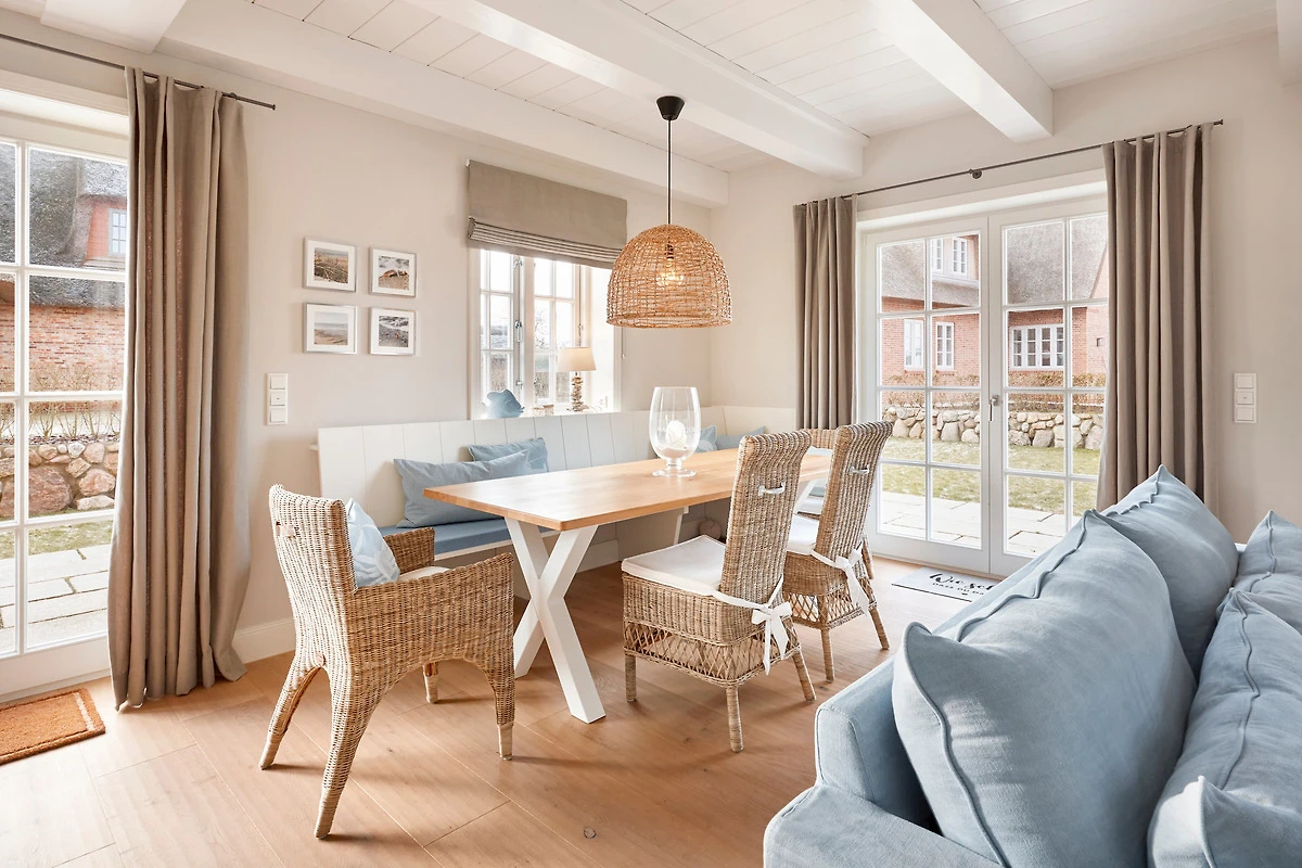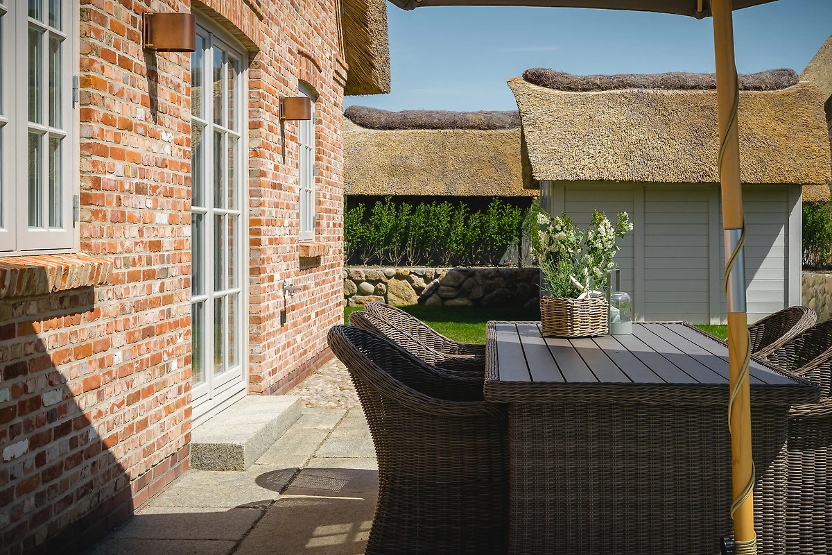 Dieses Reetdachdoppelhaus liegt am Ortsrand des beschaulichen Friesendorfs Oldsum, auch als Künstlerdorf bezeichnet. Das Haus steht in einer ruhigen Strasse am Rande der Marsch, mit kurzen Wegen zum Edeka Markt mit Bäckerei, zu zwei gemütlichen Cafes und zum Dorfgasthof.