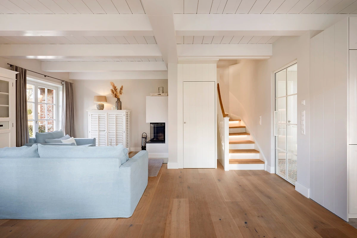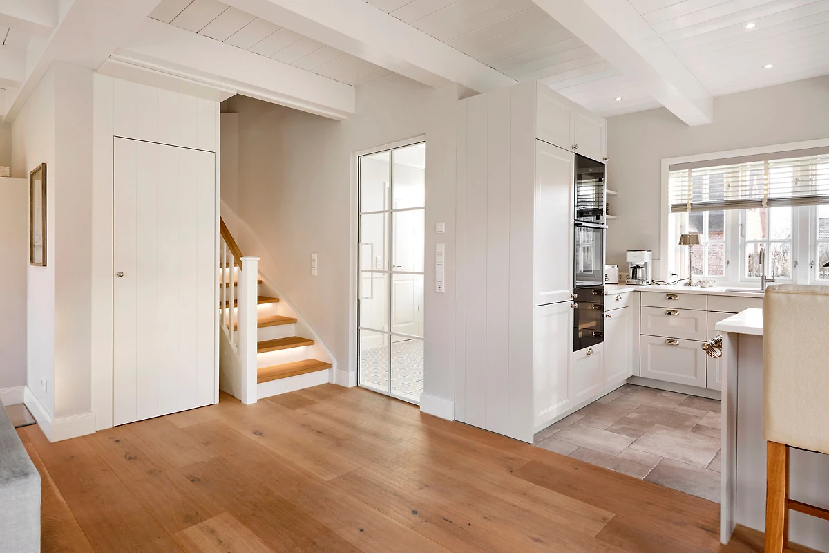 In der moderenen und gemütlichen Doppelhaushälfte unter Reet erwartet Sie der Wohn- und Essbereich mit offener Küche, ein Gäste-WC sowie ein Hauswirtschaftsraum. Von Wohnbereich aus gelangen Sie direkt auf die eigene Terrasse und in den Garten.