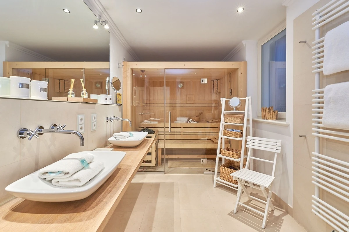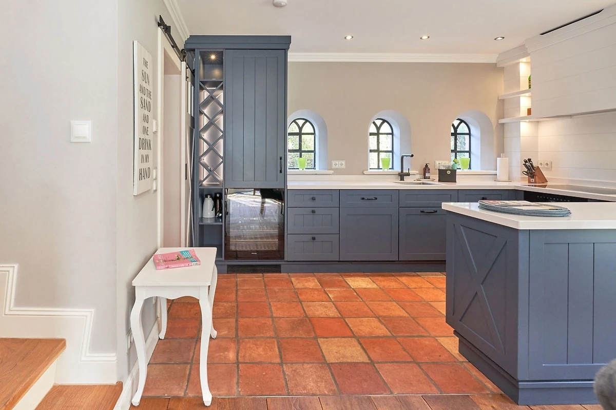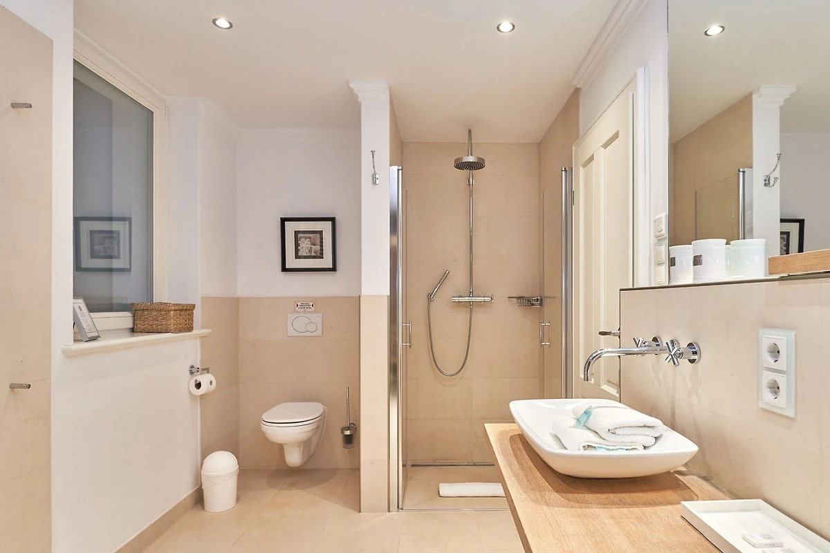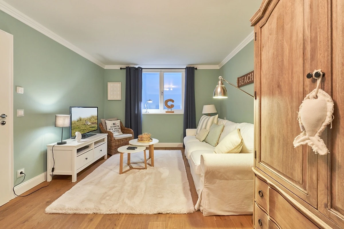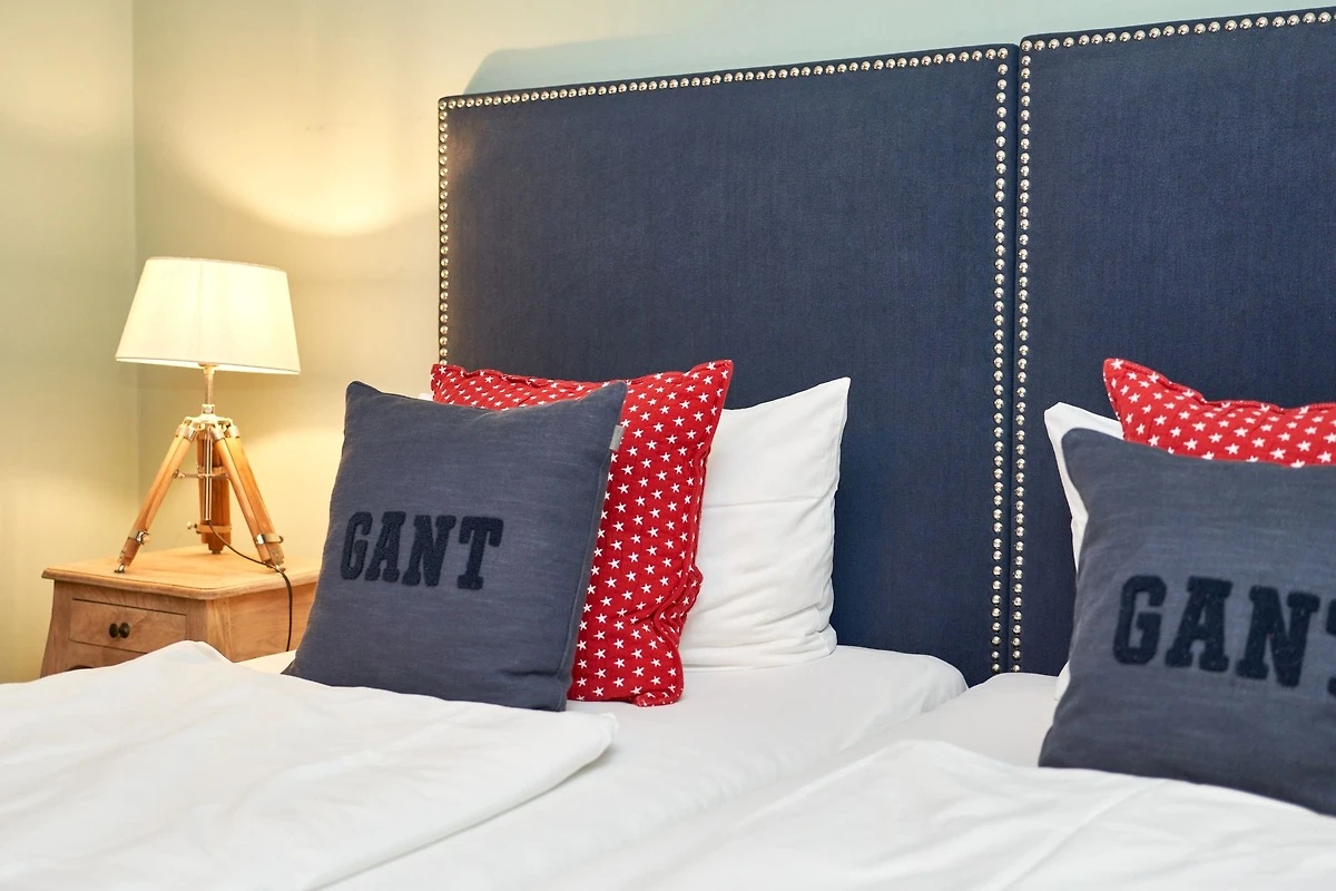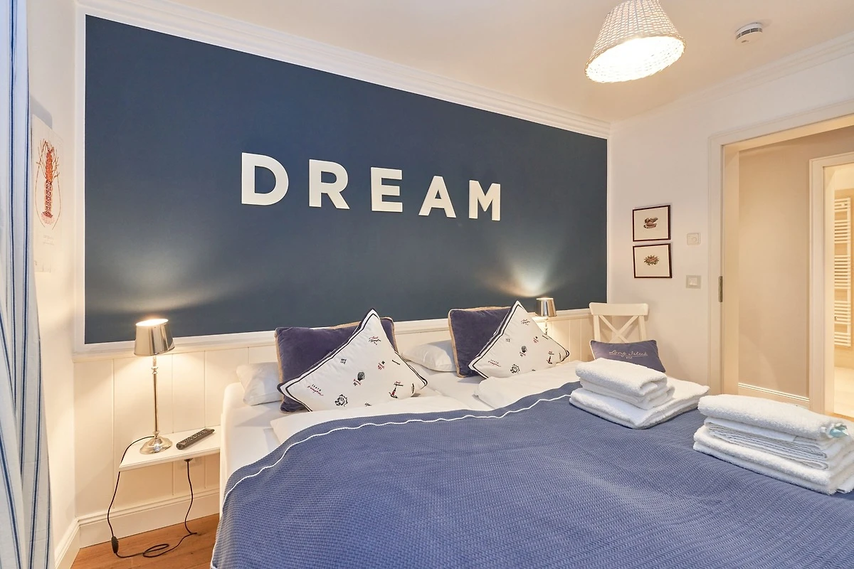 Exklusive Doppelhaushälfte unter Reet im Hampton Style für bis zu 8 Personen. Aussen Sylt , innen Hamptons. Über einen kleinen Vorflur mit Garderobe gelangt man in das grosszügige Wohnzimmer mit seiner offenen Küche mit den angrenzenden Essplatz für gemütliche Abende. Auffällig und besonders neben der hochwertigen Ausstattung ist das Beleuchtungskonzept sowie die Holzeinbauten mit IPhone - Ladestationen. Im Obergeschoss verfügt über zwei Schlafzimmer und ein Badezimmer mit bodengleicher Dusche. Der ausgebaute Spitzboden verfügt über zwei weitere Einzelbetten. Im Untergeschoss befindet ein Schlafzimmer mit Doppelbett und Schrankeinbauten sowie ein weiteres Wohn und Schlafzimmer. Eine Sauna mit grosszügigen Bad ist ebenfalls vorhanden. Der Technik und Hauswirtschafsraum verfügt über eine Waschmaschine und Trockner.