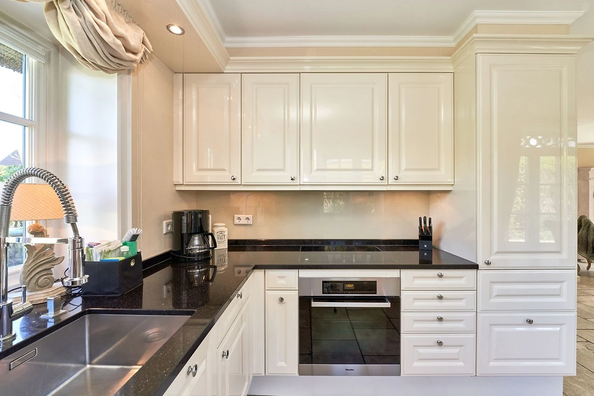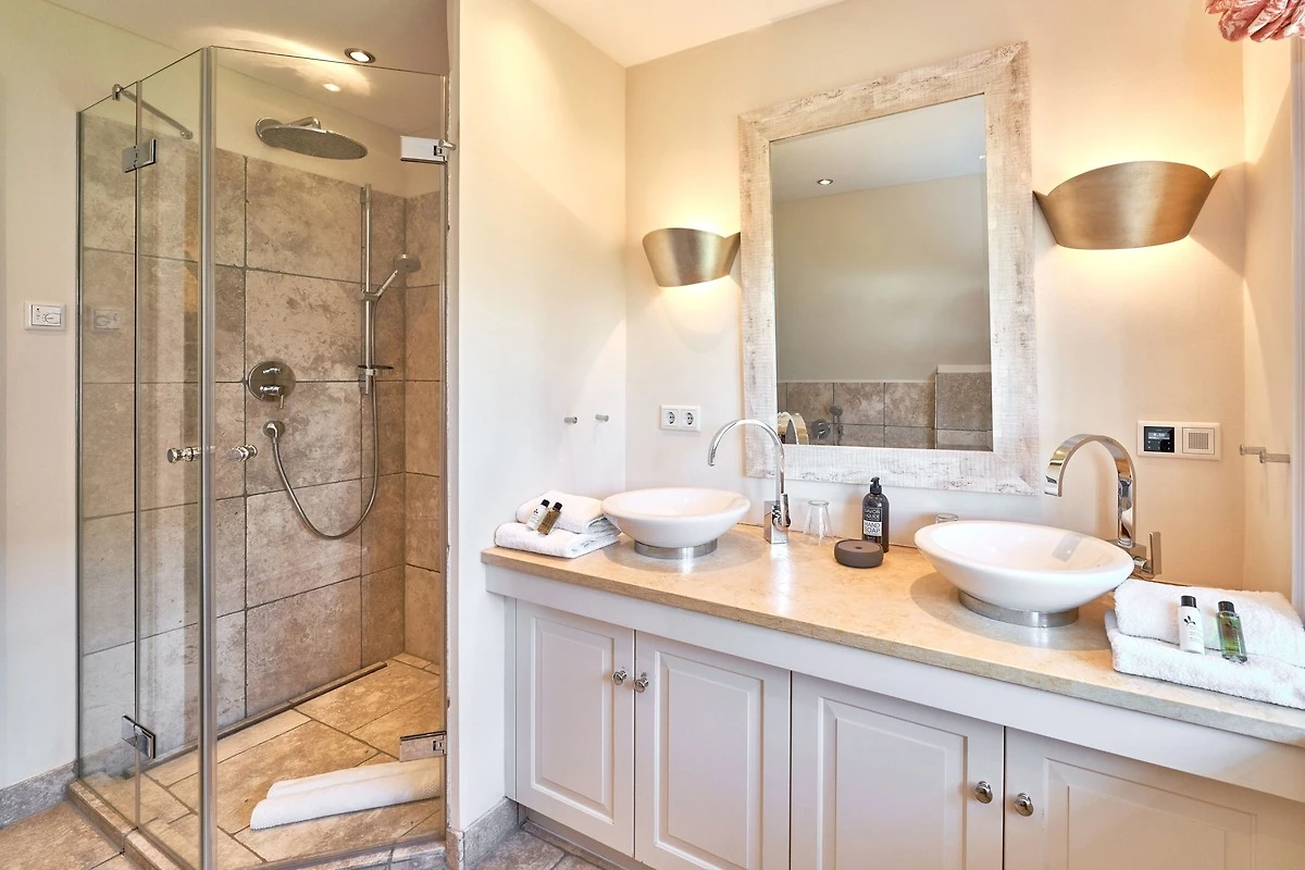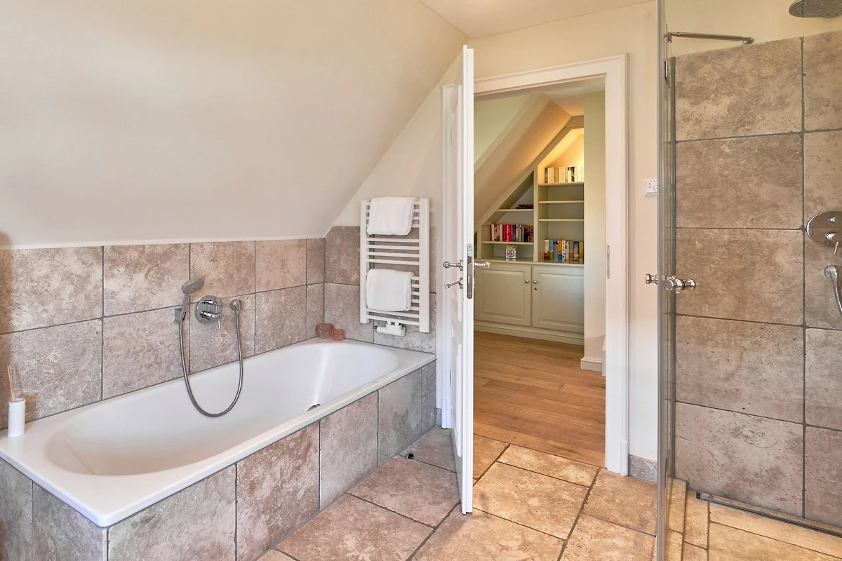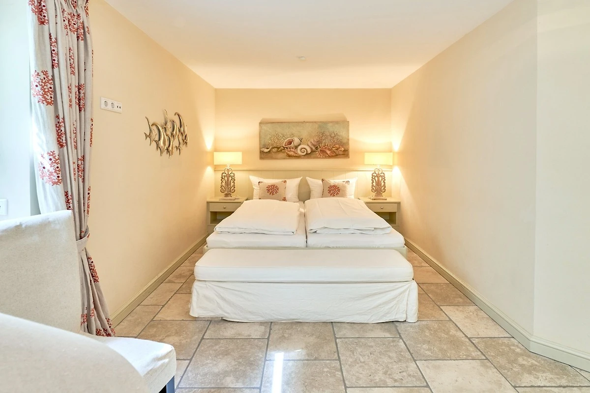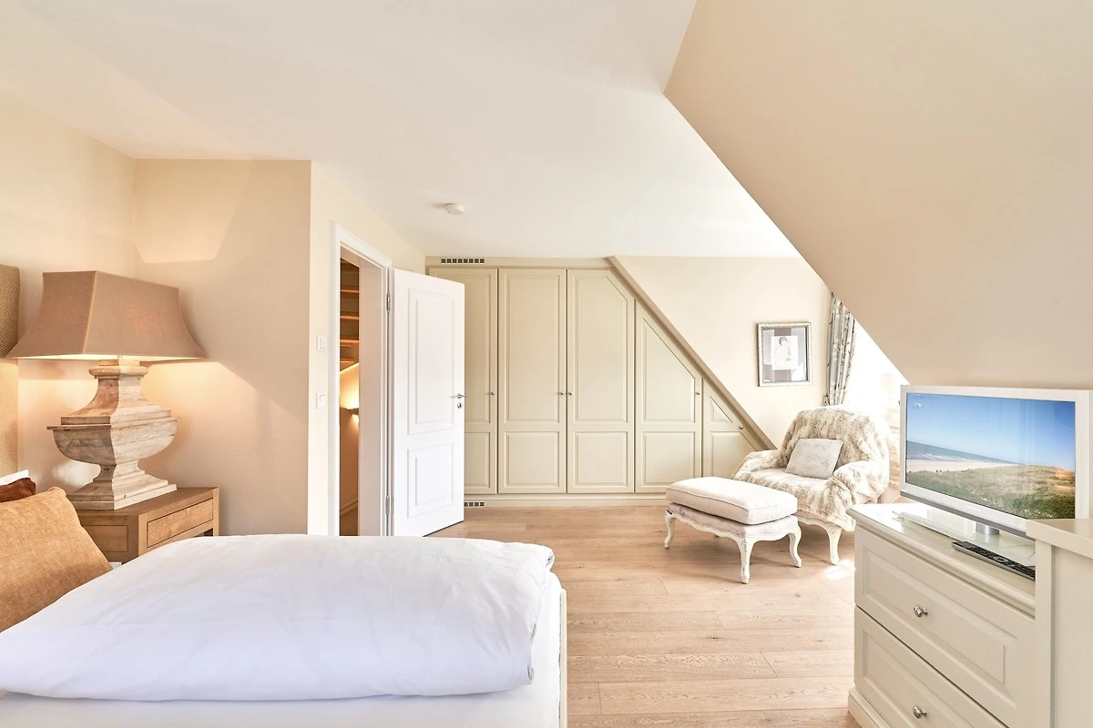 Das Ambiente auf den drei Ebenen des Hauses erfreut durch liebevoll ausgesuchte Ausstattung und im modernen Landhaus Stil. Der lichtdurchflutete Wohnraum, die herrliche Süd-West Terrasse tragen zu ihrem Wohlbefinden bei. Das Sunny Hüs wurde mit sehr viel Liebe zum Detail eingerichtet. Im Erdgeschoss befindet sich die Diele mit seinen grosszügigen Garderobenschrank und das angrenzende Gäste - WC. Durch eine Doppeltür betreten Sie ein helles und grosszügiges Wohnzimmer mit einem antiken, nordischen Kachelofen, eine offene Küche mit angrenzender Essecke für 6 Personen ist ebenfalls vorhanden. Im Obergeschoss erwartet Sie ein geräumiges Schlafzimmer mit Doppelbett und Schrankeinbauten und der Fussboden ist mit gekelchten Echthausdielen ausgestattet. Ausserdem hat das Schlafzimmer noch einen Elektrokamin und verfügt über einen Fernseher. Das angrenzende grosse Badezimmer mit Dusche und Wanne verfügt noch über ein Waschtisch mit zwei aufgesetzten Waschbecken. Die Diele im Obergeschoss verfügt über einen kleinen separaten Arbeitsplatz und ein Bucherregal. Im Untergeschoss befinden jeweils zwei Schlafzimmer mit einen Doppelbett und Einbauschränken. sowie ein Badzimmer mit Dusche und WC. Für Ihr Wohlbefinden gibt es hier noch eine Sauna mit Glasfront mit Blick in das Badezimmer. Ein kleiner separater Hauswirtschaftraum mit Waschmaschine und Trockner ist ebenfalls vorhanden.
