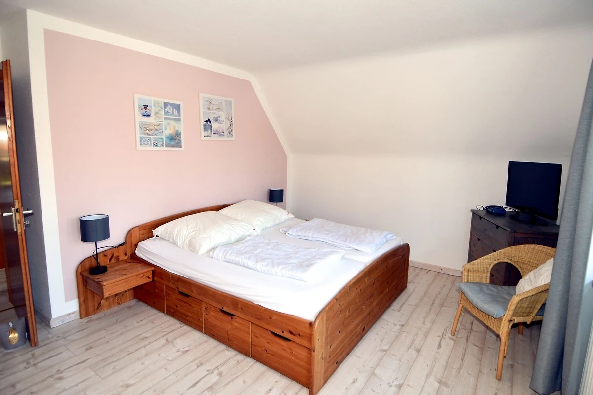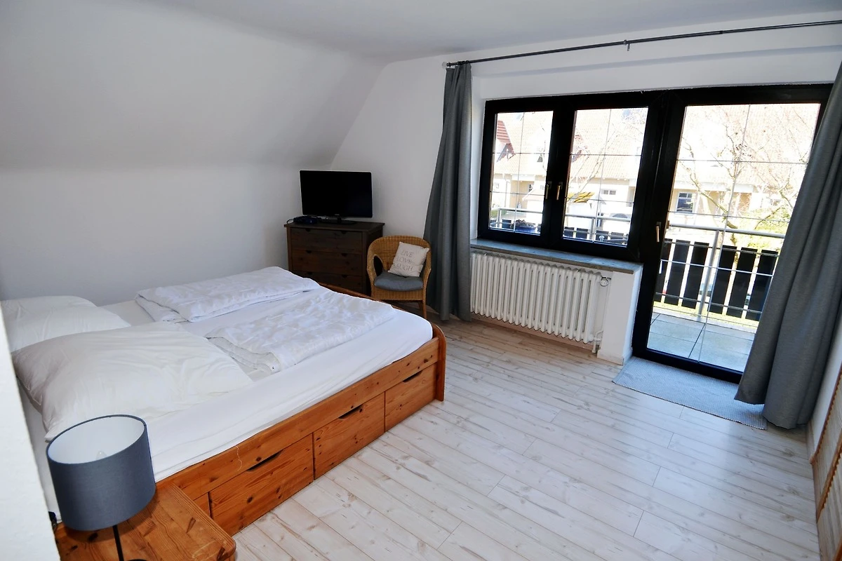 1 Schlafzimmer mit Doppelbett (180x200) und Zugang zum Balkon