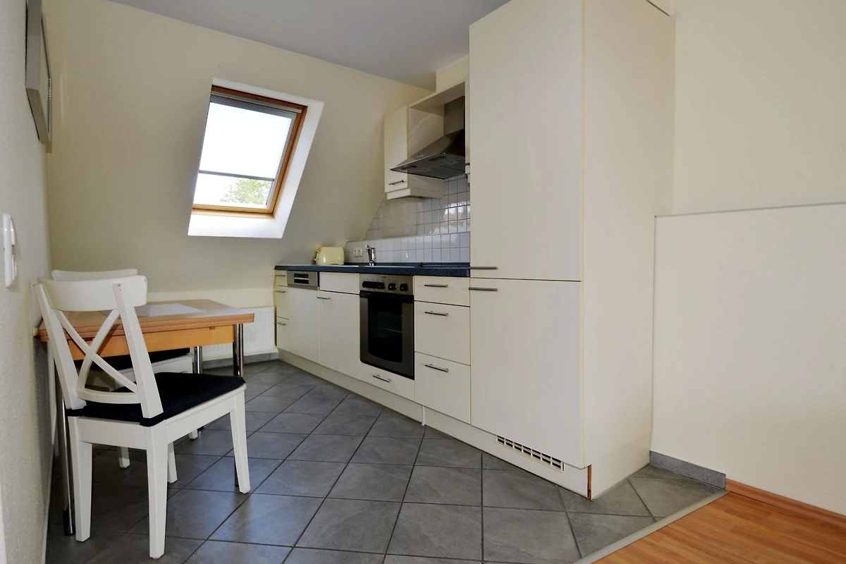 Die Küche ist eigenständig und vollständig ausgestattet. Sie bietet ausreichend Arbeitsfläche sowie moderne Geräte für die Selbstversorgung während des Aufenthalts. Die Küchenausstattung ermöglicht die Zubereitung von Mahlzeiten für den täglichen Bedarf.