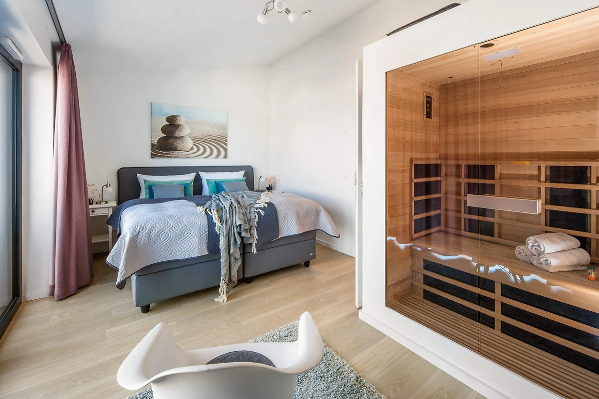 Ein besonderes Highlight ist die integrierte Infrarot-Sauna, die Ihnen wohltuende Entspannung nach einem Tag am Meer bietet. Und für pure Erholung unter freiem Himmel sorgen die zwei grosszügigen, möblierten Dachterrassen. Geniessen Sie auf der sonnigen Südterrasse die frische Ostseeluft und lassen Sie den Tag entspannt auf der Nordterrasse bei einem Glas Wein und einem traumhaften Sonnenuntergang ausklingen.