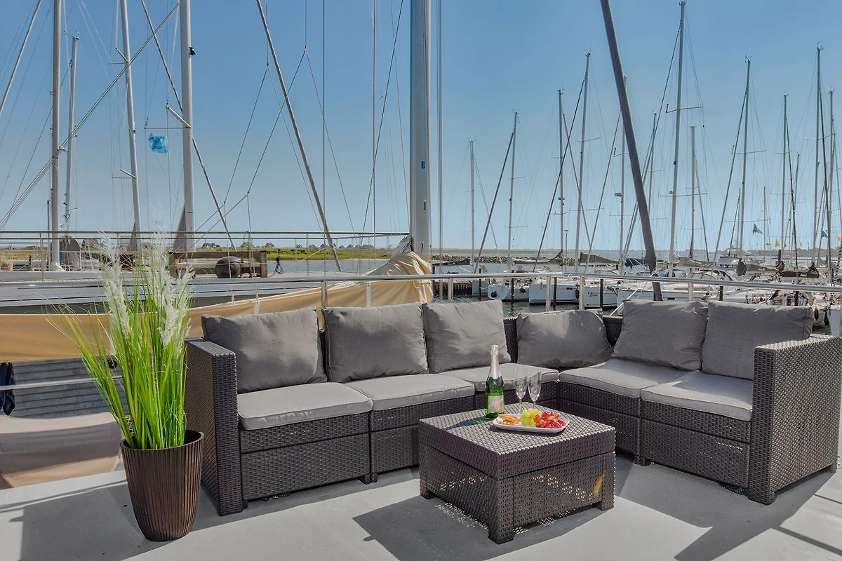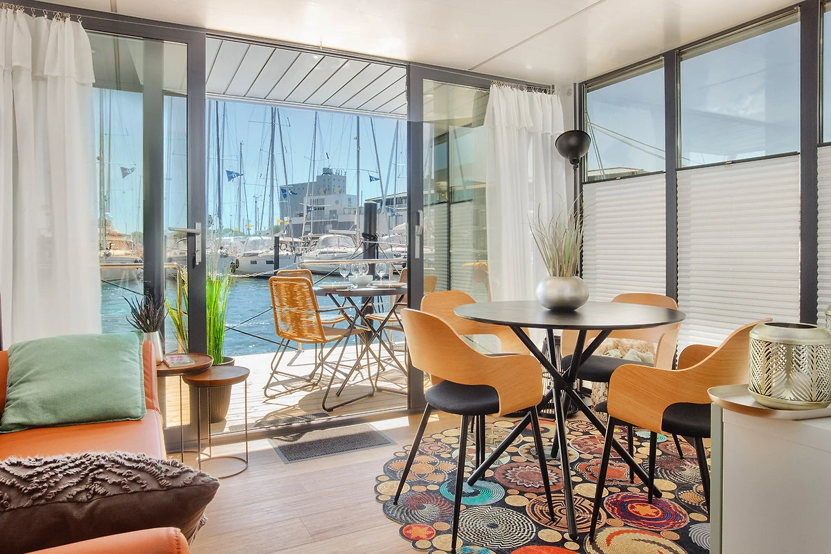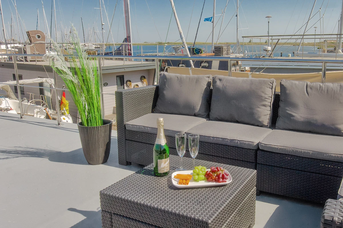 Das Hausboot Kleine Auszeit...Urlaub direkt im Jachthafen Heiligenhafen und Blick aufs oder ins Wasser!