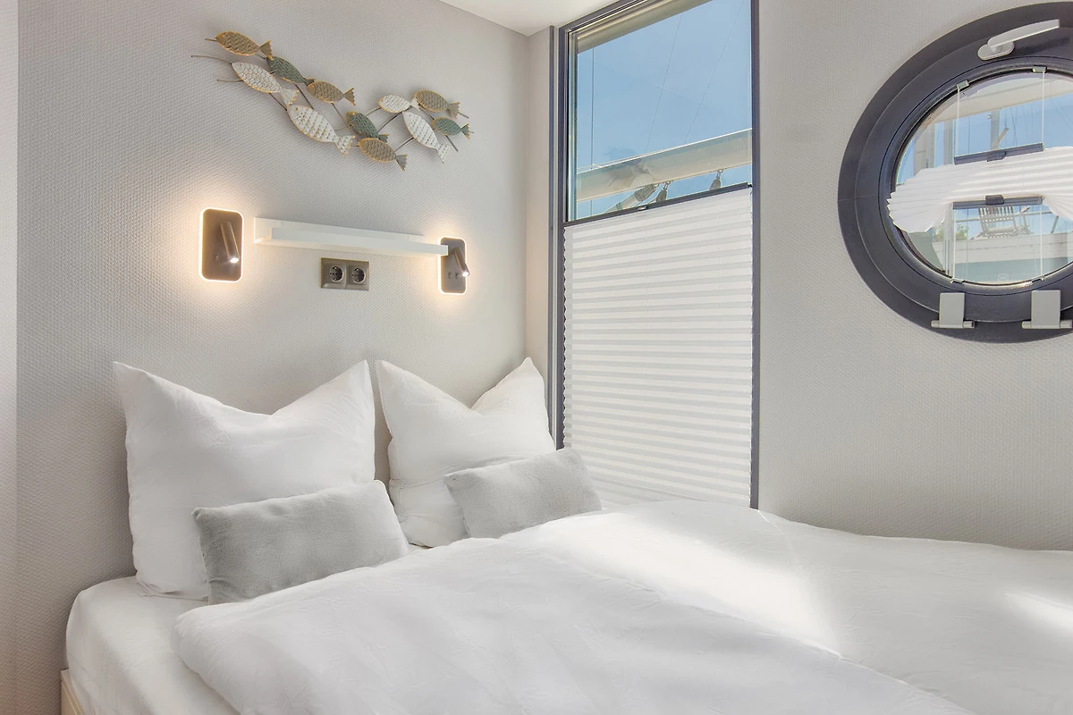 Zwei Schlafräume je mit Doppelbett (140x200) stehen zur Erholung zur Verfügung. Die separate Sauna an Board und das Duschbad sowie ein separates, elektrisches WC bieten entsprechende Annehmlichkeiten an Bord. Zudem sind die sanitären Einrichtungen am Jachthafen nur wenige Meter entfernt nutzbar.