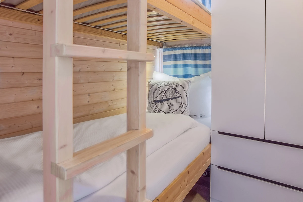 Bis zu 4 Personen (2 Erw + 2 Ki) finden hier auf dem Hausboot Platz für die schönste Zeit des Jahres. Der Wohnbereich mit passender Ausstattung mit Sat-TV, WLAN, Internet-Radio und Literatur, lässt auch in Punkto Unterhaltung keine Wünsche offen und bietet hier jede Menge Komfort. Ein Bodenfenster im Wohnbereich lässt auch den Blick unter Wasser zu...auch nachts mit Beleuchtung. Zwei Schlafräume mit Doppelbett (160x190) und Etagenbett (80x190 nur für Kinder) stehen zur Erholung zur Verfügung. Das Duschbad mit elektrischer Dusche und WC bietet entsprechende Annehmlichkeiten an Bord.