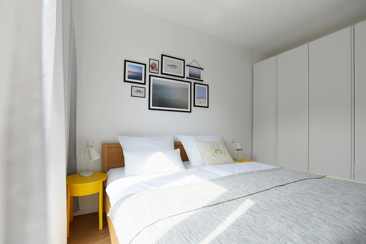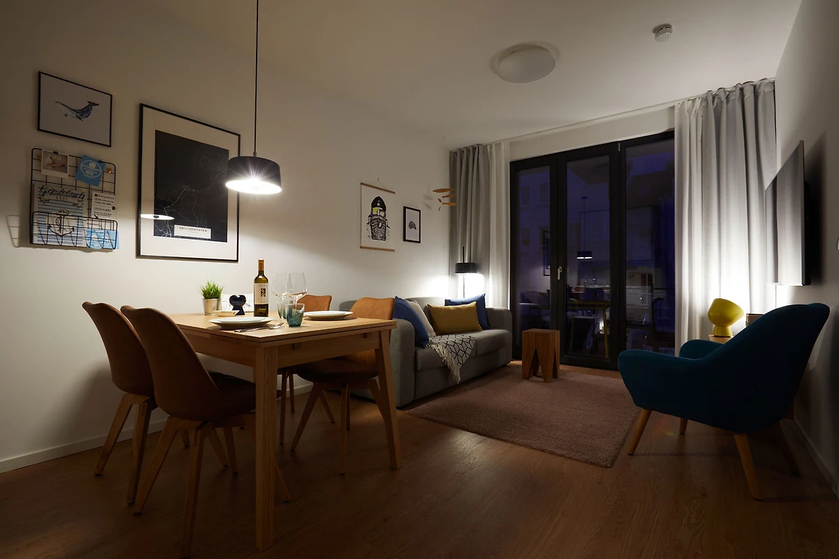 Die neue Ferienwohnung Heiligenhafenkoje bietet auf ca. 41 m² Wohnfläche im 1. Obergeschoss des Torhauses ausreichend Platz für bis zu 2 (+2) Personen und ist ideal für Paare, kleine Familien oder auch Gäste mit Hund – denn Ihr vierbeiniger Freund ist hier herzlich willkommen! Die Einrichtung kombiniert modernes Design mit dem traditionellen Ostsee-Ferienwohnungsflair und schafft eine behagliche Atmosphäre zum Wohlfühlen.