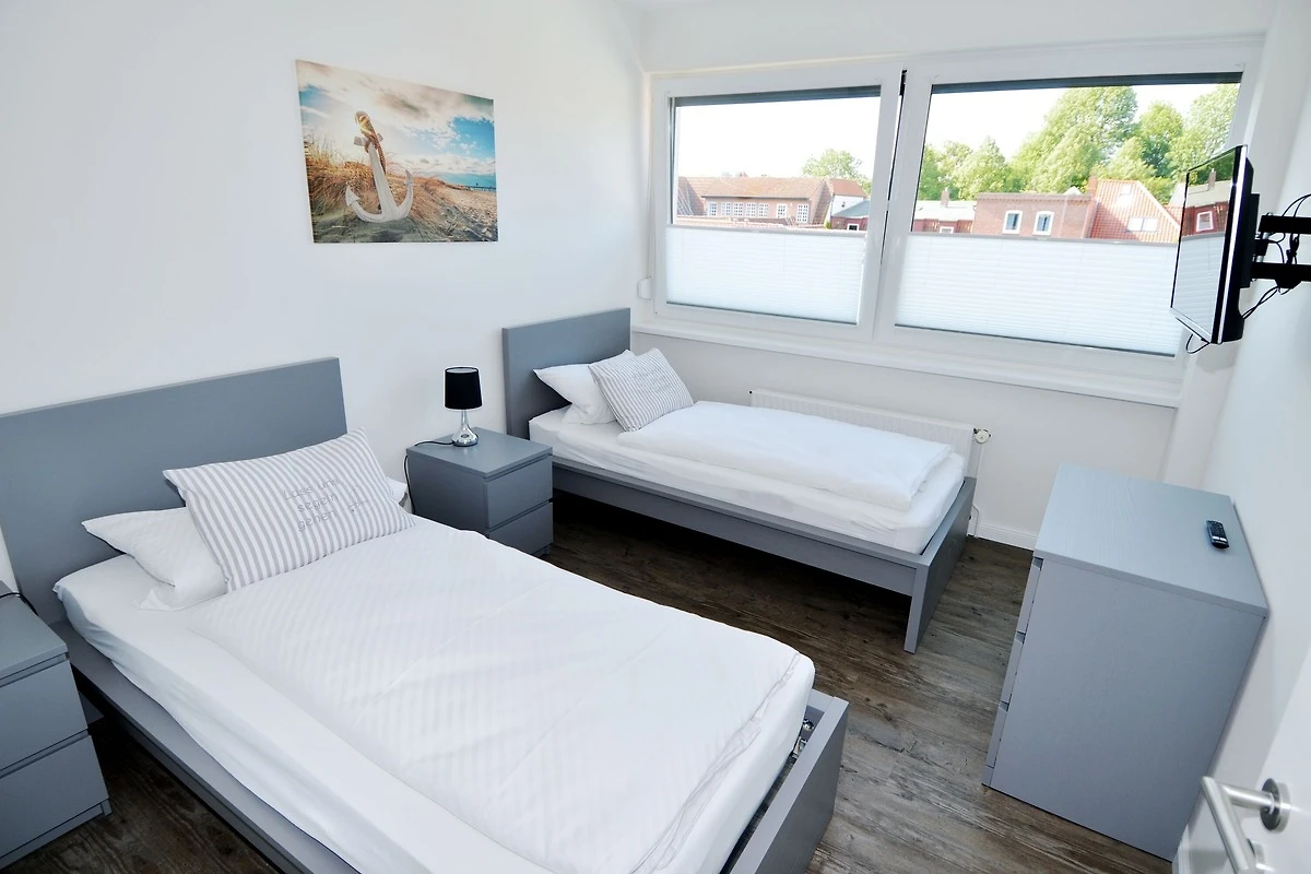 2 separate Schlafzimmer, einen grosszügiges Wohn- und Esszimmer und ein Bad mit Dusche. Von den Schlafzimmern blicken sie in Richtung Kirche, vom Wohnzimmer über den Hafenvorplatz zum Yachthafen.