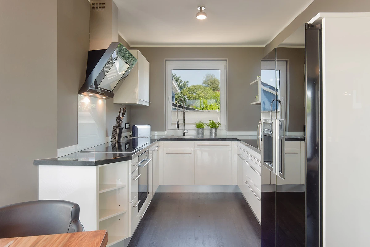 Die offene Küche grenzt an den Wohnbereich. Modern und durchdacht gestaltet, bietet Ihnen die Einbauküche alle Annehmlichkeiten für eine sorgenfreie Selbstversorgung oder zur kulinarischen Entfaltung.