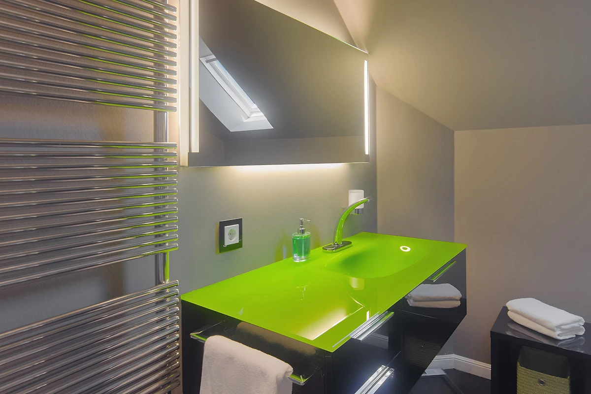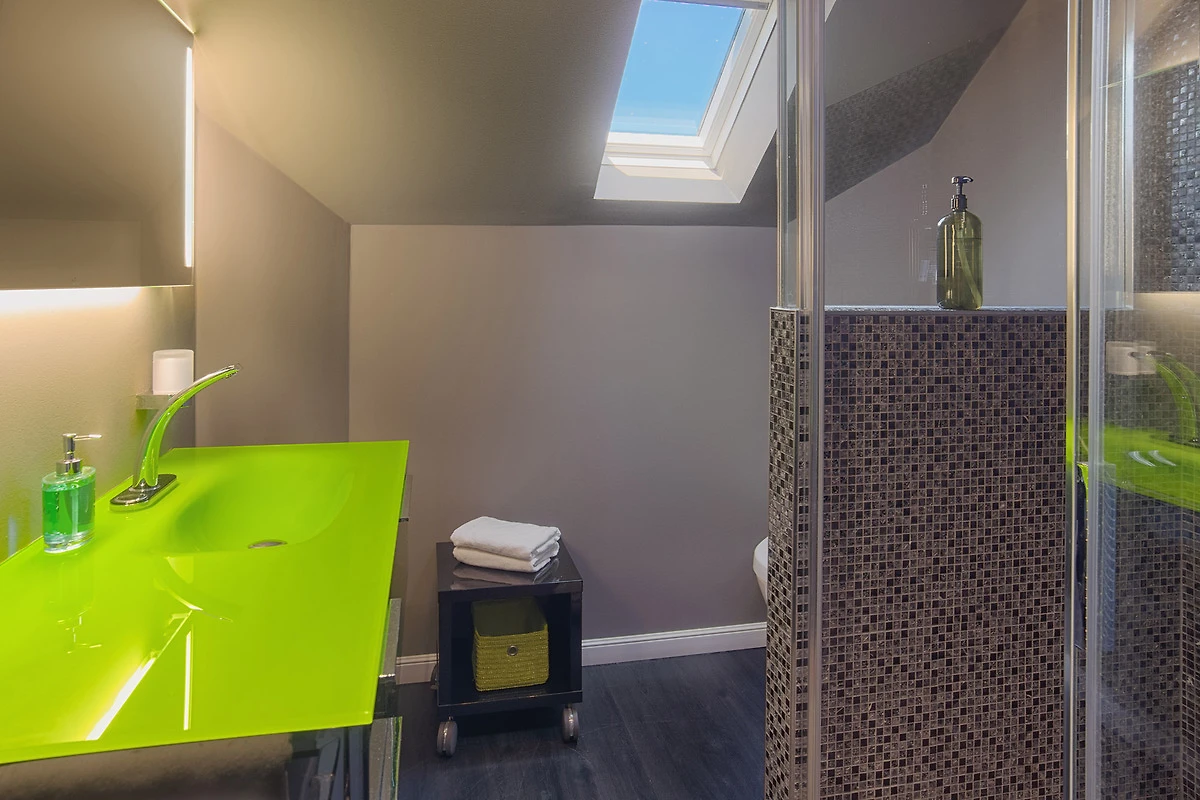 Um sich die Frische vom Tag wiederzuholen, nutzen Sie einfach das moderne Badezimmer mit Dusche. Ob ebenerdige Dusche, WC, Waschbecken, Spiegel und Handtuchwärmer, alles rundet hier das Badezimmer ab. Zusätzlich gibt Ihnen ein separates WC im Erdgeschoss Flexibilität. Ein Kombigerät aus Waschmaschine mit Trockner sorgt für Komfort.
