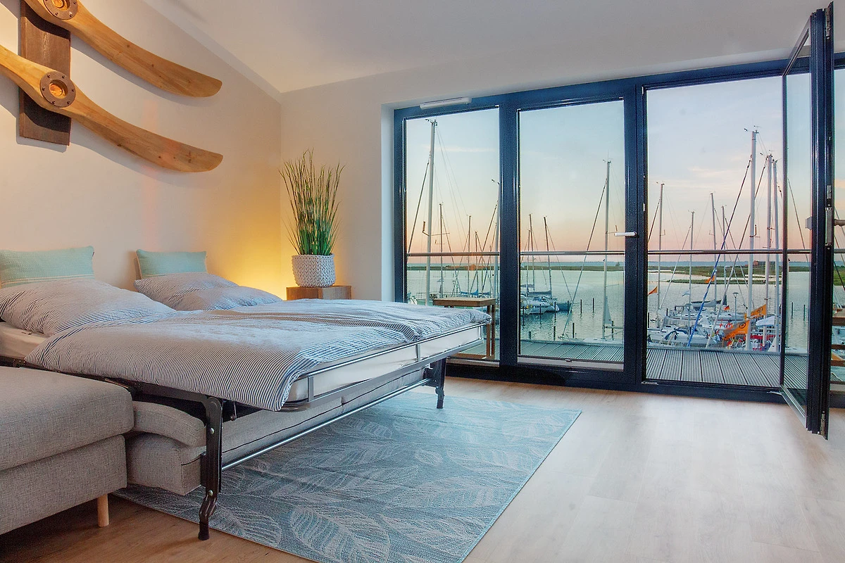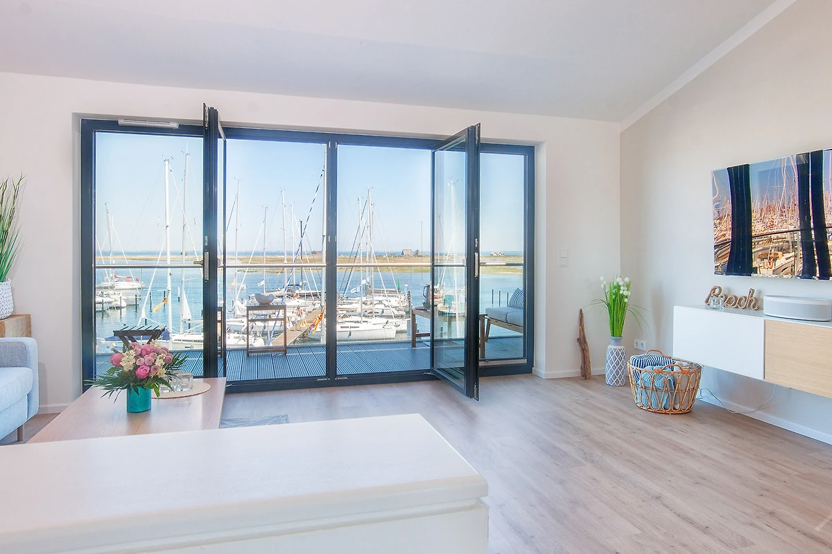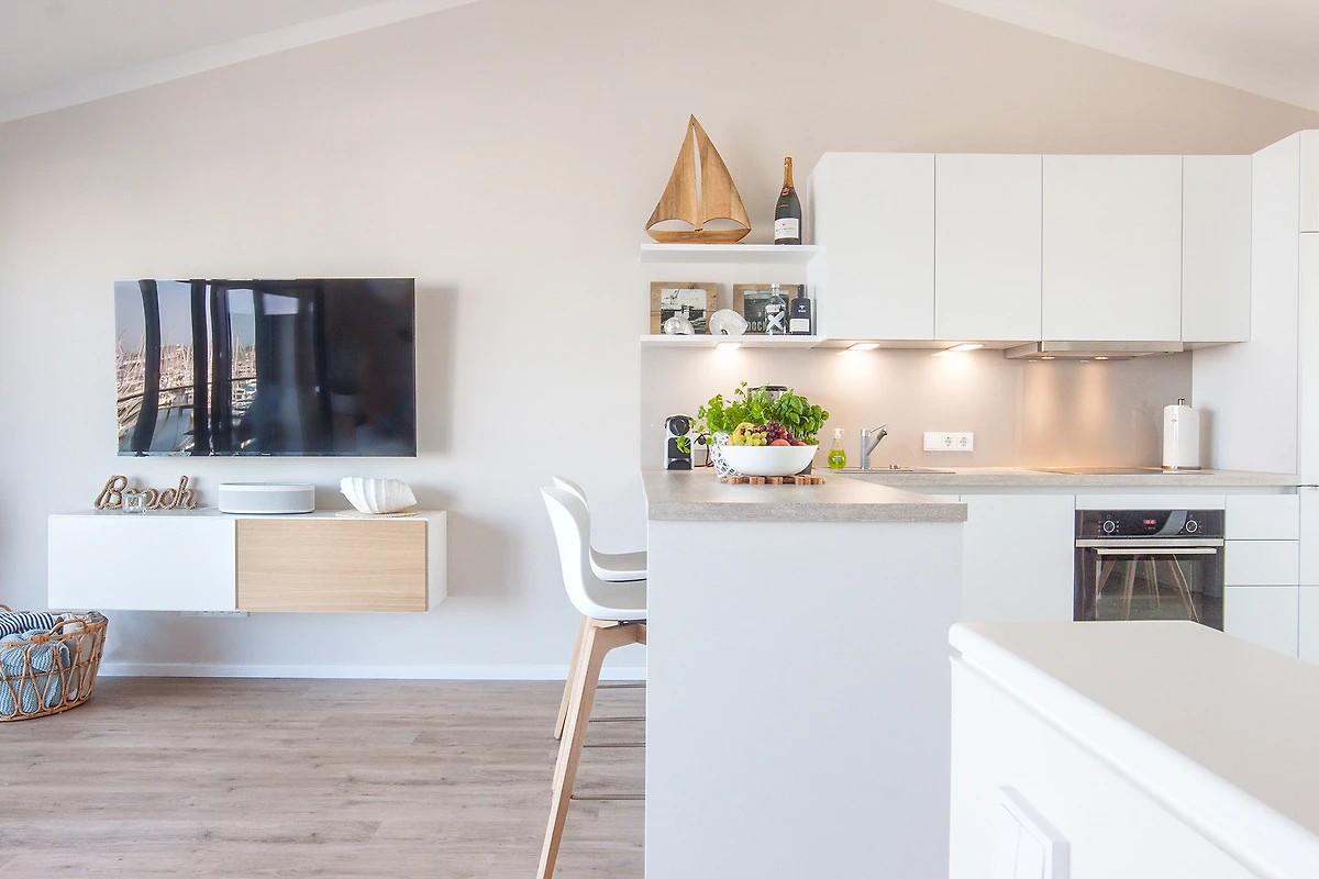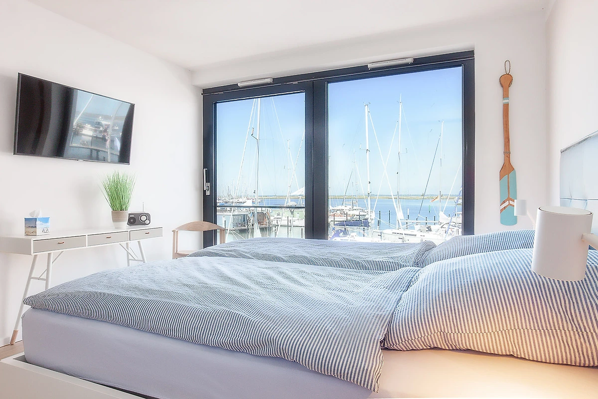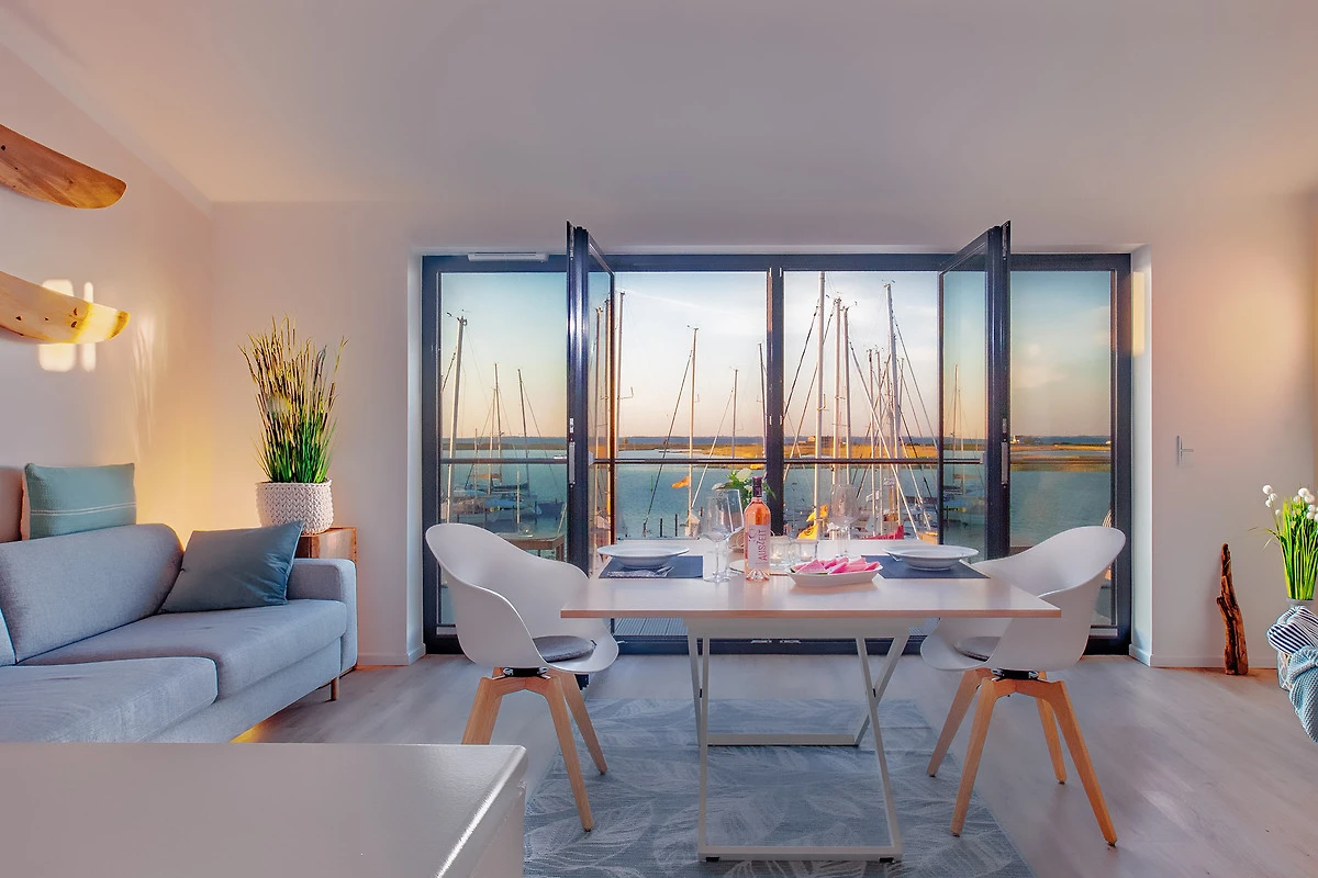 Geniessen Sie das maritime Flair Heiligenhafens in der exklusiven Maisonette-Ferienwohnung „Yachtenkieker“, die sich über zwei Ebenen und rund 92 m² erstreckt. Verbunden durch eine stilvolle Innentreppe, bietet dieses moderne Domizil im 1. Obergeschoss und Dachgeschoss einen atemberaubenden Panoramablick auf den Jachthafen und die Ostsee. Hier beobachten Sie Yachten, die sanft im Wasser schaukeln, und lassen den Alltag hinter sich – näher am Wasser kann man nicht Urlaub machen!