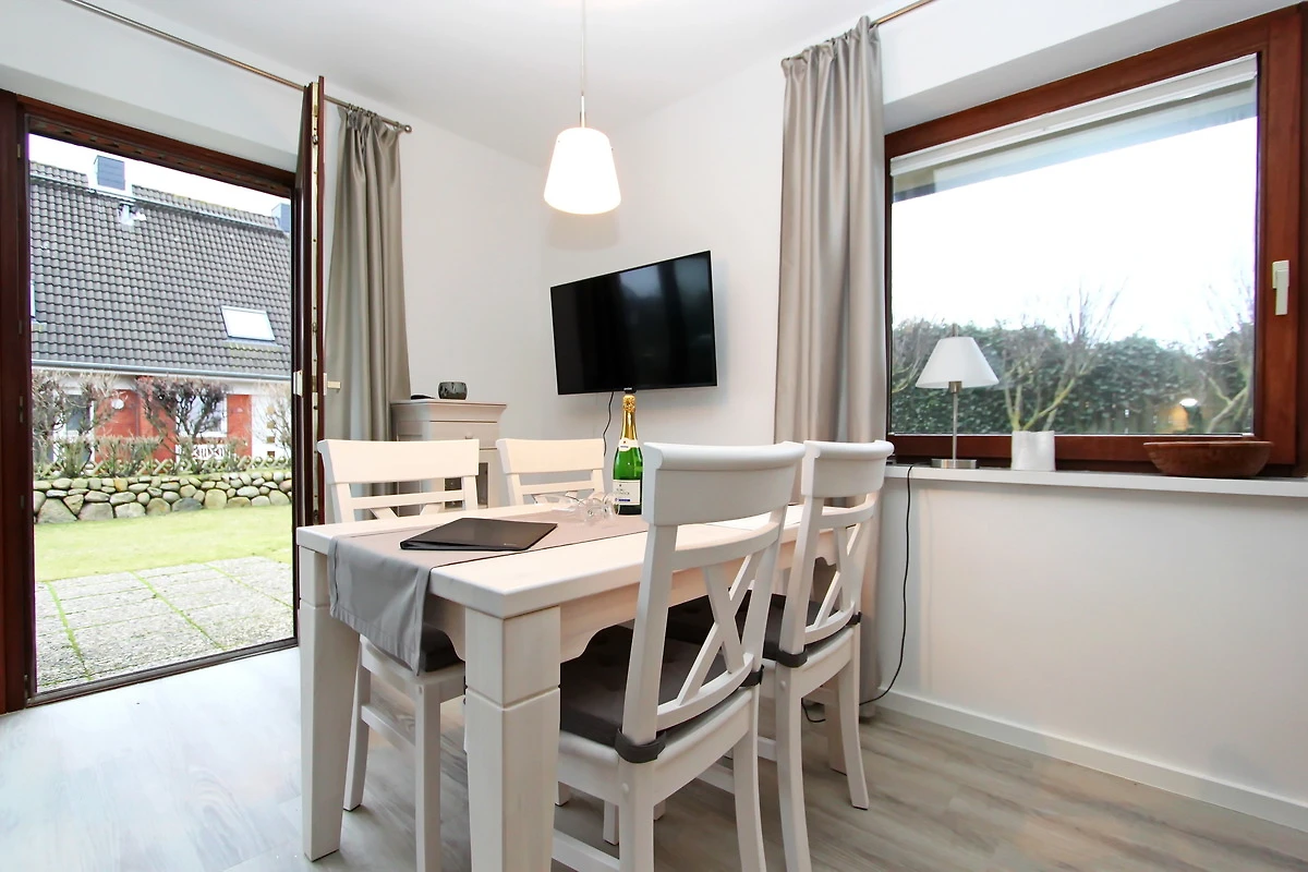 gepflegtes 2 Zi.-App. in ruhiger, zentraler Lage in Wenningstedt. Das Objekt befindet sich auf einer Ebene im EG, ist ca. 45 m² gross und bietet Platz für bis zu 2 Personen. Ein Wohn-/Schlafraum mit zwei 2 Sitzer-Couchen (als Bett umklappbar), Tisch, 1 Korbstuhl, kleiner Vitrinenschrank, Sat-Flat-TV, kl. Kompaktanlage mit CD-Player, offene Küche mit Ceranherd, Mikrowelle, Kühlschrank mit Gefrierfach und einen Essplatz für 4 Personen. Vom Wohnzimmer haben Sie direkten Zugang zur Westterrasse. Flur mit Garderobe. Schlafzimmer mit Doppelbett, Nachtschränke sowie ein grosser Kleiderschrank, der ausreichend Stauraum bietet. Duschbad/WC. Zum Appartement gehört der Stellplatz 3.