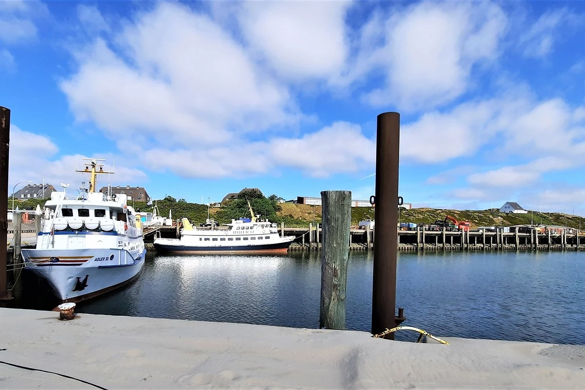 Das Haus liegt auf einer Düne am Ende einer Sackgasse direkt über dem Hafen, eine lange Treppe führt hinunter zum Hafen und den Ausflugsschiffen. Vom Essplatz aus hat man einen fantastischen Blick auf das Meer, auf die Nachbarinseln Amrum und Föhr sowie auf die Südspitze mit Leuchtturm. Bei klarer Sicht kann man sogar die Halligen Langeness und Hooge sehen.