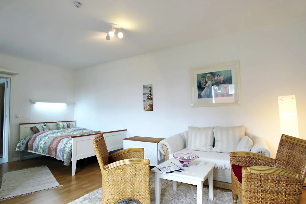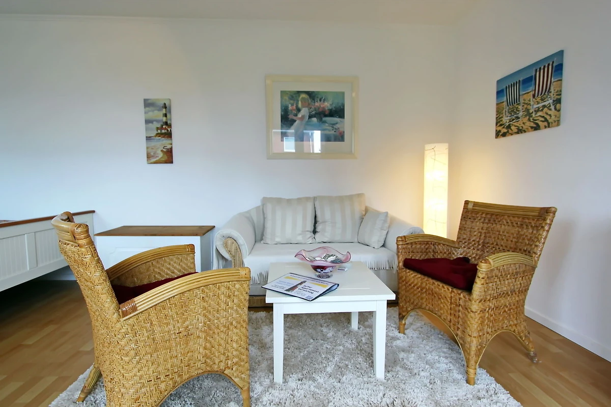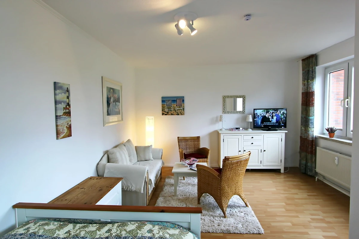 gepflegtes 1 Zimmer Appartement mit ca. 31m² unweit des Hörnumer Golfplatzes; ein Wohn-Schlafraum mit Doppelbett, zwei Korbsessel, Zweisitzercouch, Tisch, Truhe, Sideboard, Sat-TV, Radiowecker, Zugang zum Westbalkon mit Bestuhlung; kleine separate Küche mit Zweiplattencerankochfeld,[nbsp][nbsp]Mikrowelle- und Backofenkombination sowie einem Kühlschrank mit kleinem Gefrierfach; Esstisch für 2 Personen; Flur mit Kleiderschrank und Abstellkammer; DuschbadWC.