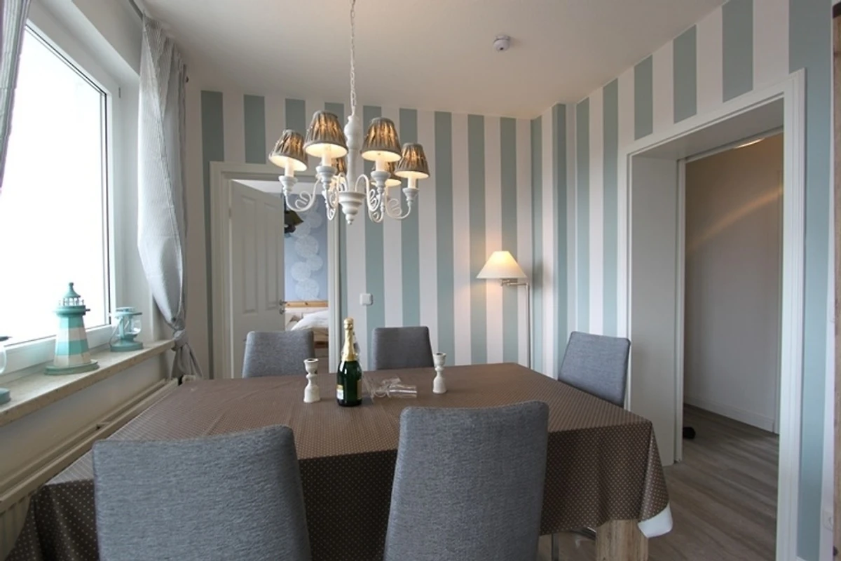 Das gemütliche 3-Zimmer-Appartement (68 m²) liegt in einer ruhigen Tempo-30-Zone nur 300 Meter vom Meer entfernt. Die helle und hochwertig ausgestattete Nichtraucher-Wohnung befindet sich im Erdgeschoss (Hochparterre) eines kleinen Mehrfamilienhauses. Die „Strandeule“ bietet bis zu 6 Personen Platz. Die aparte Ferienwohnung wurde erst im Frühjahr 2015 kernsaniert und vom Mobiliar bis zum Inventar erneuert, sowie mit modernen Design-Bodenbelag komplett neu ausgestattet.