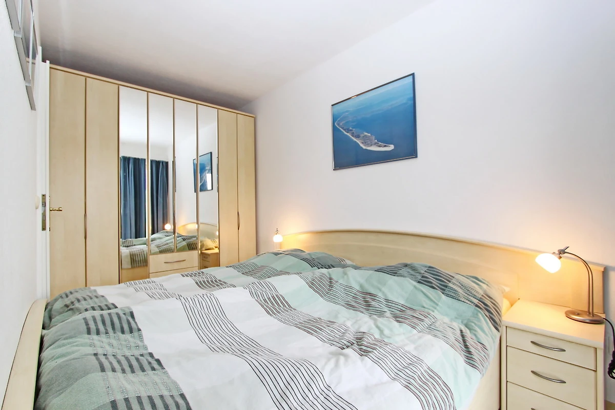 gepflegtes 2 Zi.-App. mit ca. 41 m² im Herzen von Hörnum. Die Nichtraucher Wohnung befindet sich im Hochparterre, in einem Mehrfamilienhaus, und bietet Platz für bis zu 4 Personen (max. 3 Erwachsene). Sie ist aufgeteilt auf ein Wohn-/Schlafraum mit einer gemütlichen Schlafcouch (1,30m x 1,95m), Tisch, zwei Korbsessel, Vitrinen Schrank, Sat-TV und ein DVD-Player. Von Wohnzimmer gelangen zum kleinen Schlafzimmer mit einem Doppelbett (zwei Matratzen), einem grossen Kleiderschrank, der ausreichend Stauraum bietet, sowie den Zugang zum Südbalkon mit Balkonmöbel.