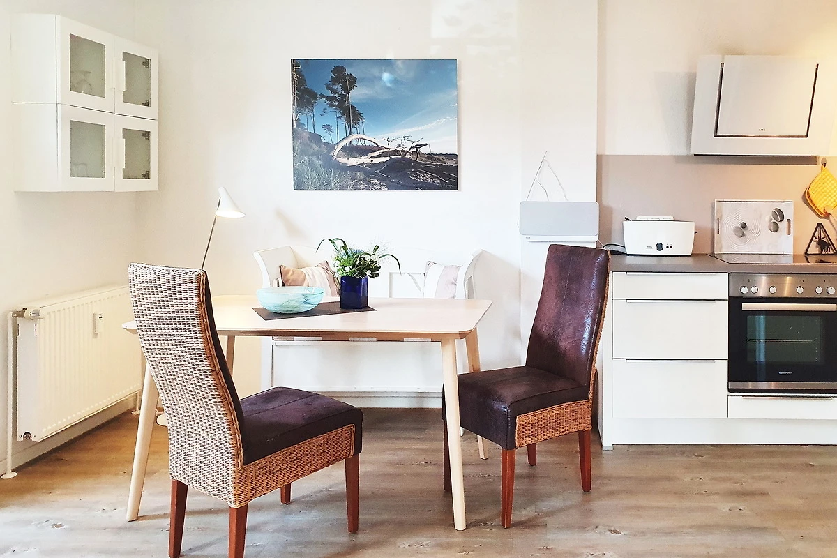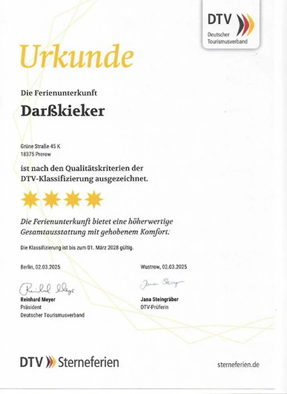 Die komfortable im Erdgeschoss liegende Nichtraucher-Ferienwohnung Darsskieker befindet sich in der grosszügig gestalteten ruhigen Ferienanlage Kormoran im Ostseebad Prerow auf der schönen Halbinsel „Fischland-Darss-Zingst“.[nbsp] Um allen Gästen einen sehr angenehmen, komfortablen Wohlfühlurlaub zu bieten, wurde die Wohnung im November 2015 nach den Kriterien des Deutschen Tourismusverbandes renoviert, konzipiert und im skandinavisch-maritimen Stil ausgestattet. Vom DTV ist die Ferienwohnung mit 4 Sternen zertifiziert worden.