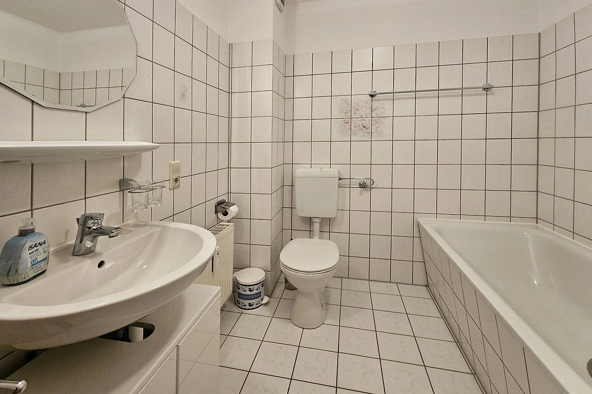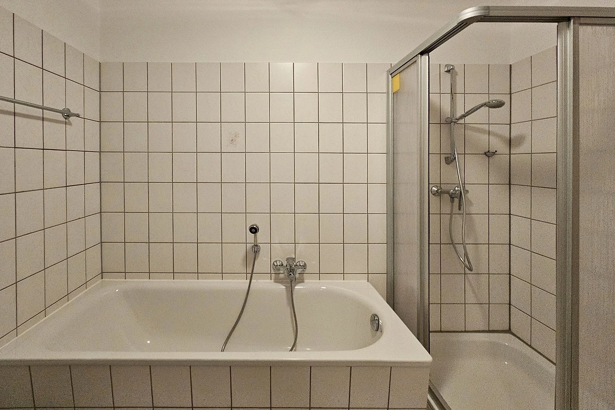 Das eigene Bad ist mit Dusche und WC ausgestattet. Im gesamten Bereich sind Dachschrägen vorhanden. Zwischen Wohn- und Schlafbereich sind keine Türen.