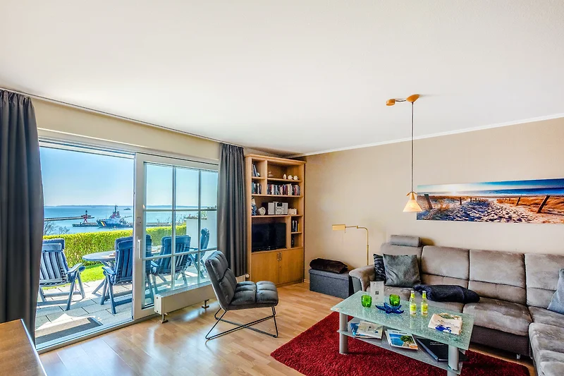 In ruhiger Lage am Ende einer Seitenstrasse befindet sich die Ferienwohnung 1 im Ferienhaus Trelleborg, weniger als 10 Gehminuten von der nächsten Einkaufsmöglichkeit entfernt. Sie haben von der Terrasse einen traumhaften Meerblick auf den Sassnitzer Hafen.