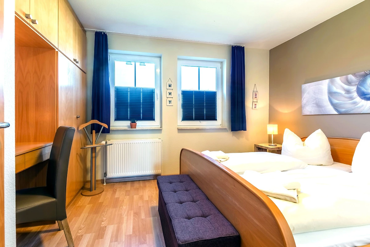 Im Schlafzimmer bietet Ihnen ein Doppelbett ausreichend Platz für einen erholsamen Schlaf. Ihre Urlaubskleidung können Sie im geräumigen Kleiderschrank unterbringen.
