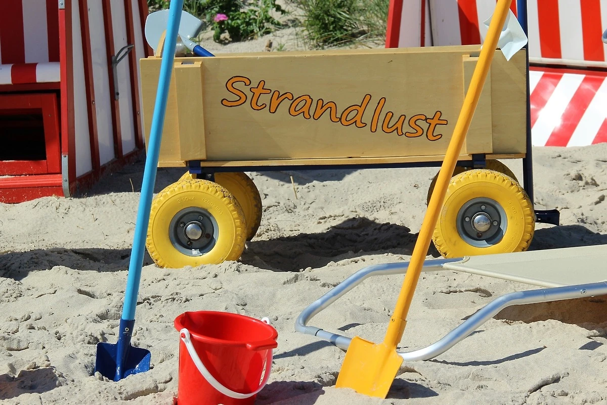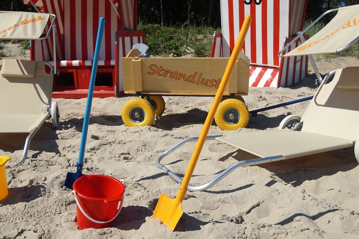 Ein abschliessbarer Fahrradschuppen, sowie Bollerwagen und Strandutensilien sind vorhanden.