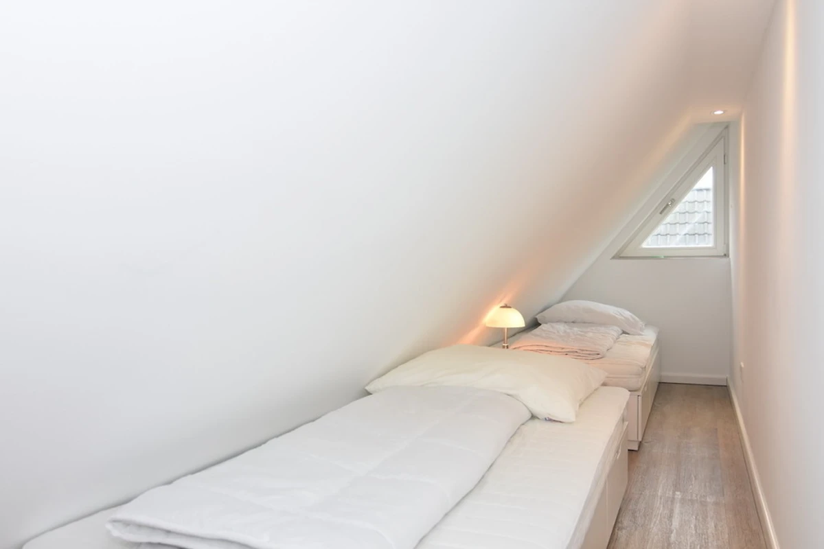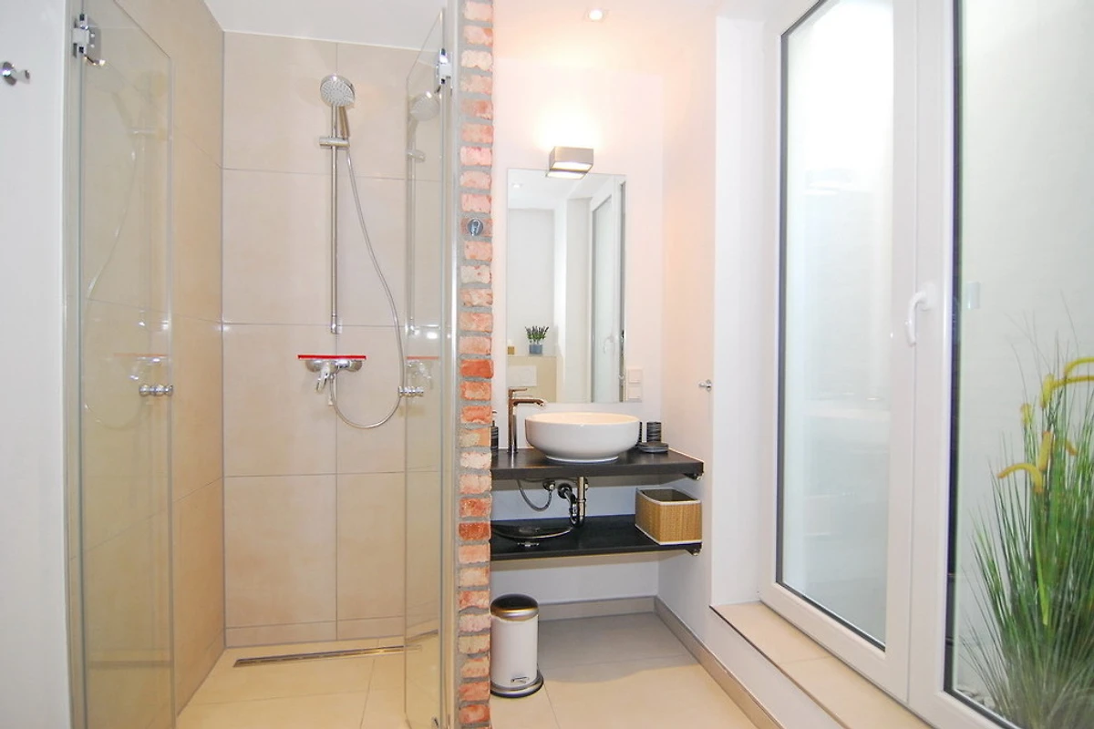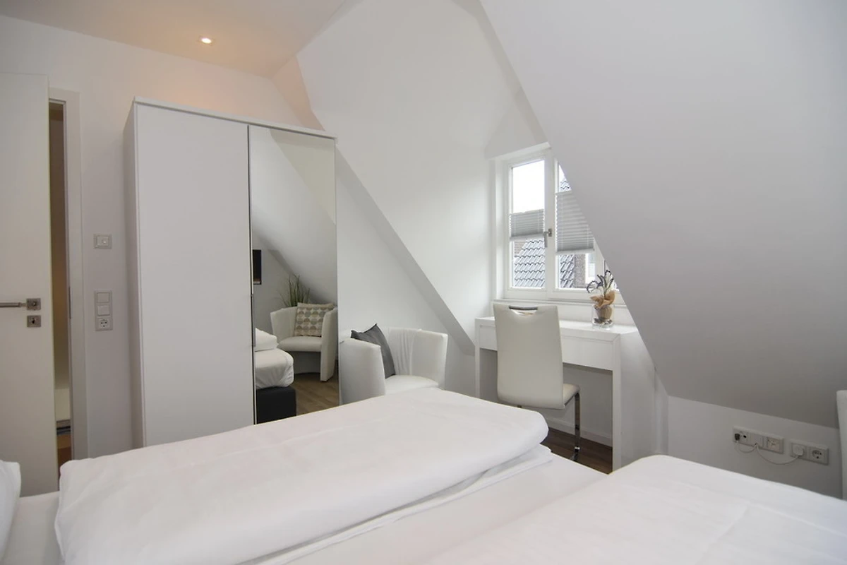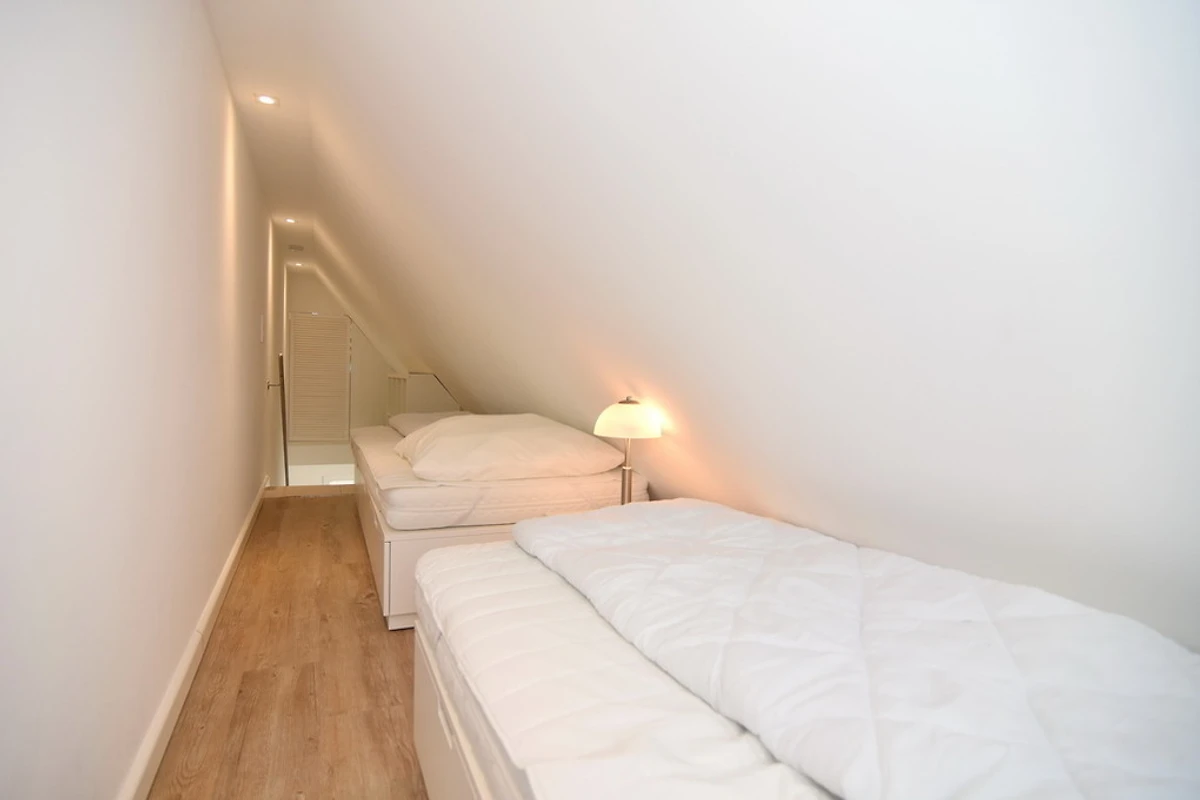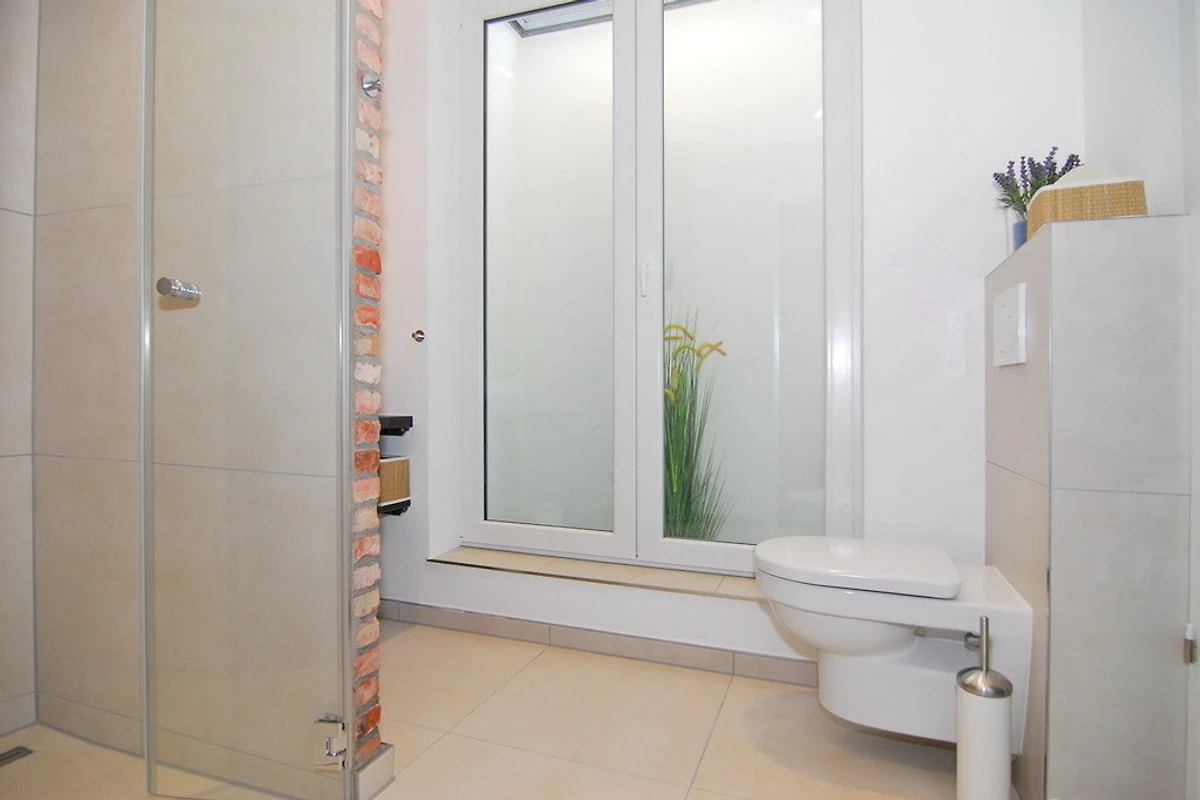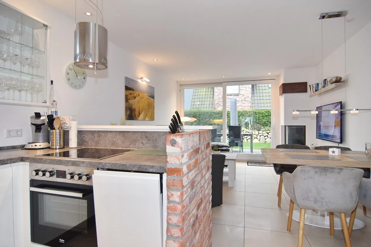 Exklusive Haushälfte für max. 6 Personen, ca. 133m². EG: Wohnraum mit Sitz- und Essbereich (Esstisch für 4 Personen, 2 Sitzplätze am Küchentresen), offene Einbauküche mit Backofen / Mikrowelle und Geschirrspüler, möblierte Südterrasse mit Markise, Flat-TV, Gaskamin/Ofen, Gäste-WC, Flurbereich mit Garderobe. OG: 1 Schlafzimmer mit Doppelbett und Flat-TV, WLAN (ohne Gewähr), 1 Dusch-/Wannenbad. offenes DG: 1 Schlafzimmer mit 2 Einzelbetten (durch Schräge maximale Stehhöhe 1,80m, kein Schrank). UG: 1 Schlafzimmer mit Doppelbett und Bettwäsche und Handtücher sind zur Anreise aufgezogen.d Flat-TV, Duschbad / WC, Sauna (3 Sitzplätze, Stehhöhe ca. 1,80m). HW-Raum mit Waschmaschine/Trockner, extra Kühl-Gefrierkombi, Kinderreisebett und Hochstuhl vorhanden. Pkw-Stellplatz mit Wallbox am Haus -100% Ökostrom - Wallbox kann kostenfrei genutzt werden. Tierhaltung ist erlaubt, muss bitte angemeldet werden. Bettwäsche und Handtücher sind zur Anreise aufgezogen.