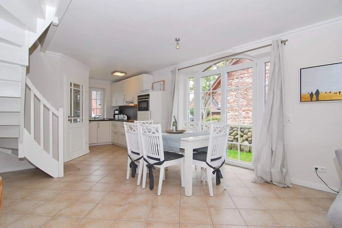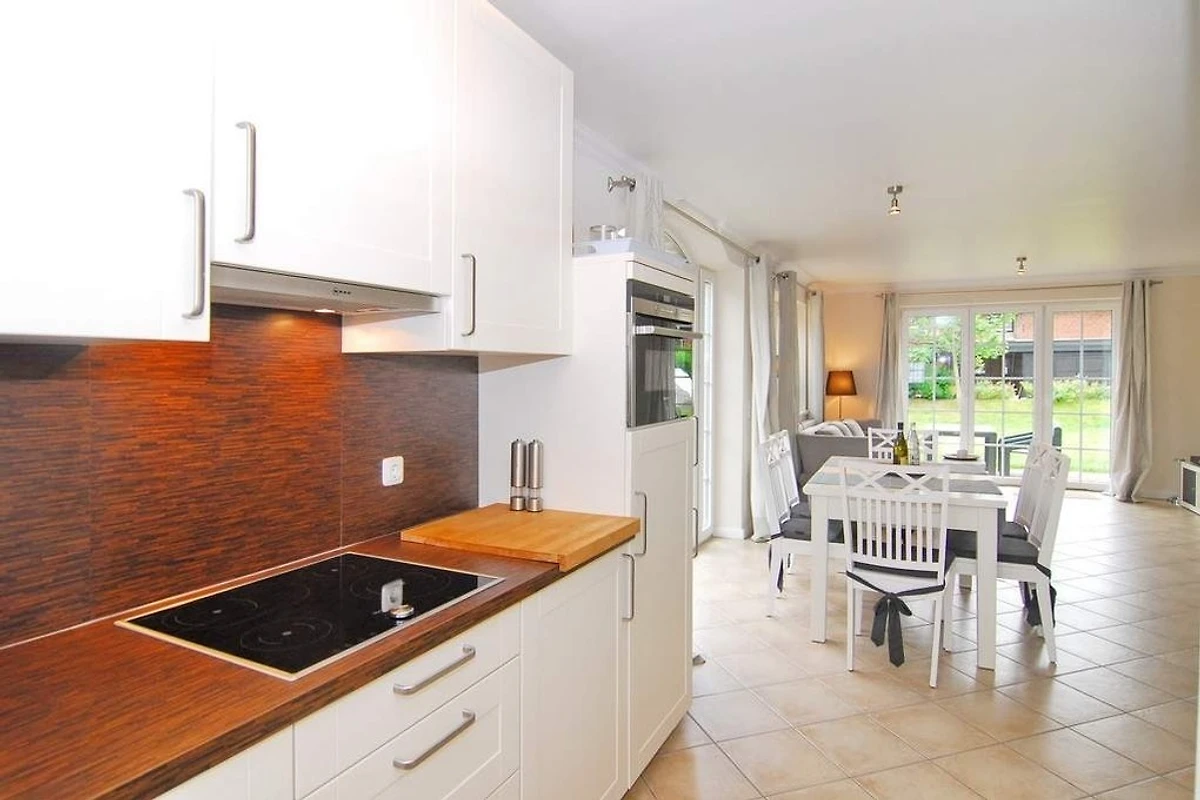 Modernes Endhausteil in Dorflage mit Südterrasse und schönem Garten, "Nichtraucher". Ca. 95 m². EG: Wohn- und Esszimmer mit offener Küche im Landhausstil, Geschirrspüler, Mikrowelle und Backofen sind vorhanden, Couchecke und Essplatz, Flat-TV, Internet, Duschbad/WC. OG: 1 Schlafzimmer mit Doppelbett und TV, 1 Schlafzimmer mit 2 Einzelbetten, Vollbad/WC. PKW-Stellplatz am Haus. Tierhaltung ist nicht gestattet. Bettwäsche und Handtücher sind zur Anreise aufgezogen. 1 Babybett und ein Bettgitter sind vorhanden.