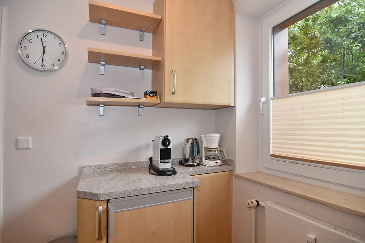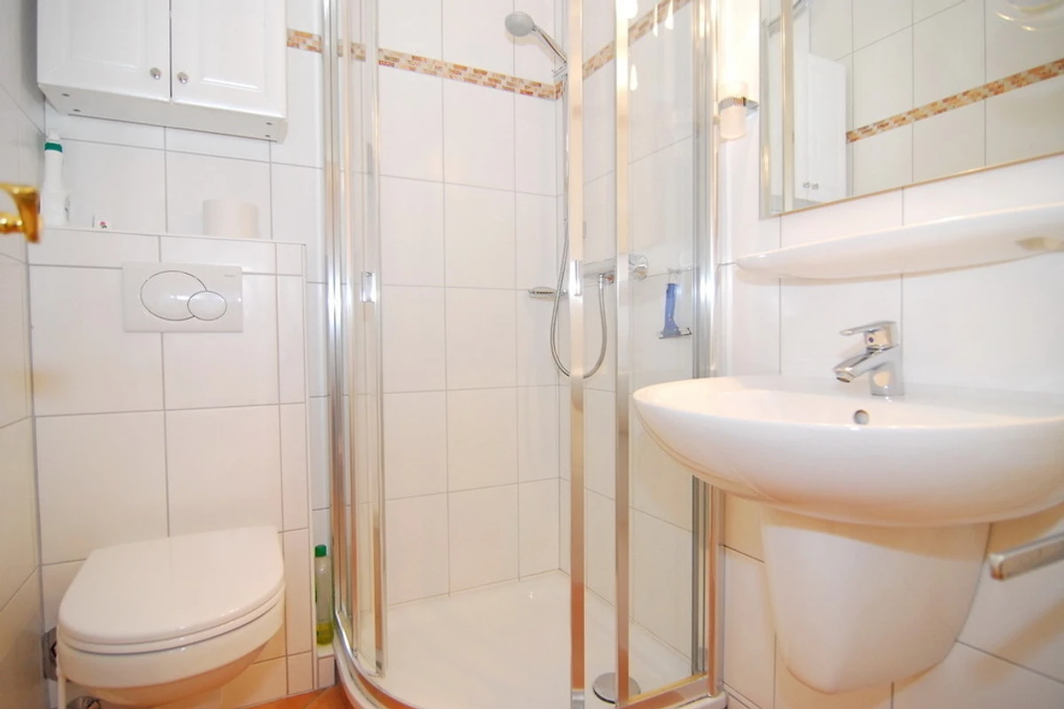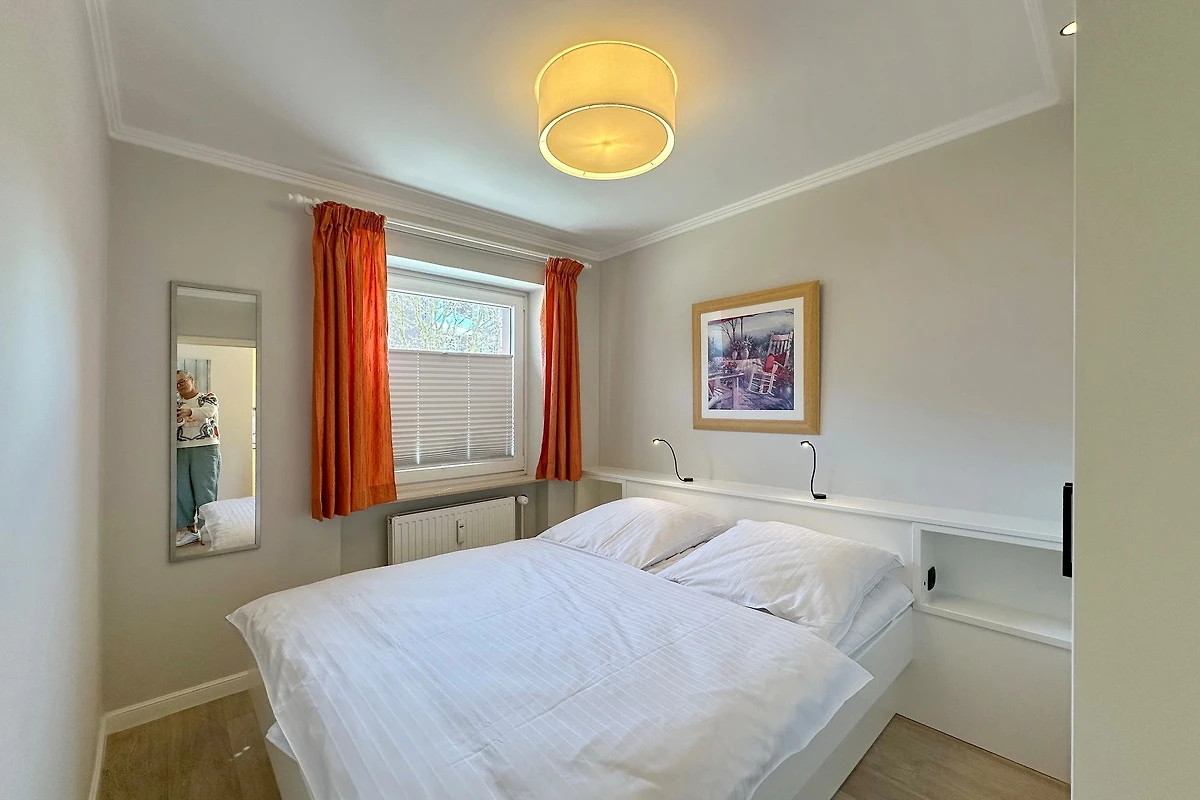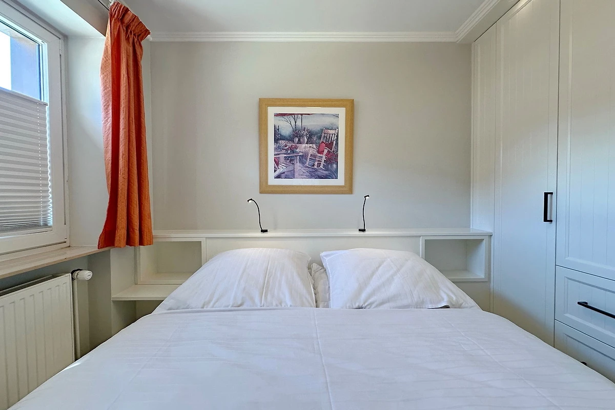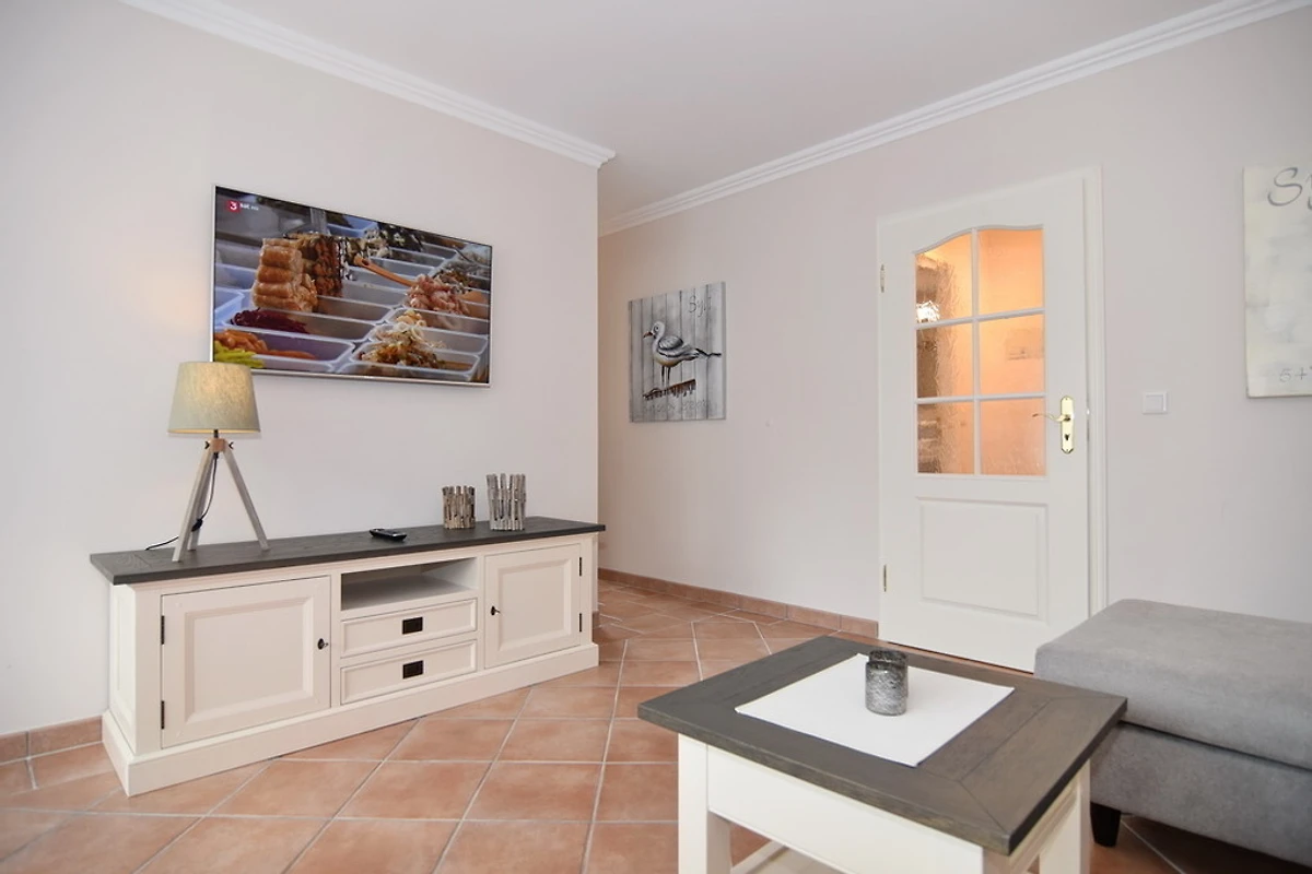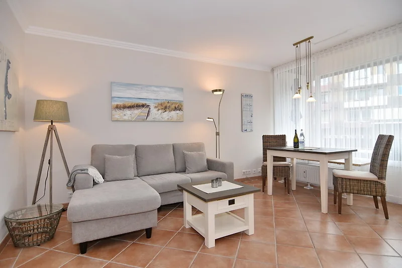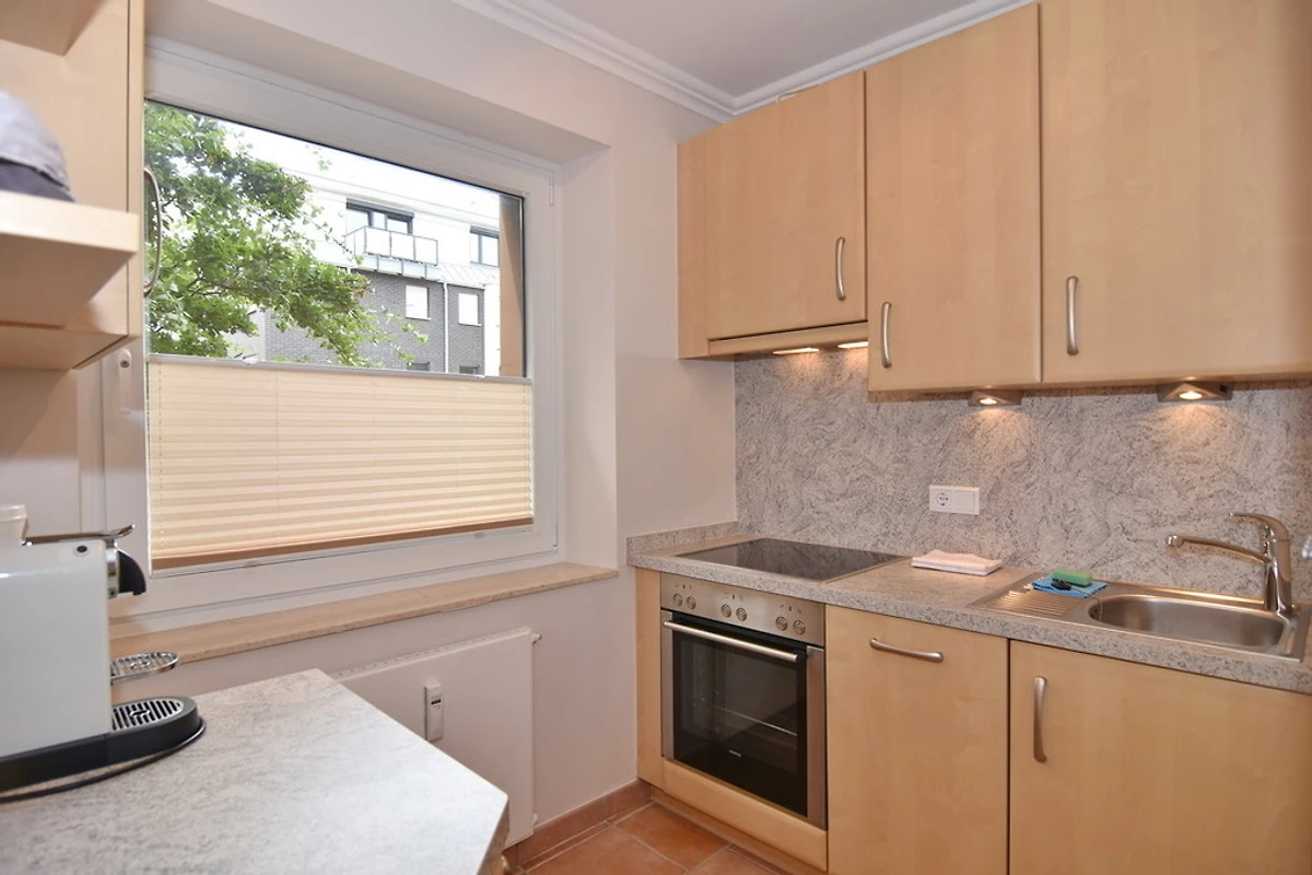 Gepflegte 2-Zimmer-Wohnung im Hochparterre, ca. 47 m², Nichtraucher, ohne Teppichboden. Die Wohnung verfügt über einen kleinen Vorflur mit Garderobe, von der Sie in den Wohnraum und das Duschbad / WC gelangen. Vom Wohnzimmer mit gemütlicher Sitz- und Essecke und 49 Zoll Flat-TV gelangen Sie auf den möblierten Ostbalkon. Hier lassen sich sonnige Morgenstunden herrlich geniessen. Weiterhin gibt es eine separate Küche mit 4-Platten-Ceranherd, Backofen, Nespresso-Maschine und Geschirrspüler sowie ein Schlafzimmer mit Doppelbett und Kleiderschrank. Der Pkw-Stellplatz Nr. 4 steht Ihnen kostenfrei zur Verfügung. Das Haus verfügt im Keller über eine Waschküche mit Münzwachmaschine und-trockner. Fahrradabstellmöglichkeiten gibt es am Haus. Bettwäsche und Handtücher sind zur Anreise aufgezogen. Fahrstuhl hält zwischen den Etagen. Tierhaltung ist nicht gestattet! Auf dem nördlich angrenzenden Nachbargrundstück entsteht ab Mai 2024 ein Neubauvorhaben. Hier kann es zu Lärmbelästigung kommen.