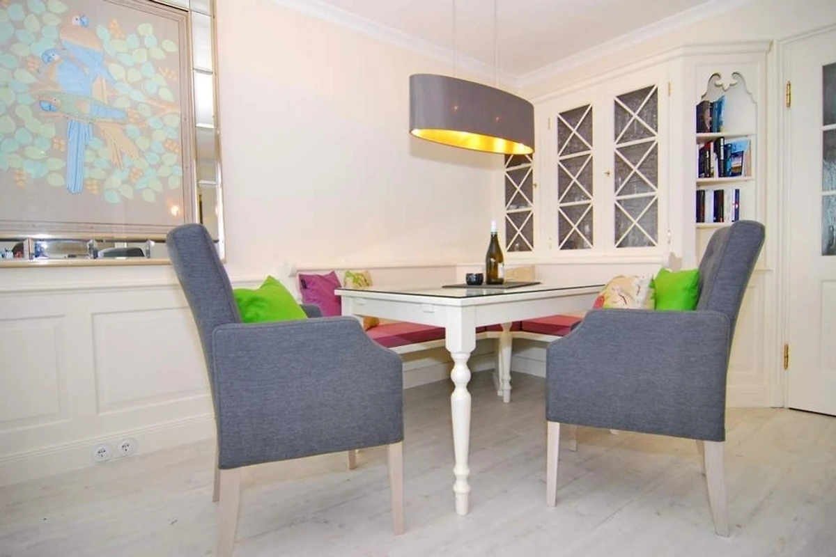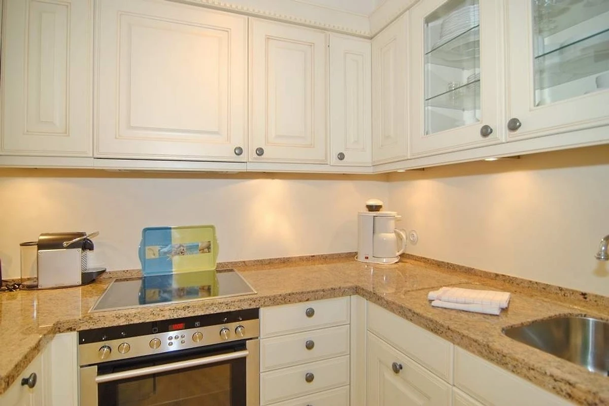 Exklusive 2-Zimmer-Ferienwohnung im 4. OG zur Seeseite; Haus "Metropol". Ca. 68m². Grosses Wohnzimmer mit eingebauter Essecke und Tisch, Couchecke (Dpp.-Schlaf-Couch) mit Sessel, TV und Stereo,[nbsp][nbsp]separates Schlafzimmer mit Doppelbett (2x90x200 ) und kleiner Couch, begehbarer Kleiderschrank, Bad mit Dusche, Waschtisch, Regenduschkopf, separate Küche mit Mikrowelle, Geschirrspüler, Backofen und Ceranfeld, WLAN (ohne Gewähr). 2 grosse Westbalkone mit Seeblick, Rauchen und Tierhaltung verboten. PKW-Stellplatz/Garage kann kostenpflichtig gebucht werden. Bettwäsche und Handtücher sind zur Anreise aufgezogen.
