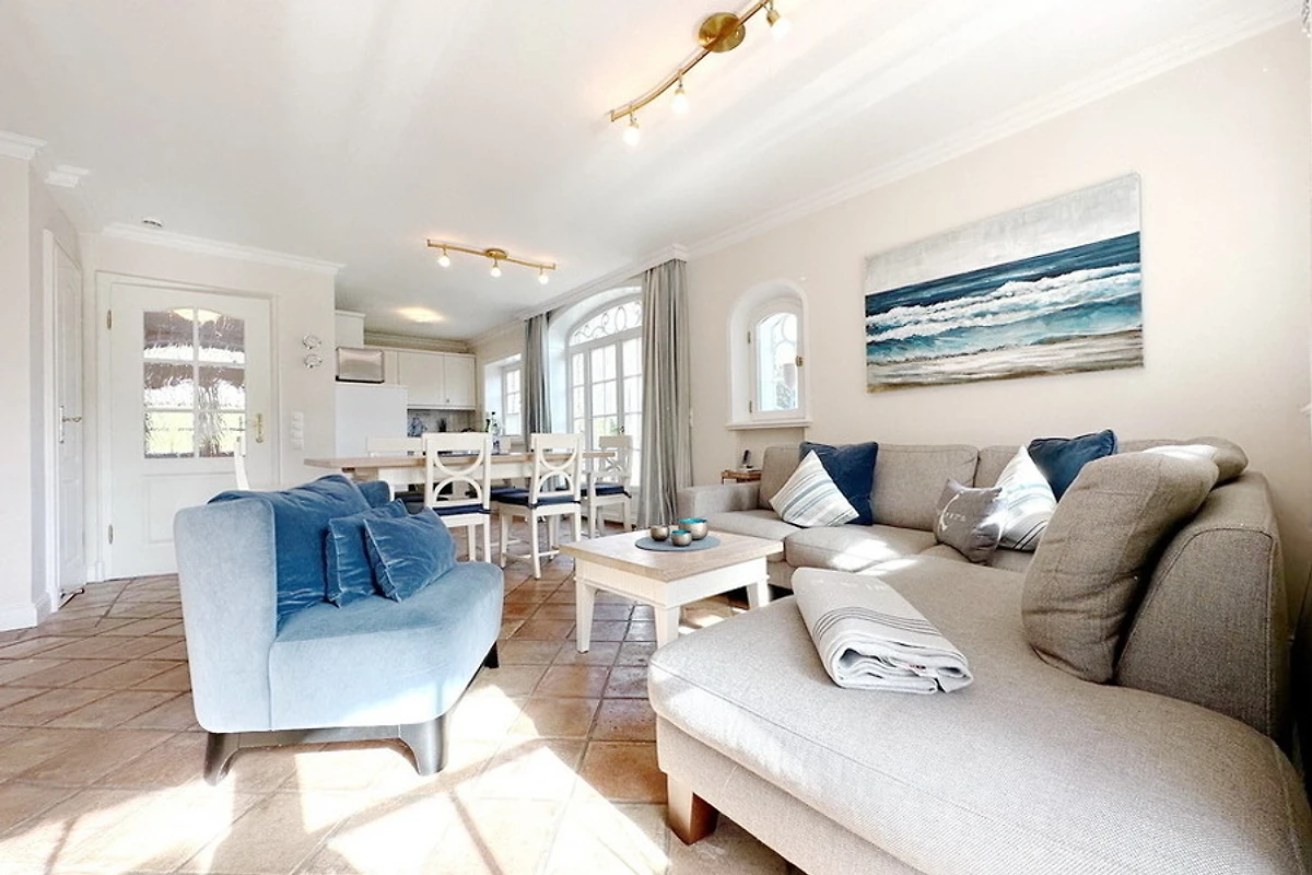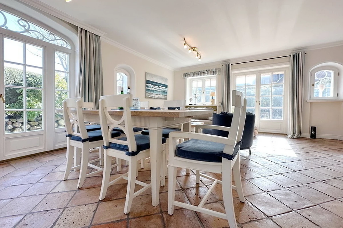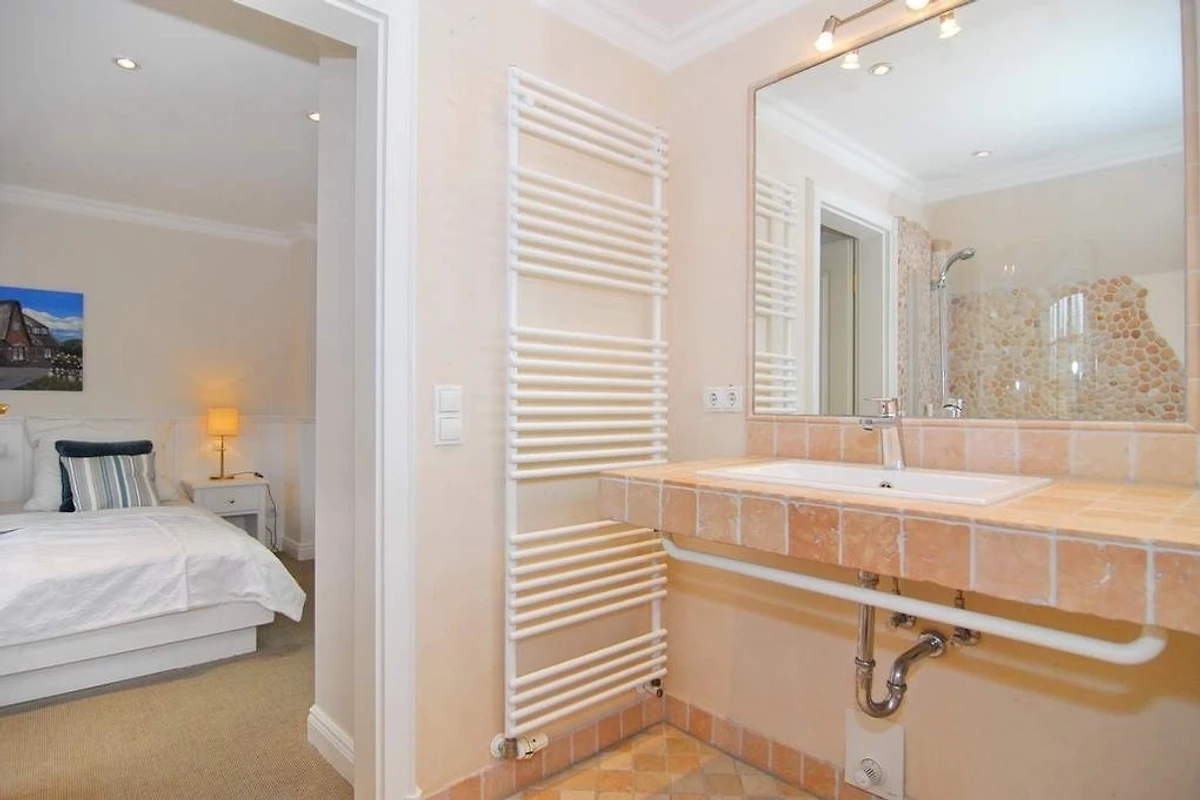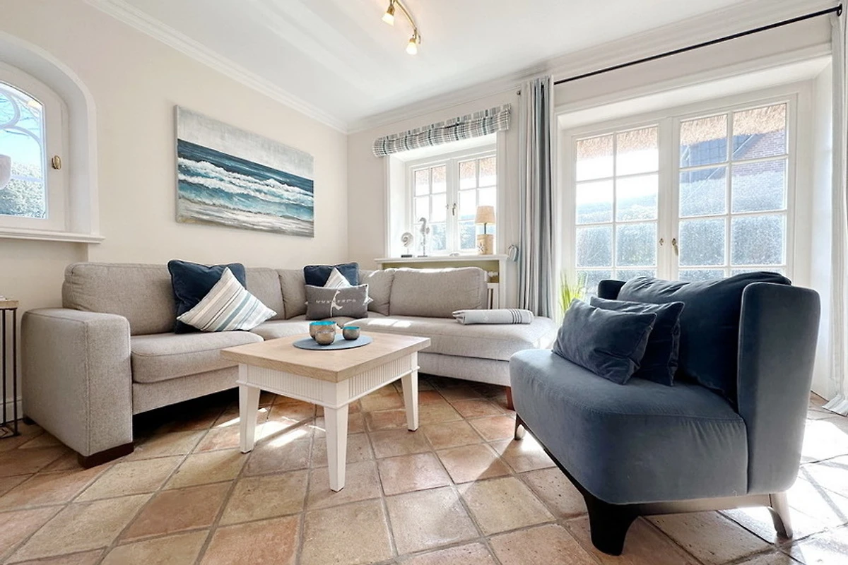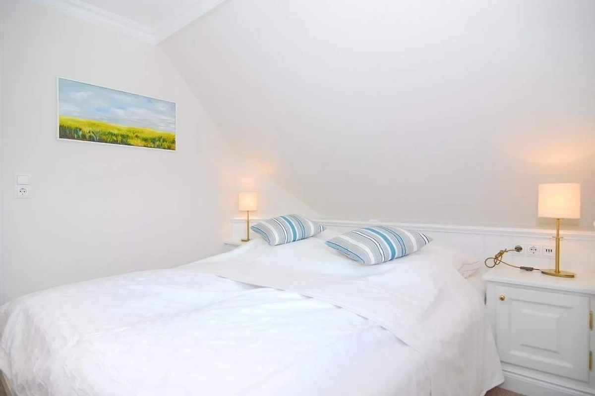 Exklusive Doppelhaushälfte am Ortsrand von Tinnum mit Süd- und Ostterrasse unter Reet. Nichtraucher. EG: Sonniges Wohnzimmer mit Essplatz, Kamin und Couchecke, TV, DVD, Stereoanlage, CD, MP3, Internet (ohne Gewähr), Telefon (Festnetzflatrate), Terrasse mit Gartenmöbeln und Strandkorb, Gäste- WC, offene Küche mit Geschirrspüler, Mikrowelle und Backofen, Fussbodenheizung im EG. OG: 2 Schlafzimmer mit 2 Doppelbetten und TV, je 1 Voll- und Duschbad/WC mit Fussbodenheizung. Waschmaschine und Trockner sind im Haus. PKW-Stellplatz am Haus. Tierhaltung und grillen sind verboten. Bettwäsche und Handtücher sind zur Anreise aufgezogen.