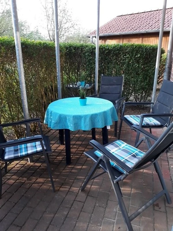 Komfortabel ausgestattete Ferienwohnung im Erdgeschoss mit 1 Schlafraum mit Doppelbett (1,60 x 2,00 m), 2. Schlafzimmer, 1 Einzelbett (0,90 x 2,00 m) mit Ausziehbett und 1 Babyreisebett. Küchenzeile und Wohnraum mit Ausgang zur gemütlichen Terrasse. Die Wohnung ist mit Vinylbelag ausgelegt und daher auch für Allergiker geeignet