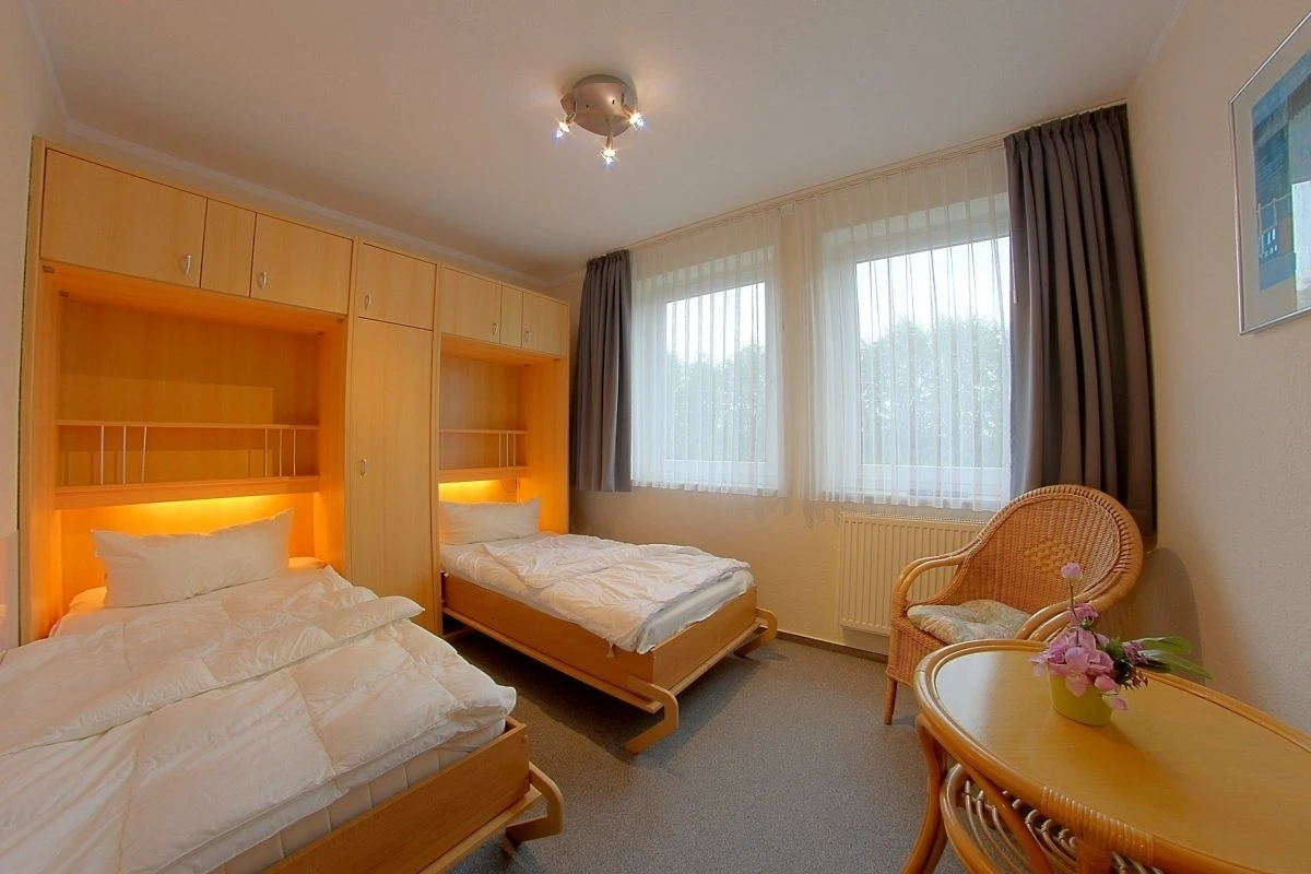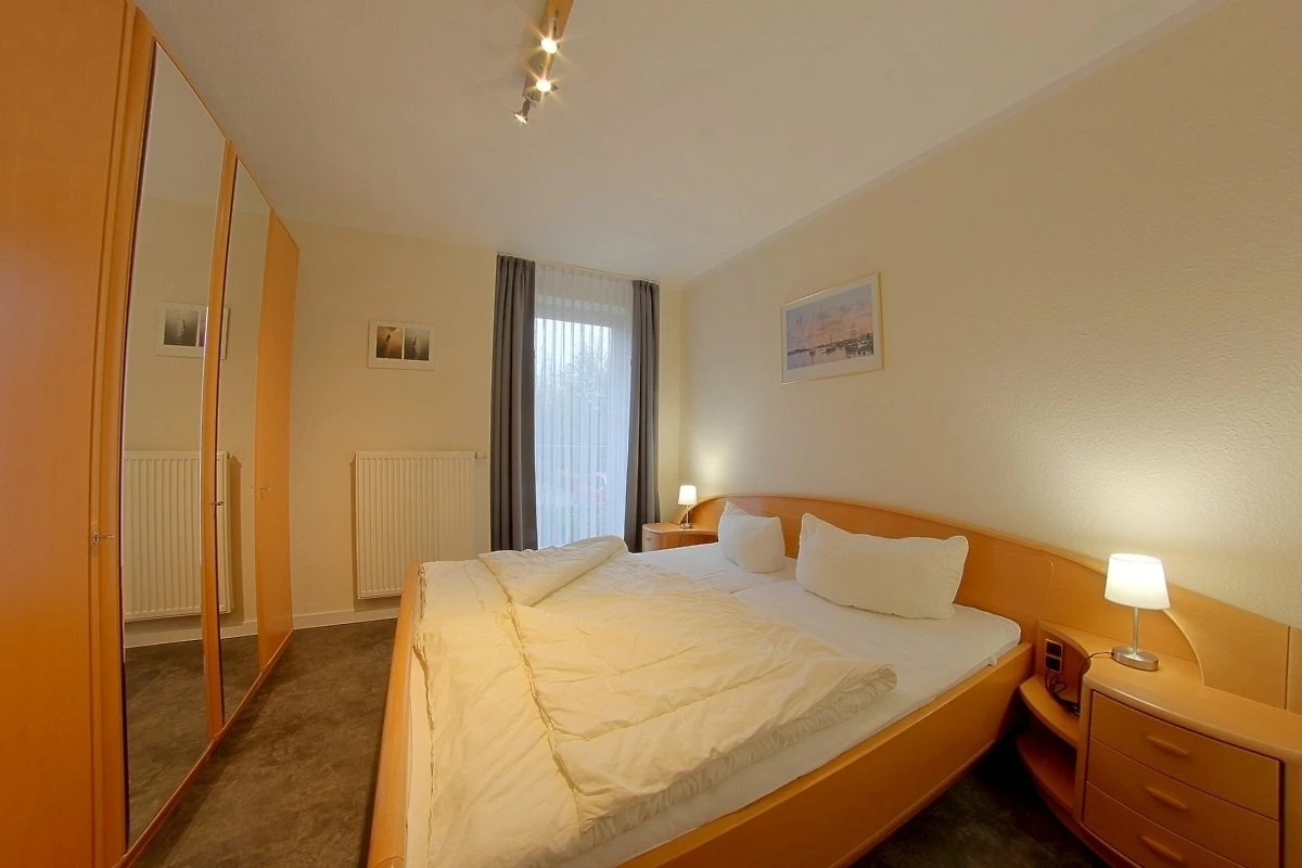 Die Ferienwohnung verfügt über drei Räumen und bietet Schlafplätze für 4 Personen. Dinge des alltäglichen Lebens wie Staubsauger, Bügeleisen, Bügelbrett usw. sind vorhanden. Zur Wohnung gehört ein Südwest Balkon mit Tisch, Stühlen und Sonnenschirm sowie ein reservierter Parkplatz (Stellplatz 48). Das Appartment hat eine grosszügig eingerichtete Küchenzeile, Dusche/WC, Farb-TV (Satellitenanlage) und ist hochwertig und ansprechend eingerichtet.