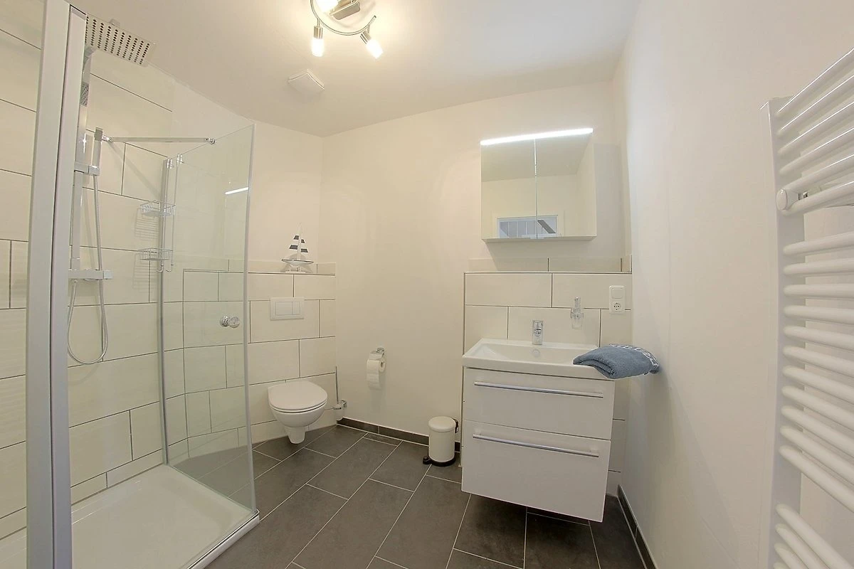 Ein helles, modernes Duschbad steht Ihnen ebenfalls im Erdgeschoss zur Verfügung und im Obergeschoss ein separates WC.